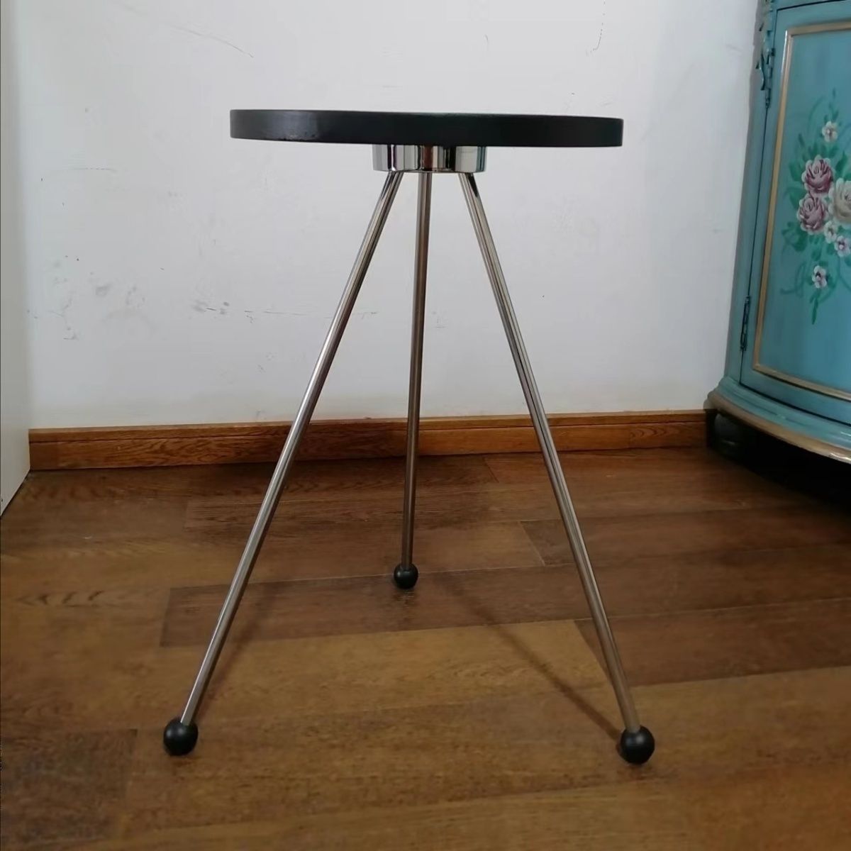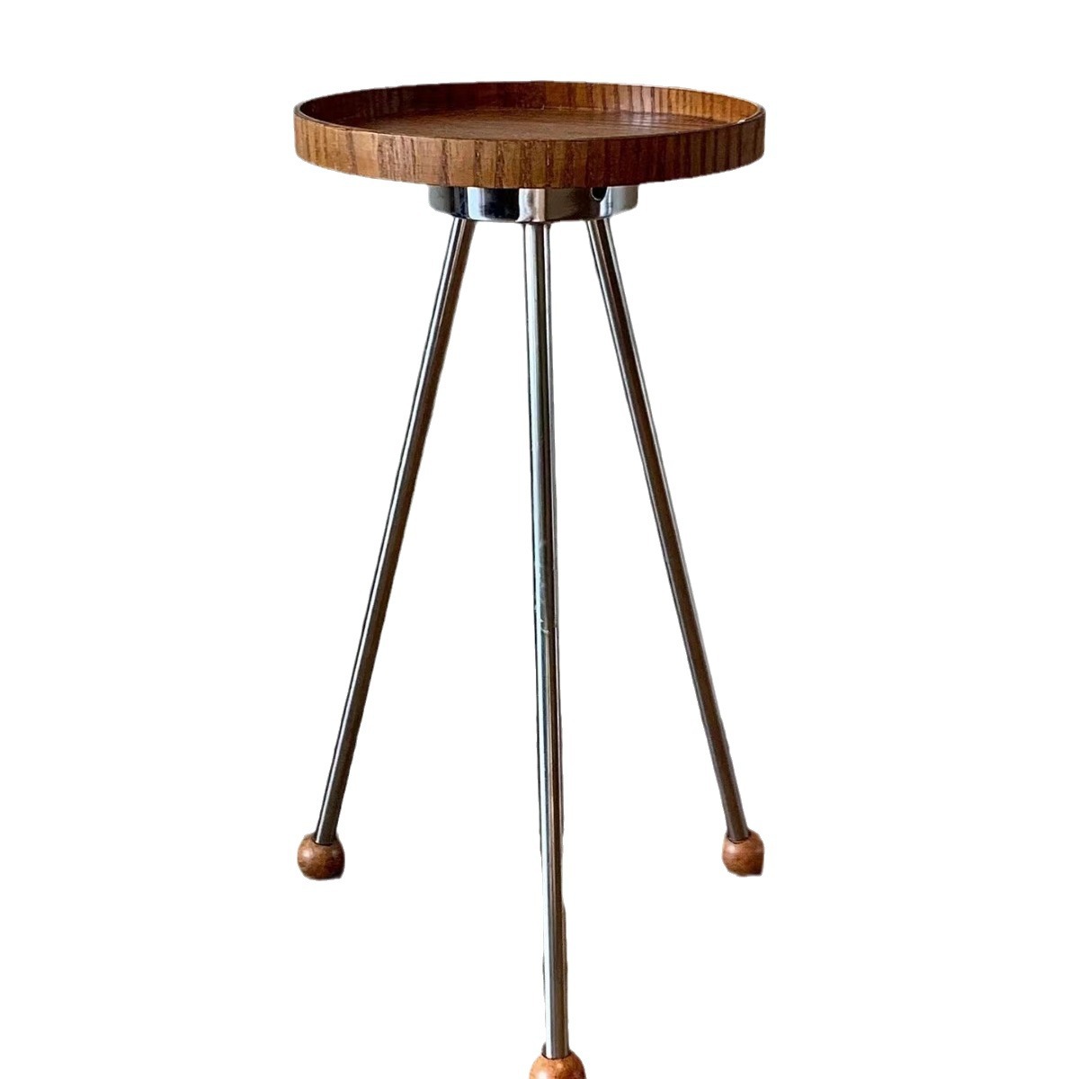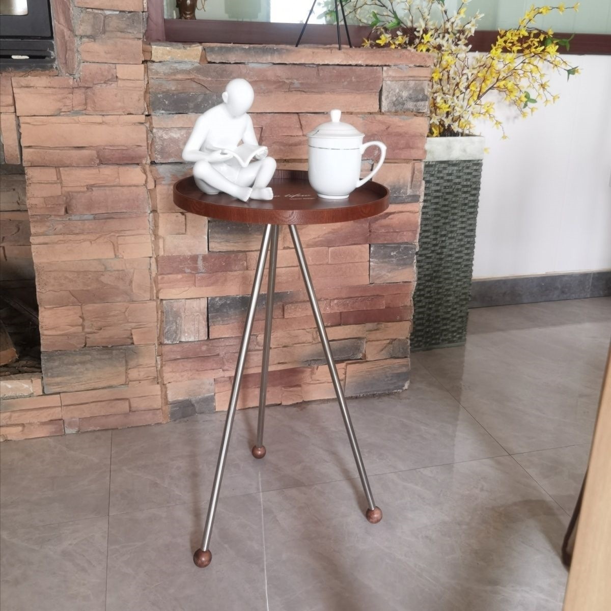 중간 고대 솔리드 우드 사이드 테이블 미국 카페 발코니 작은 라운드 테이블 홈스테이 바닥 스테인레스 스틸 소파 테이블 코너 커피 테이블