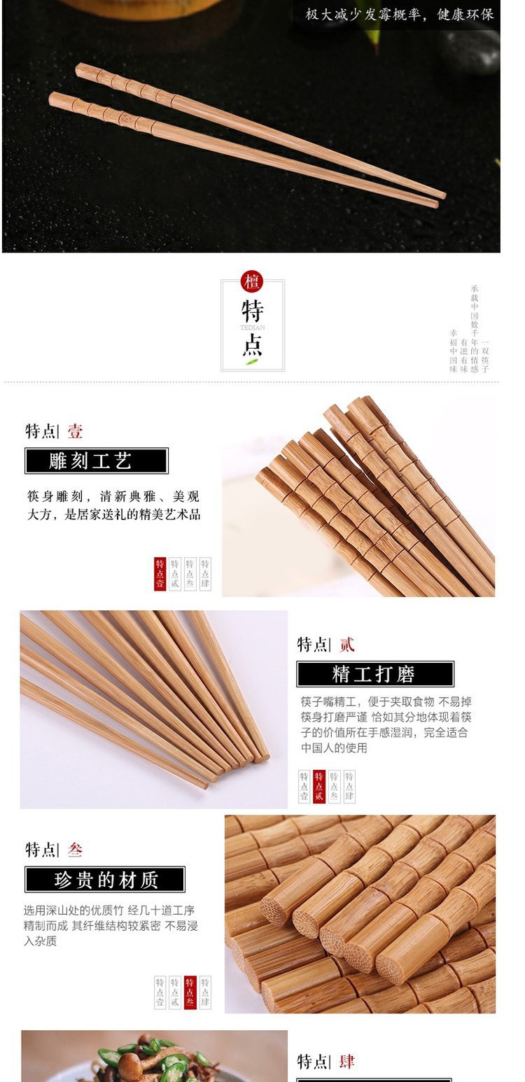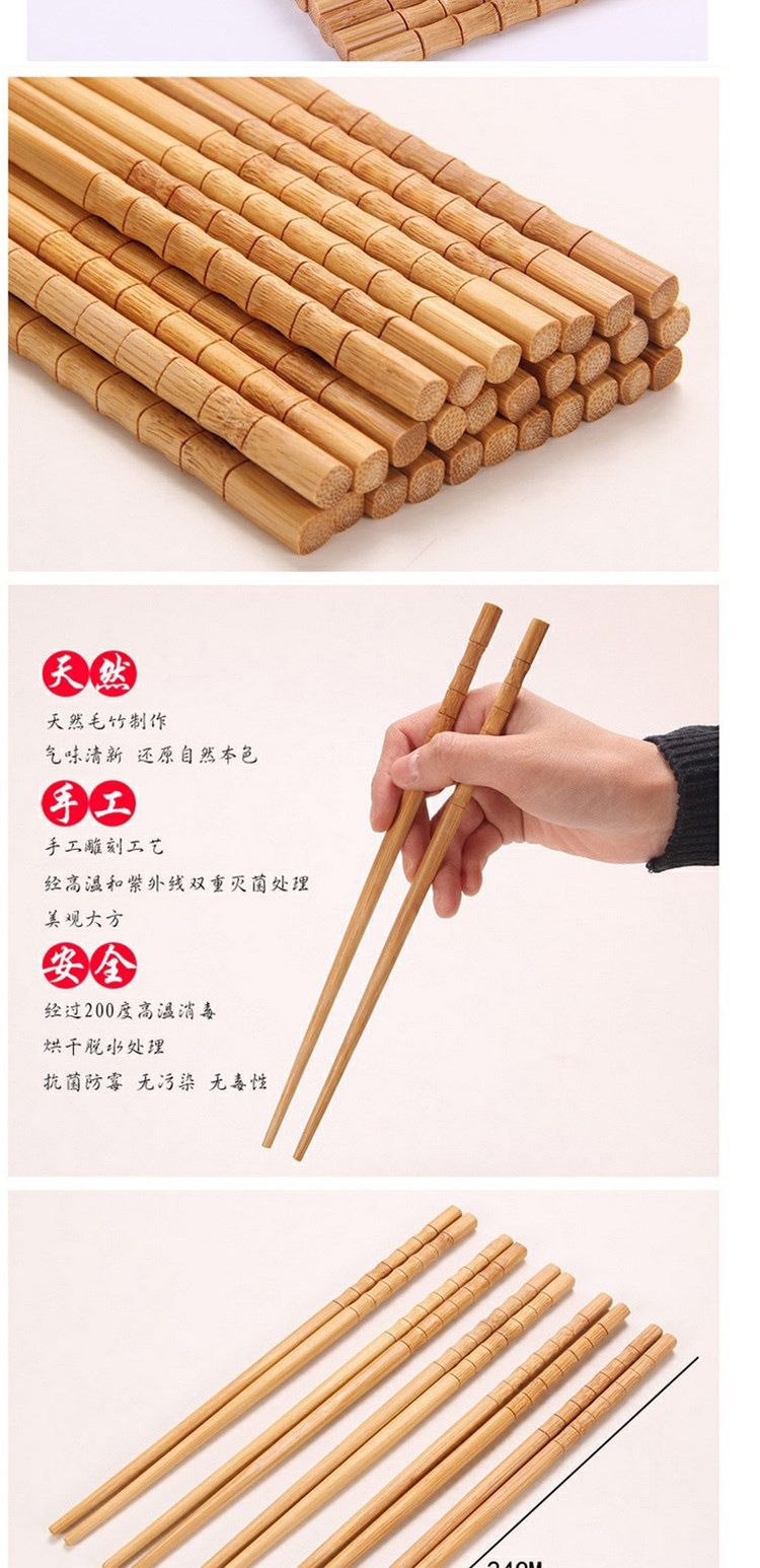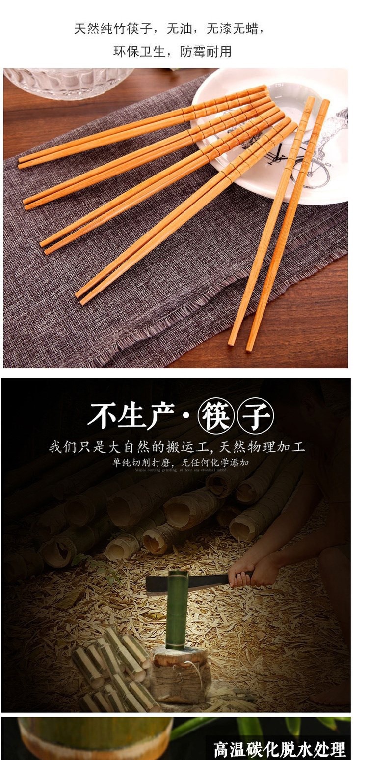 대나무 젓가락 페인트 없음 왁스 가족 천연 대나무 젓가락 가정용 대나무 젓가락 미끄럼 세트 식기 도매