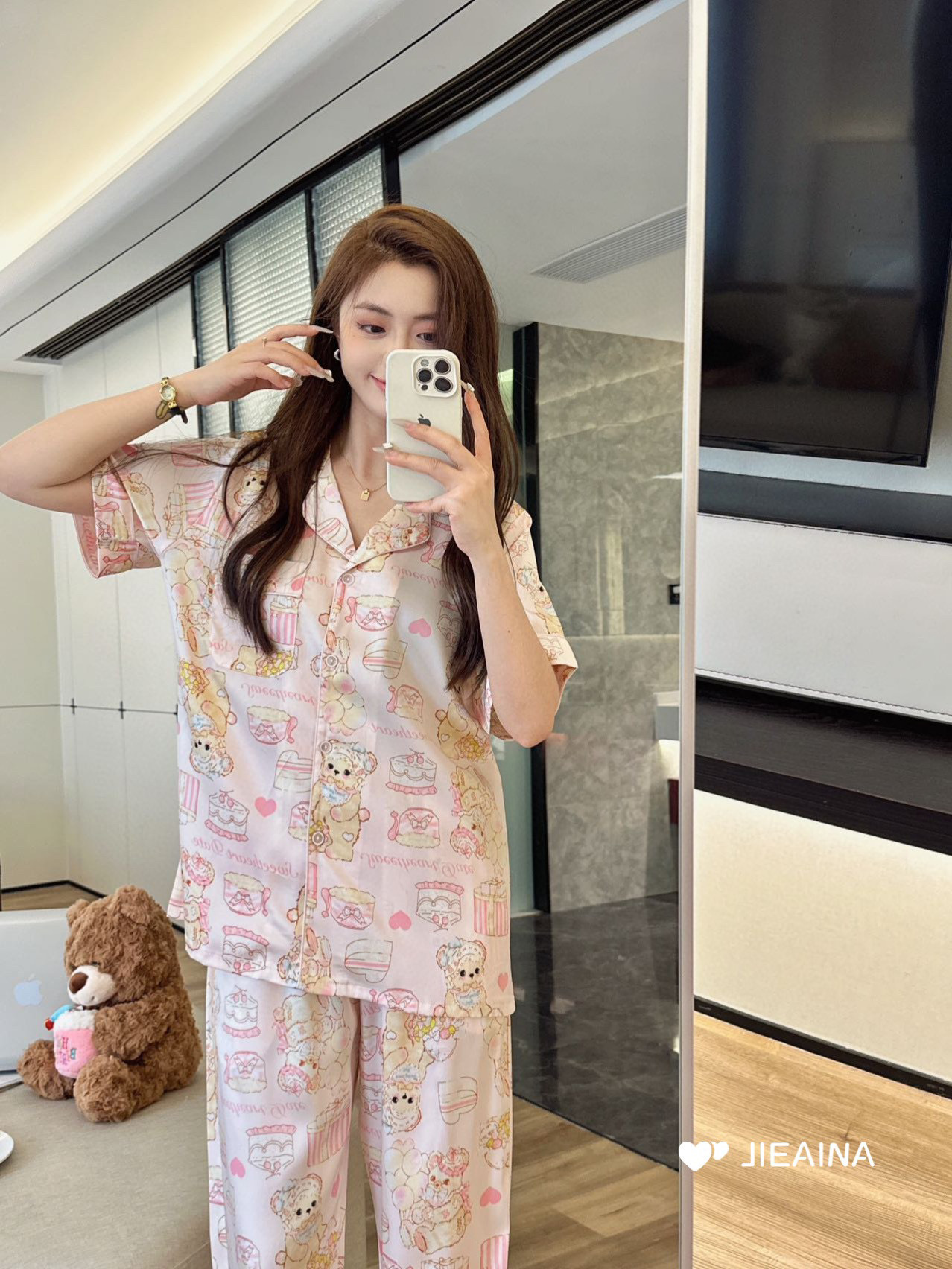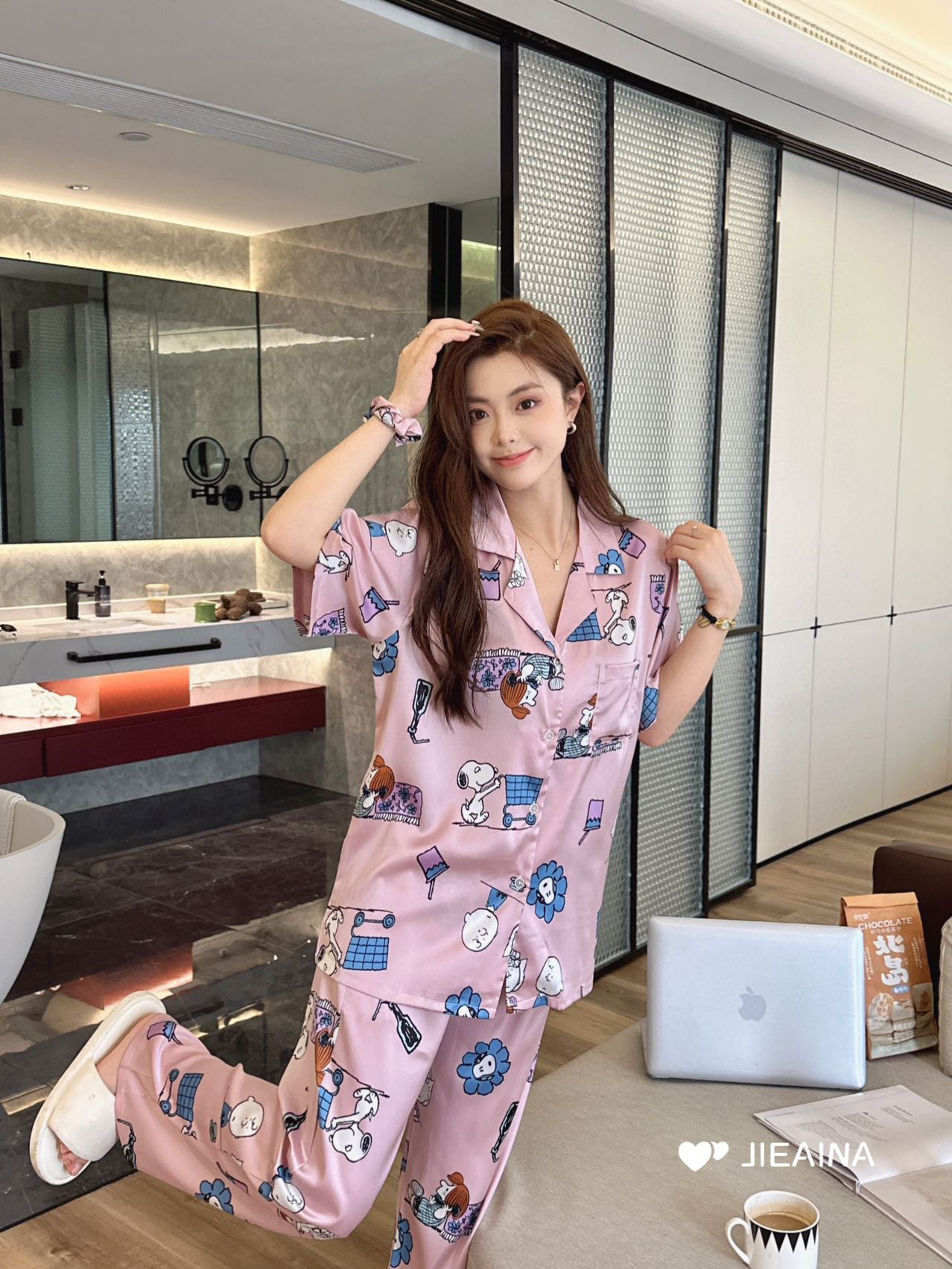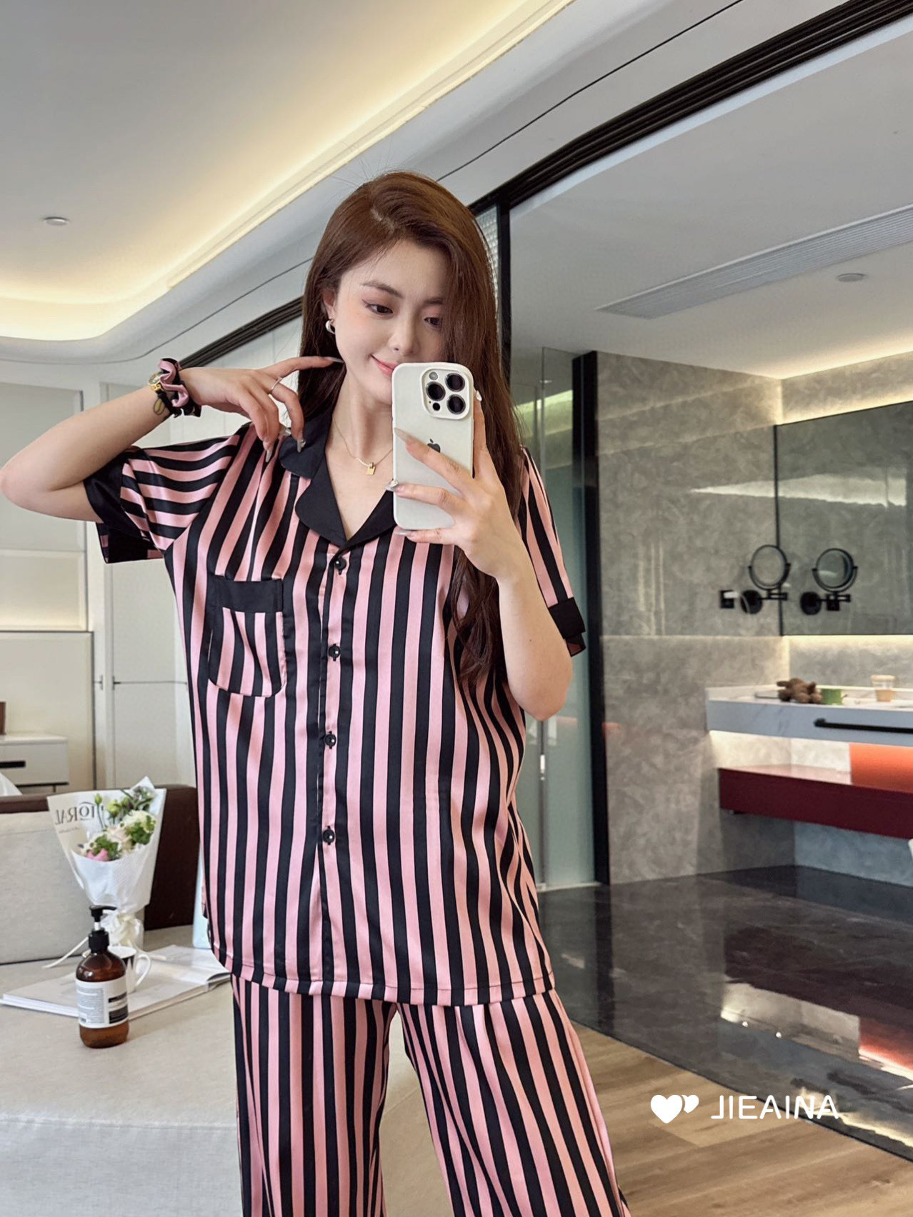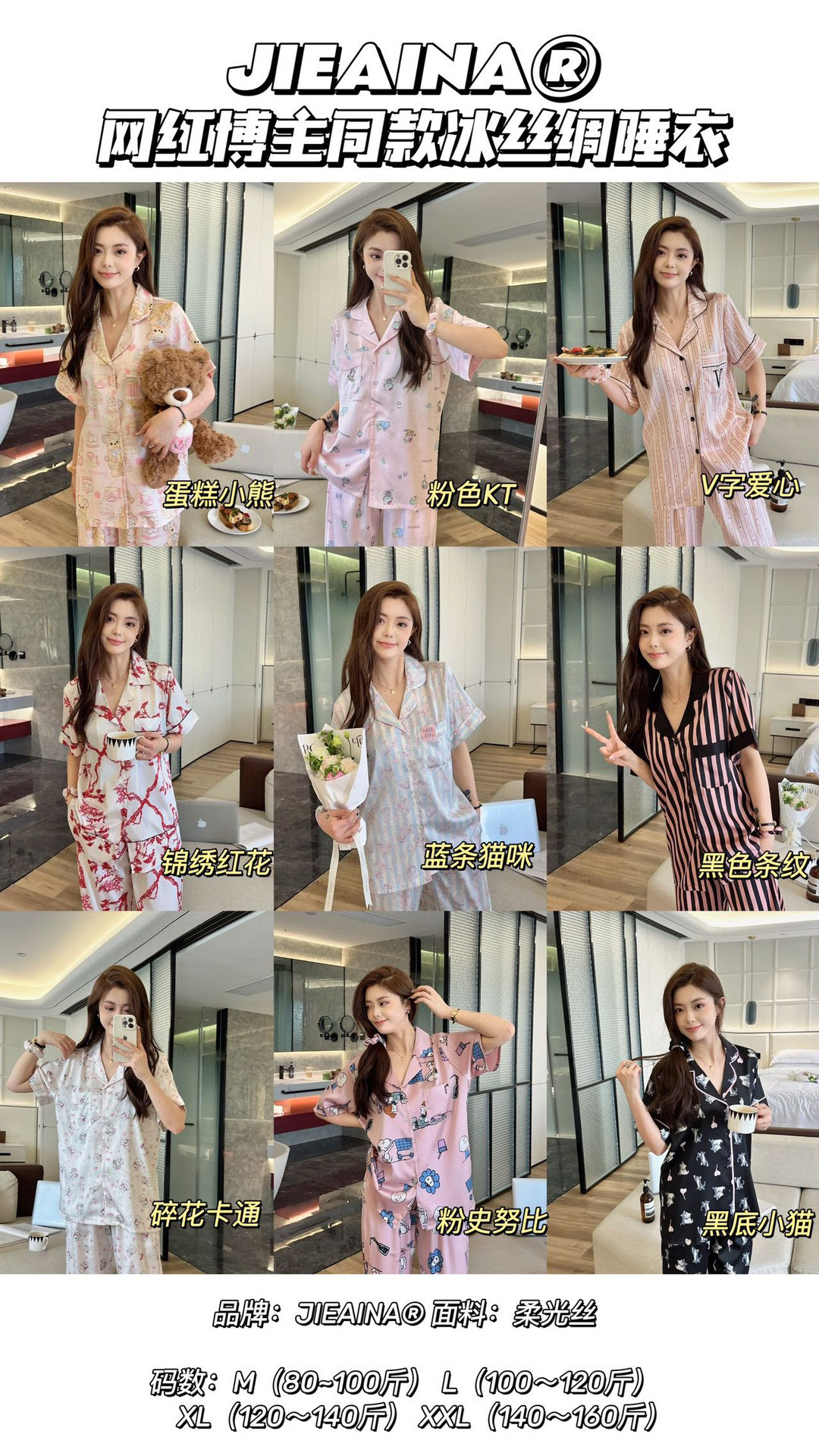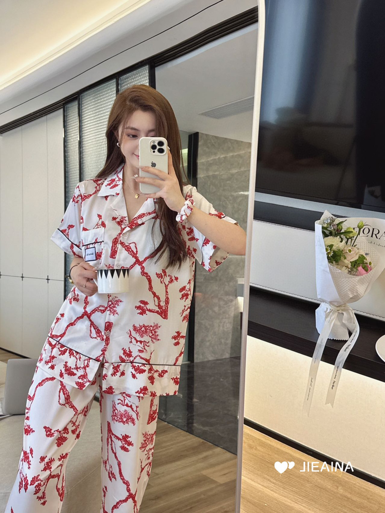얼음 실크 파자마 WD181 # 소프트 라이트 실크 짧은 소매 바지와 지에이나 인터넷 레드 블로거