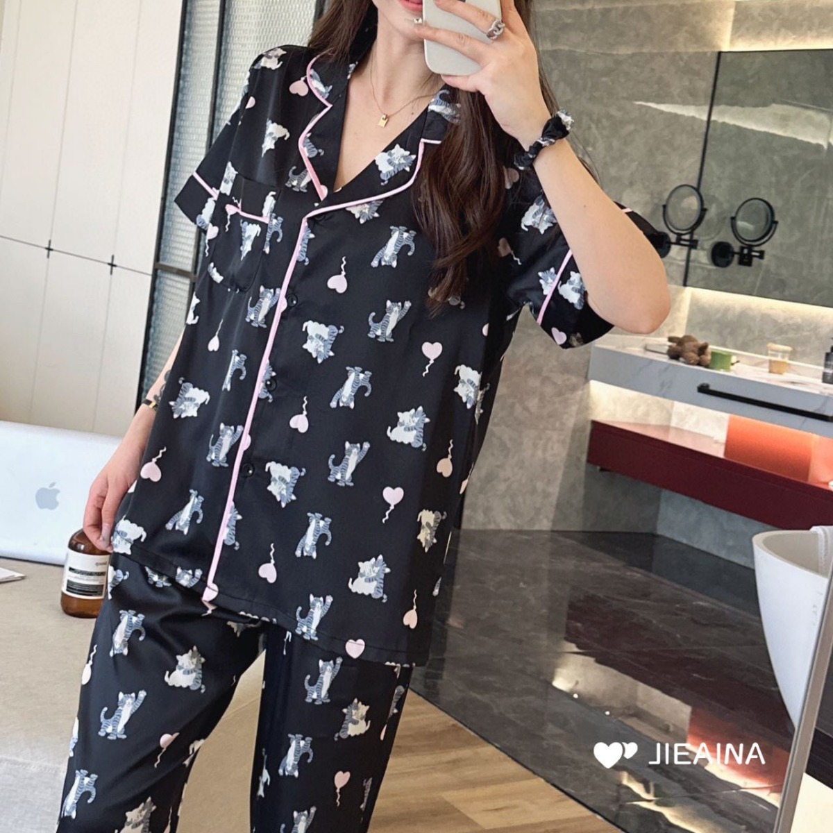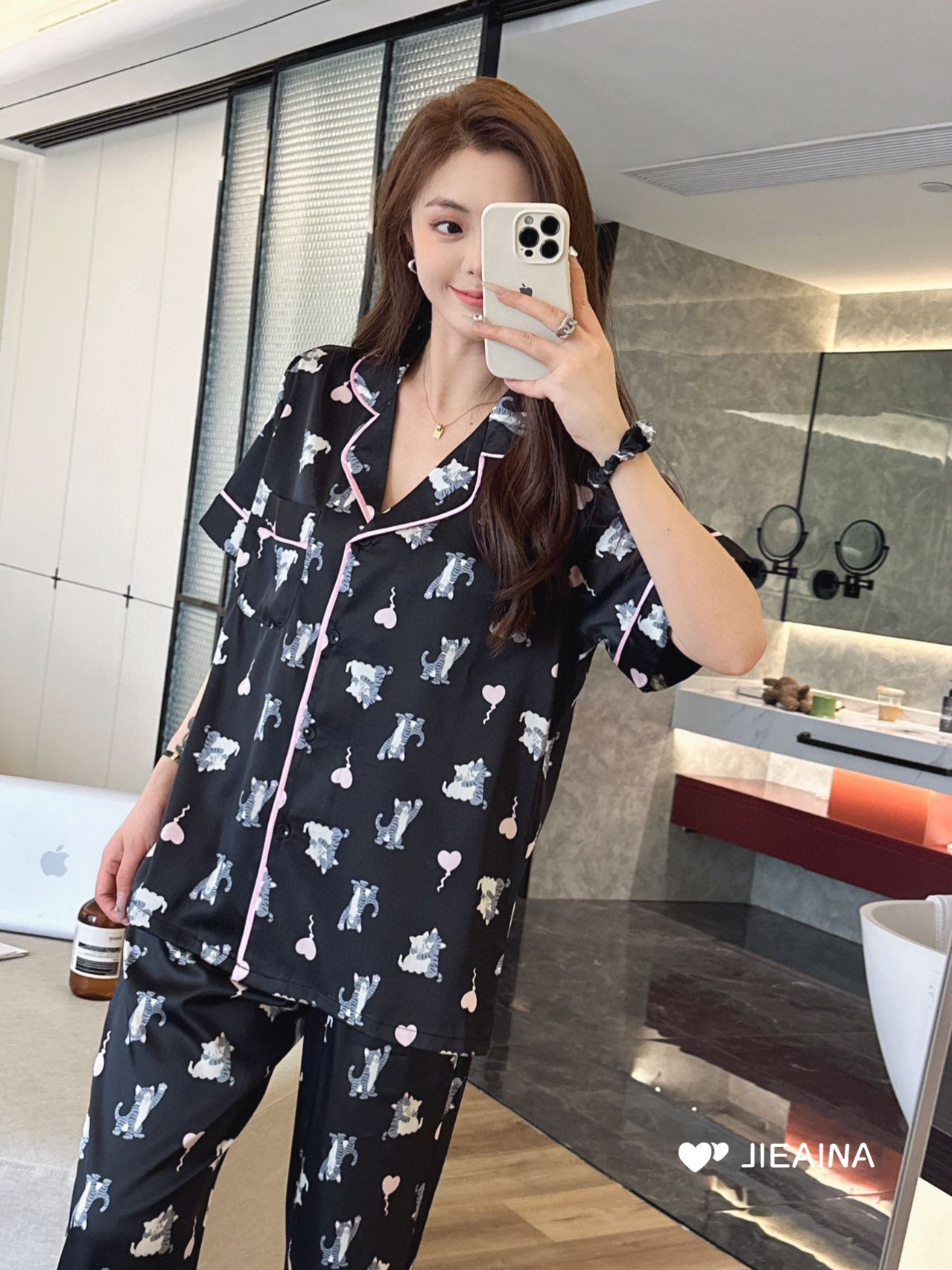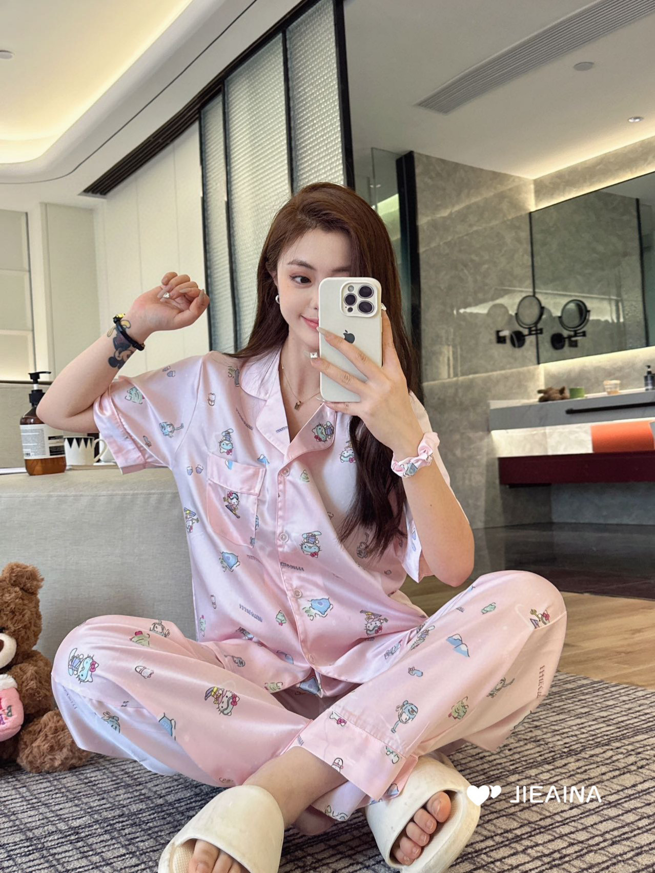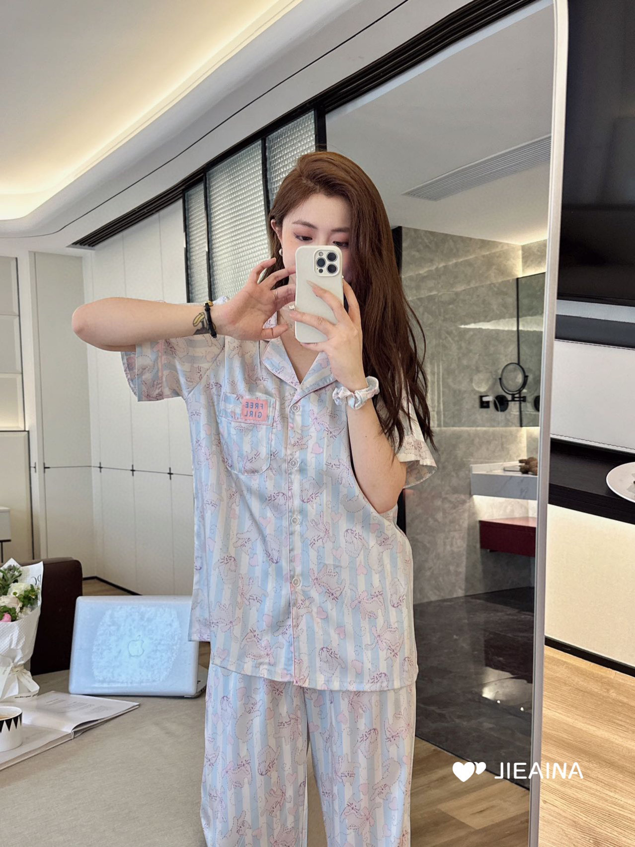 얼음 실크 파자마 WD181 # 소프트 라이트 실크 짧은 소매 바지와 지에이나 인터넷 레드 블로거