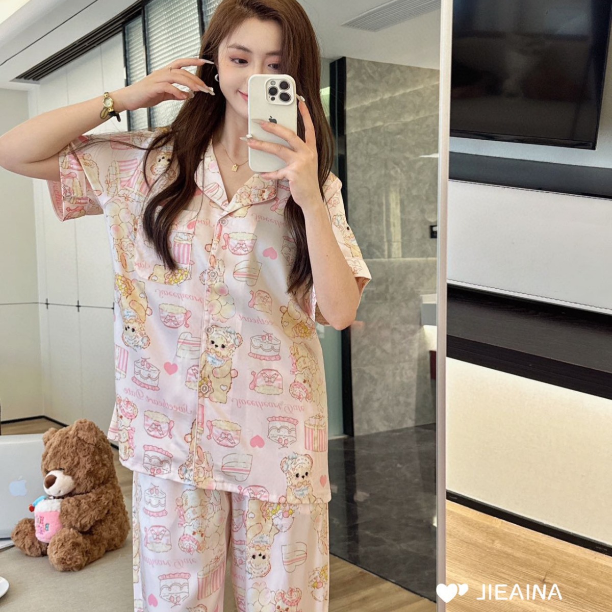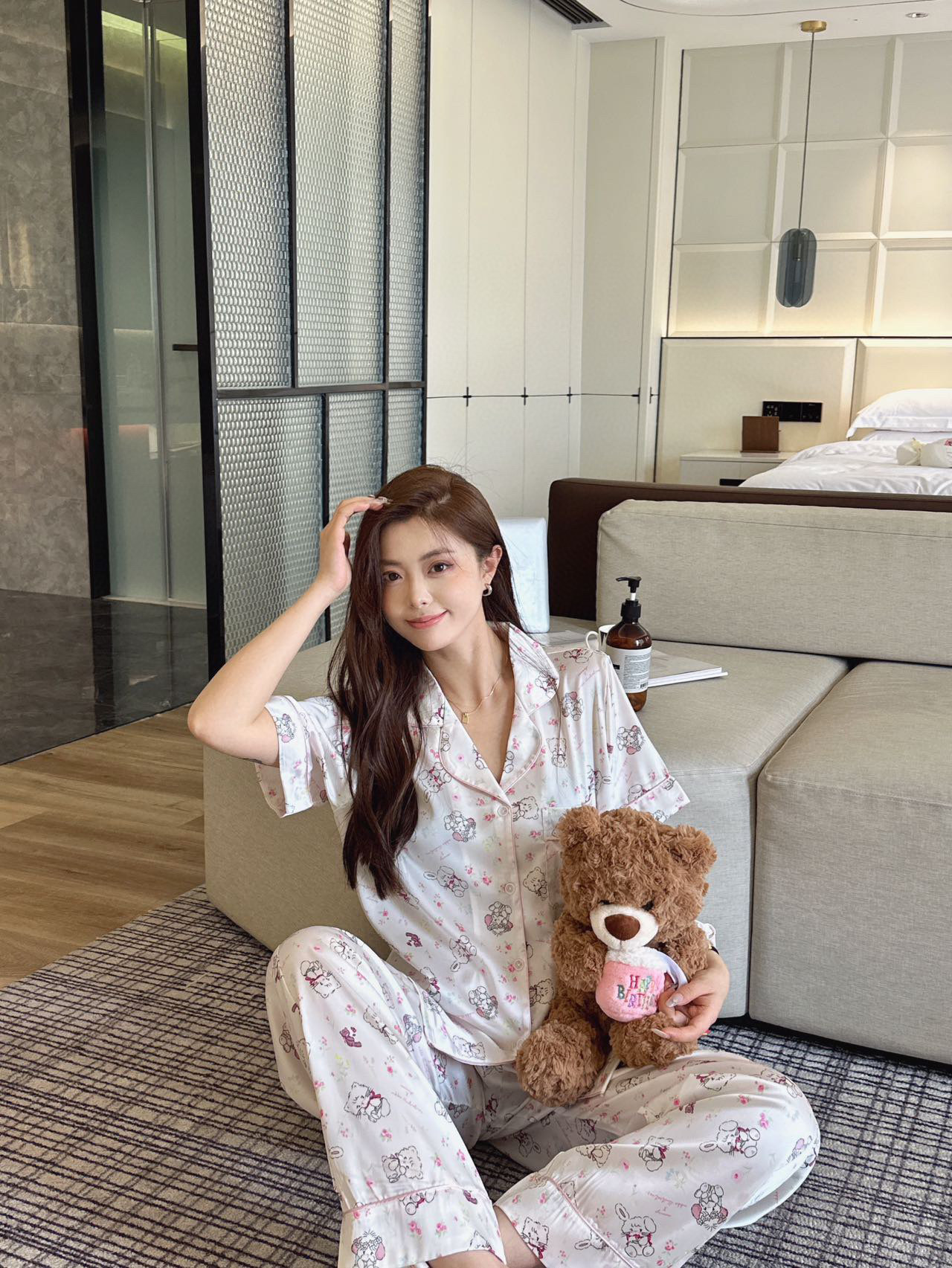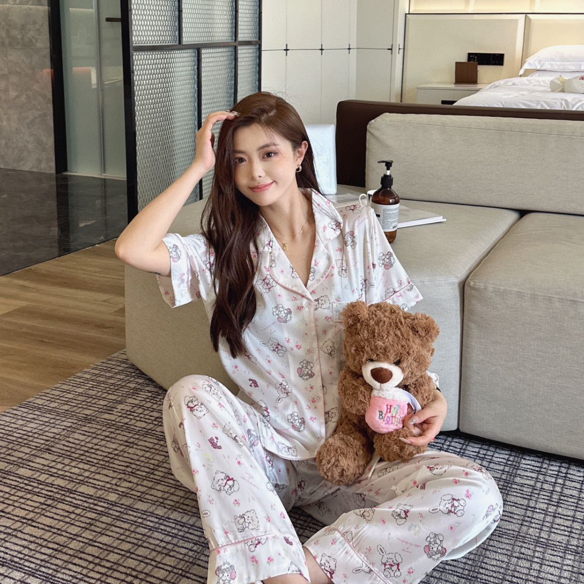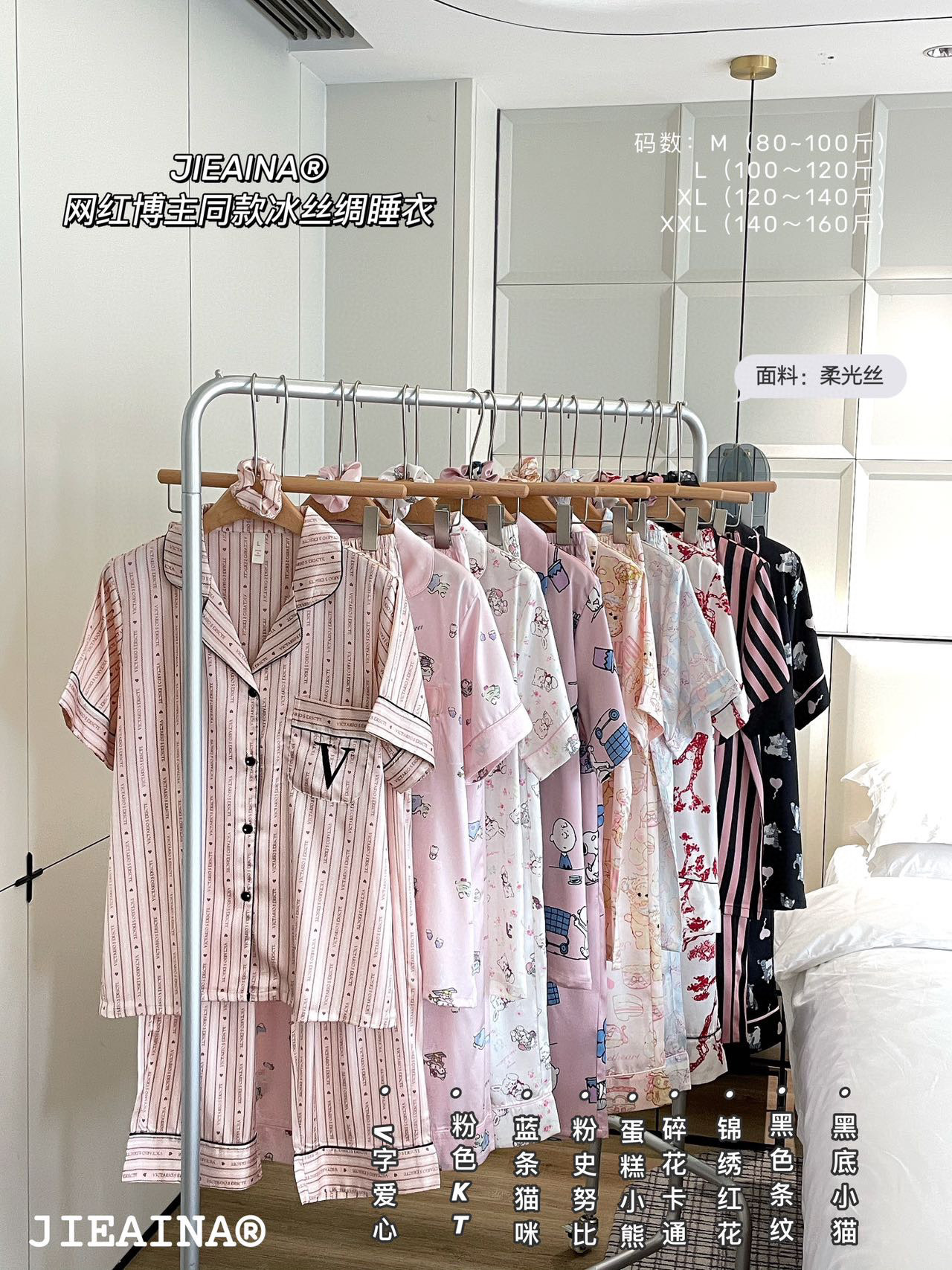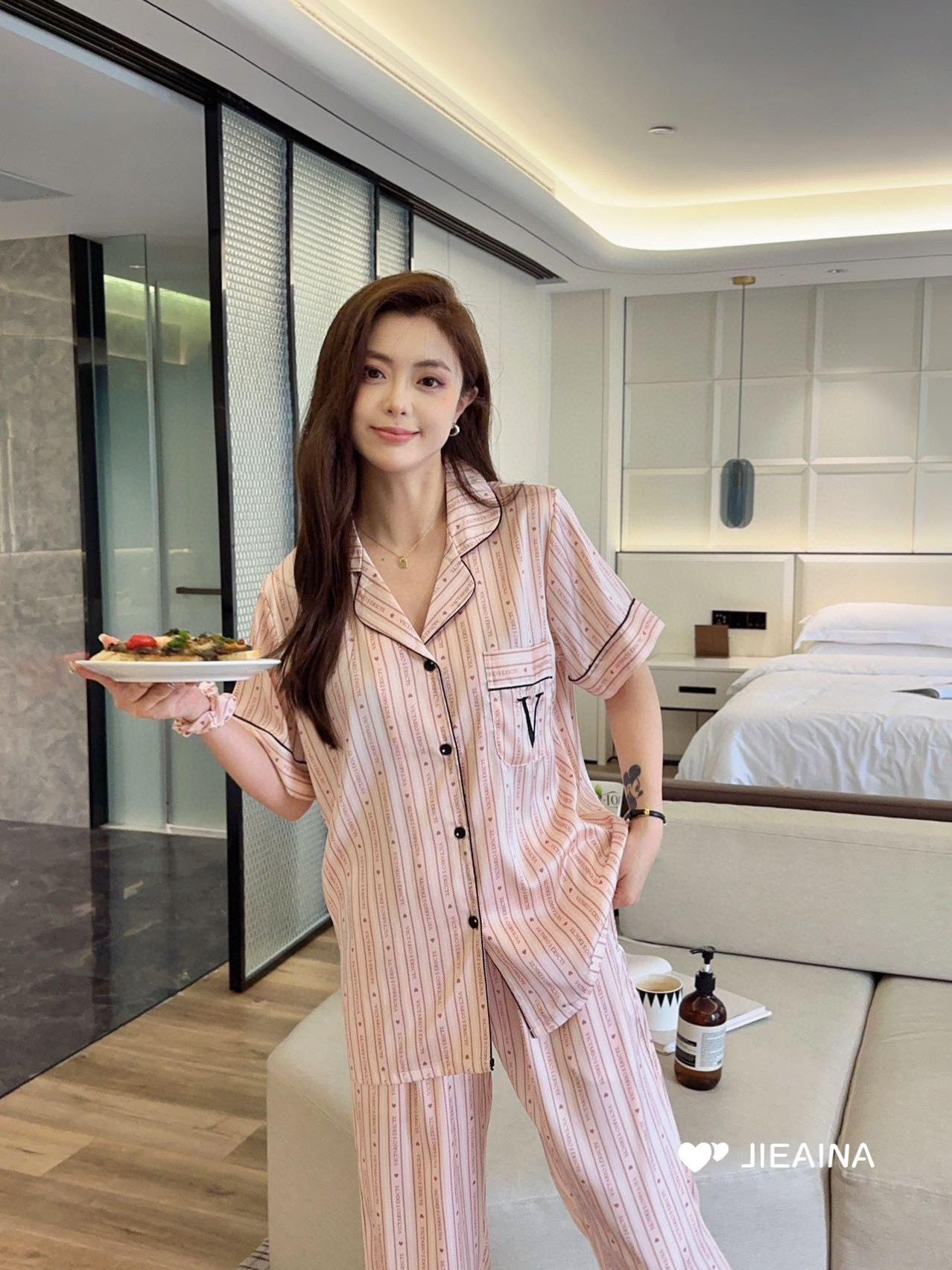 얼음 실크 파자마 WD181 # 소프트 라이트 실크 짧은 소매 바지와 지에이나 인터넷 레드 블로거