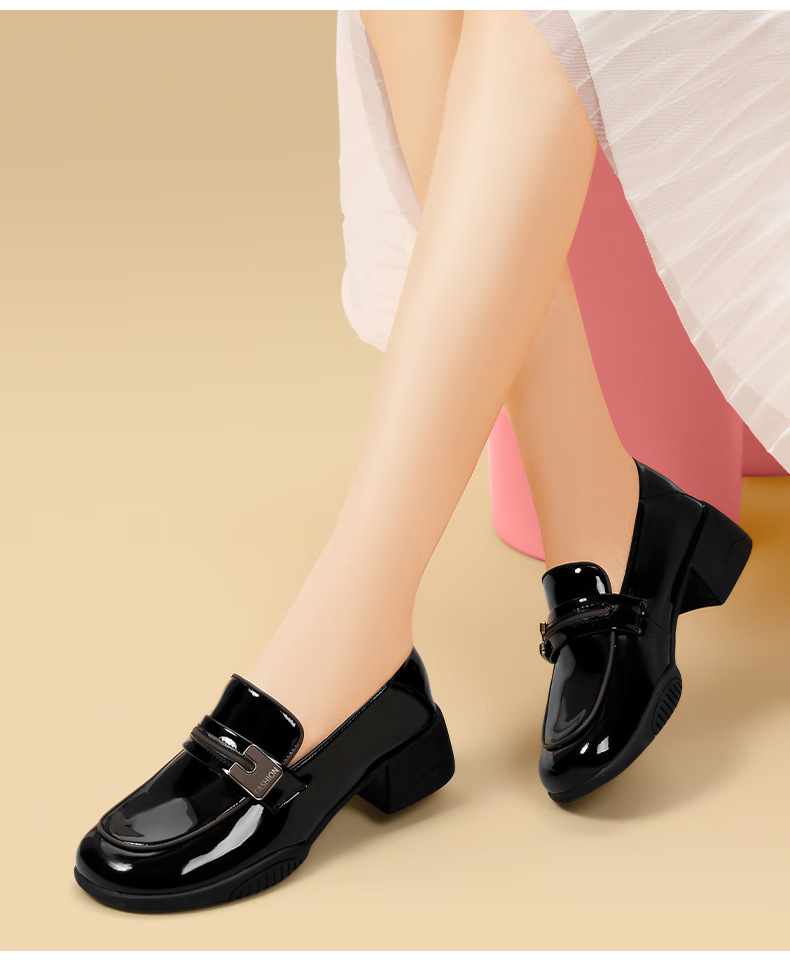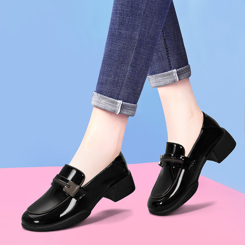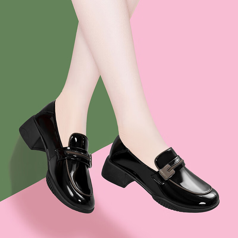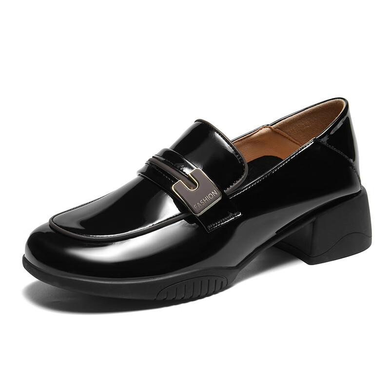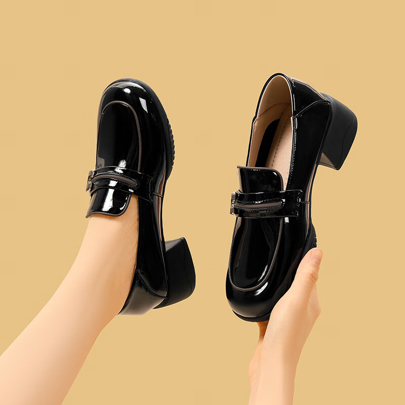 천사 다음 문 프랑스 스타일 블랙 로퍼 여성의 2024 봄과 가을 새로운 올 매치 슬립 온 영국 스타일 가죽 신발 두꺼운