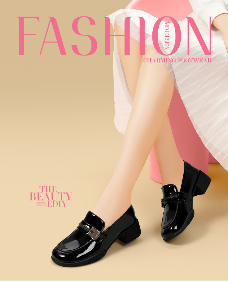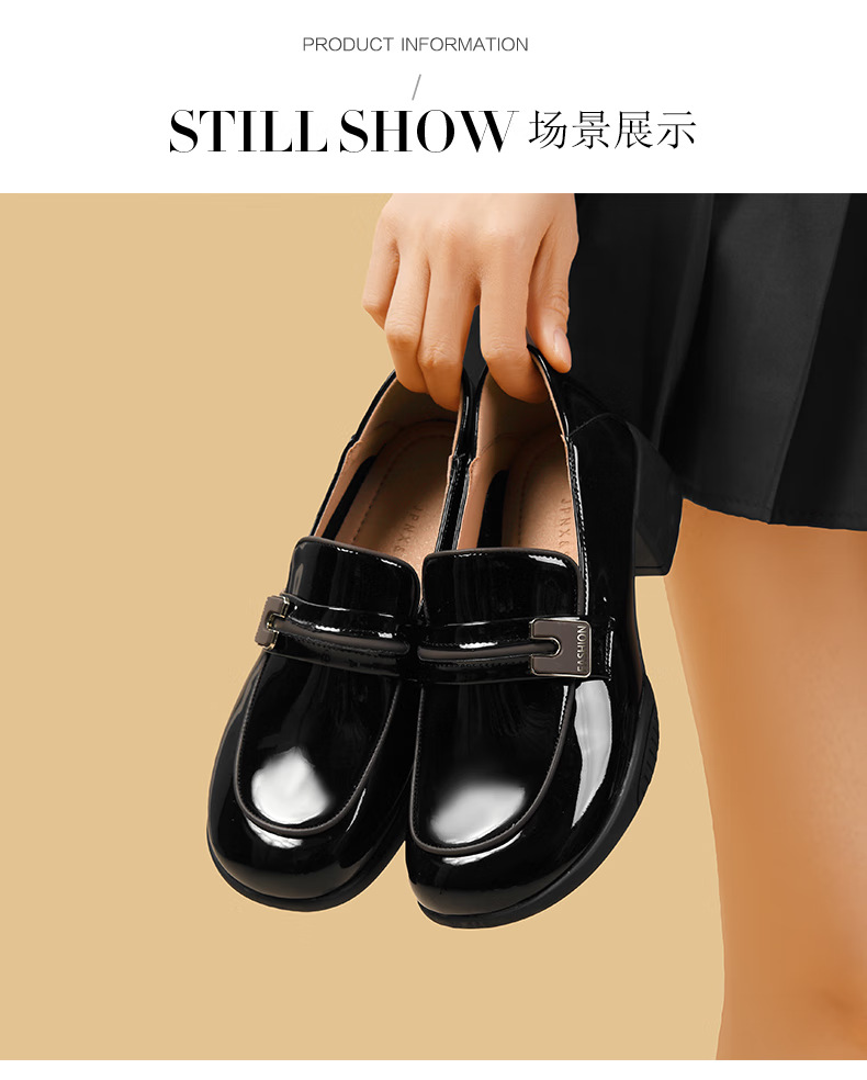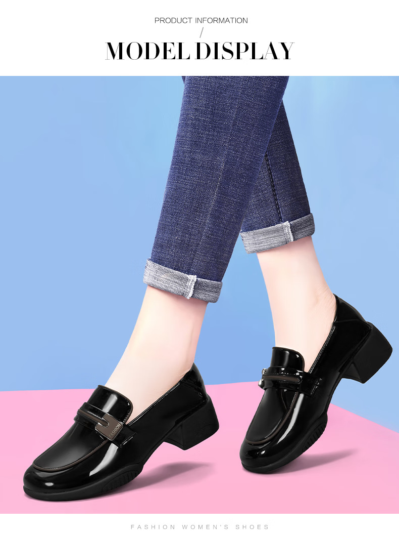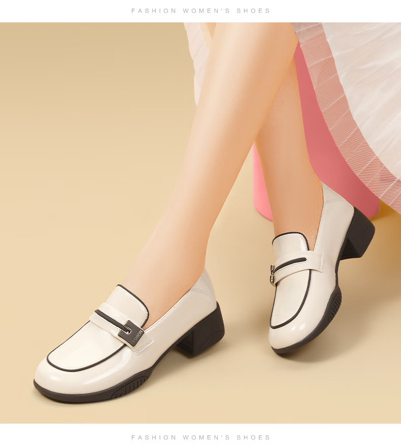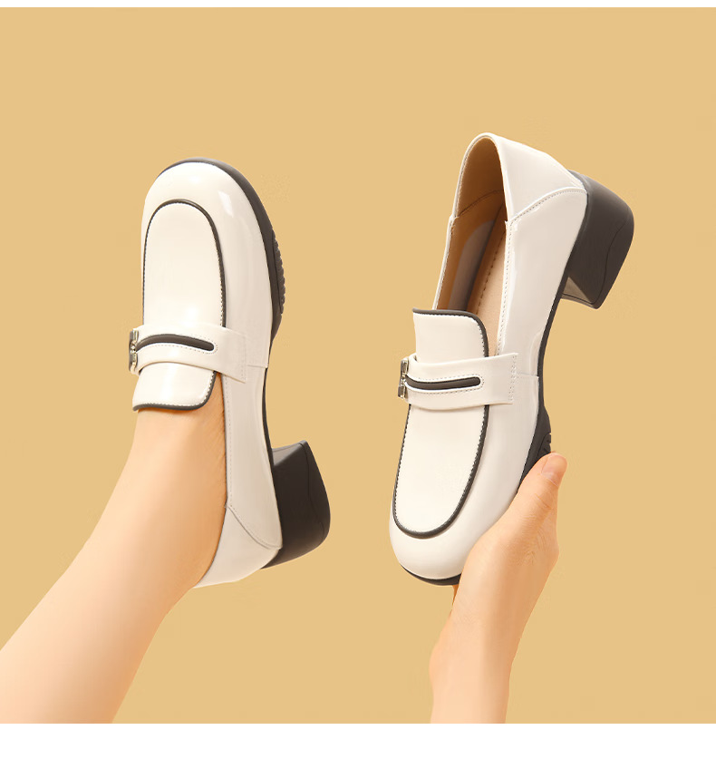 천사 다음 문 프랑스 스타일 블랙 로퍼 여성의 2024 봄과 가을 새로운 올 매치 슬립 온 영국 스타일 가죽 신발 두꺼운