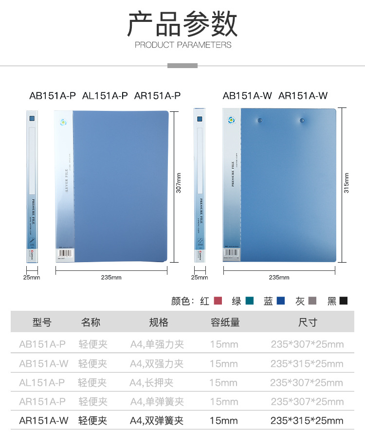 지우기 AR151A-W 슈퍼 강한 휴대용 클립 A4 더블 스프링 클립 두꺼운 펀치 폴더