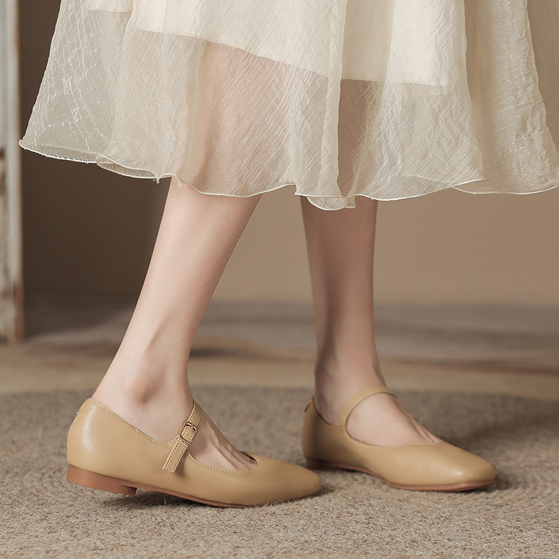 정품 가죽 플랫 메리제인 슈즈 여성용 봄 여름 가을 캐주얼 다용도 스트랩 슈즈