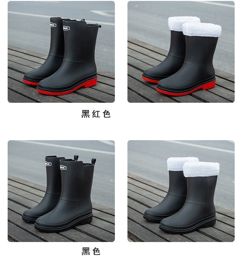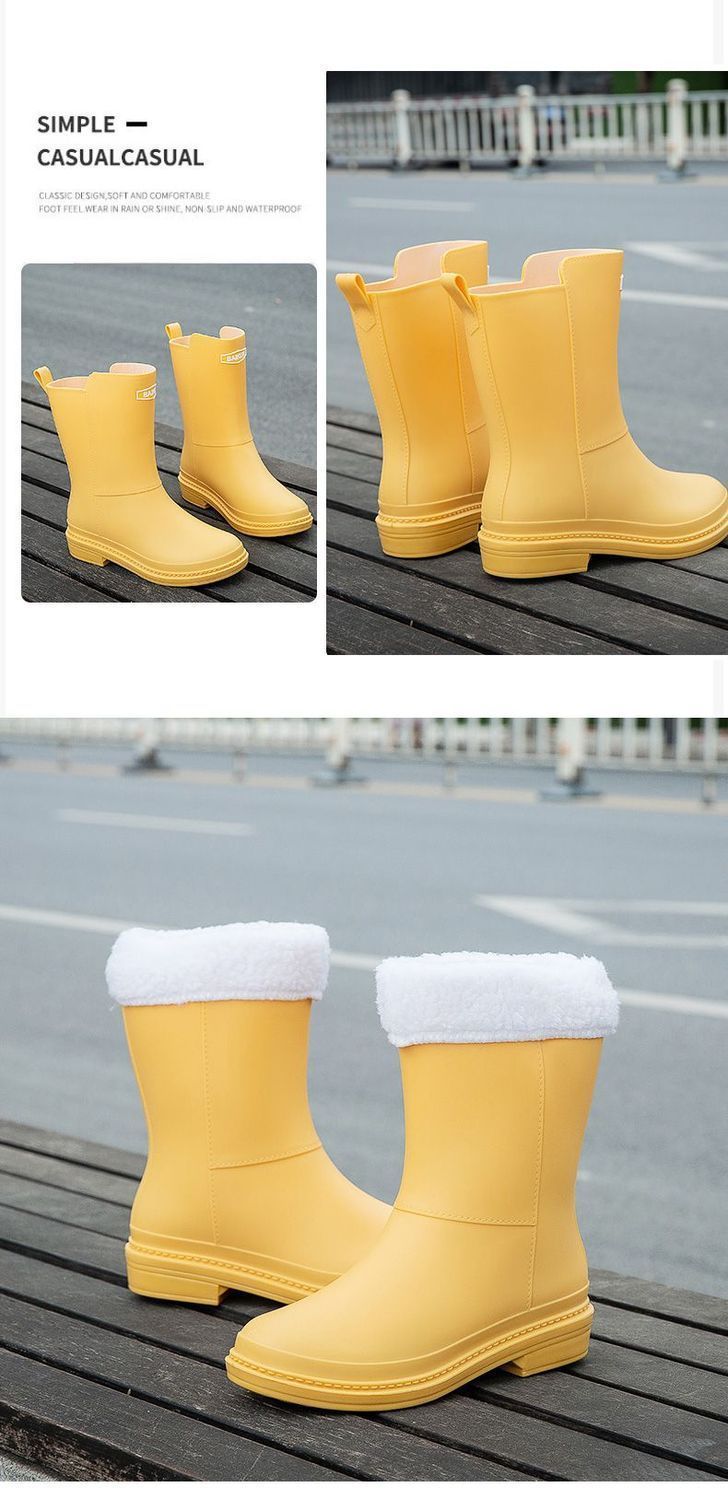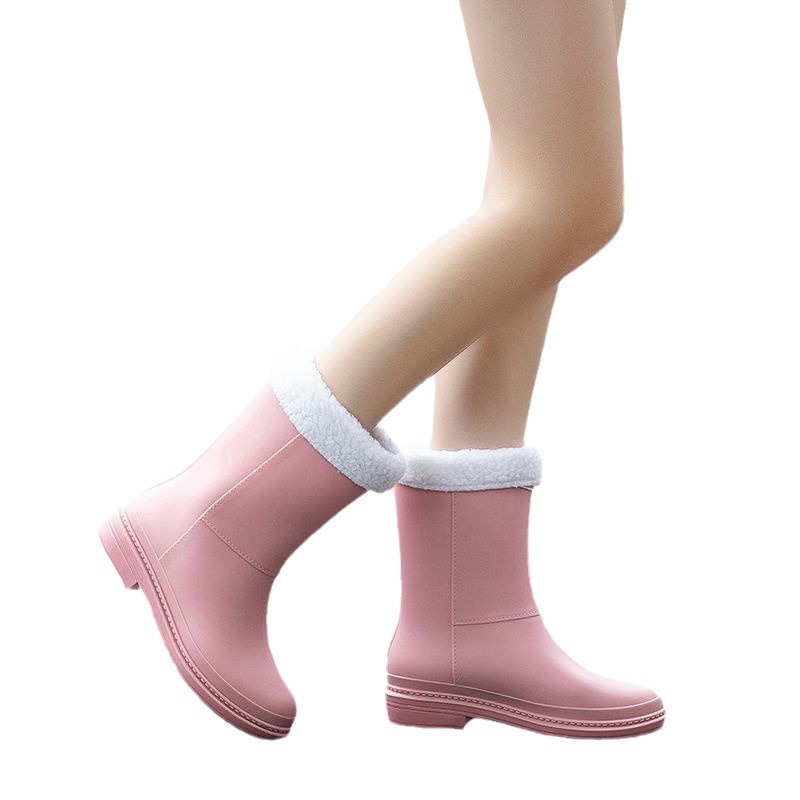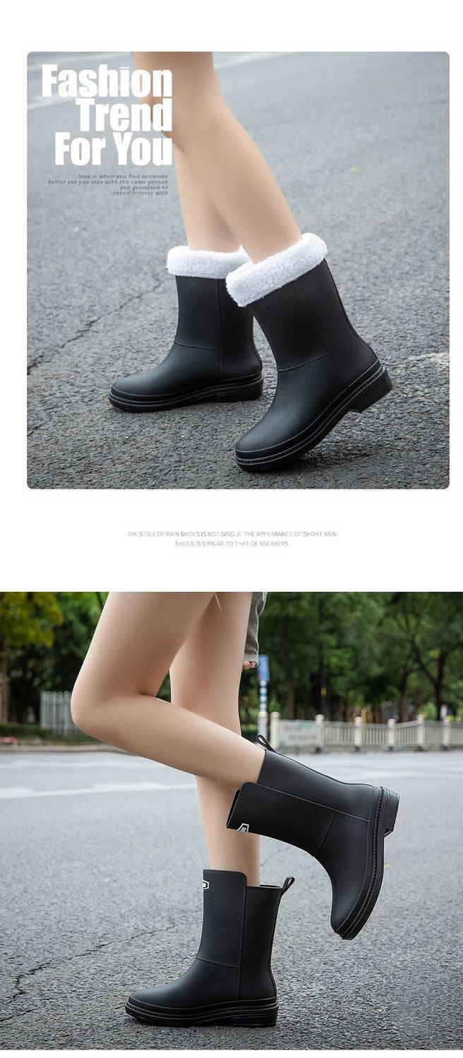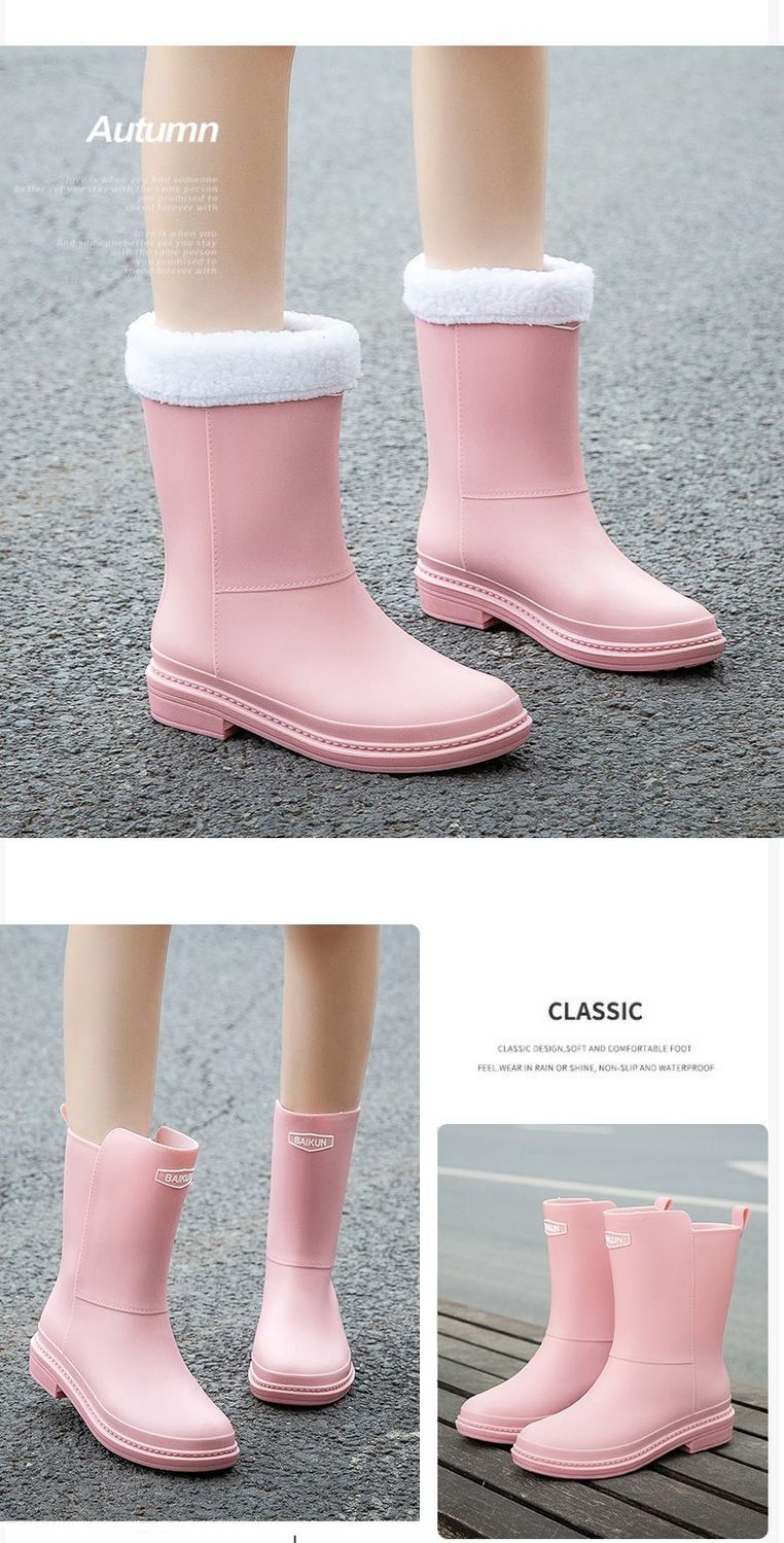 여성용 새 장화 여성용 스위트 미드 튜브 방수 미끄럼 방지 워터 부츠 장화 외부 착용 기모 여성용 따뜻한 작업 고무 신발
