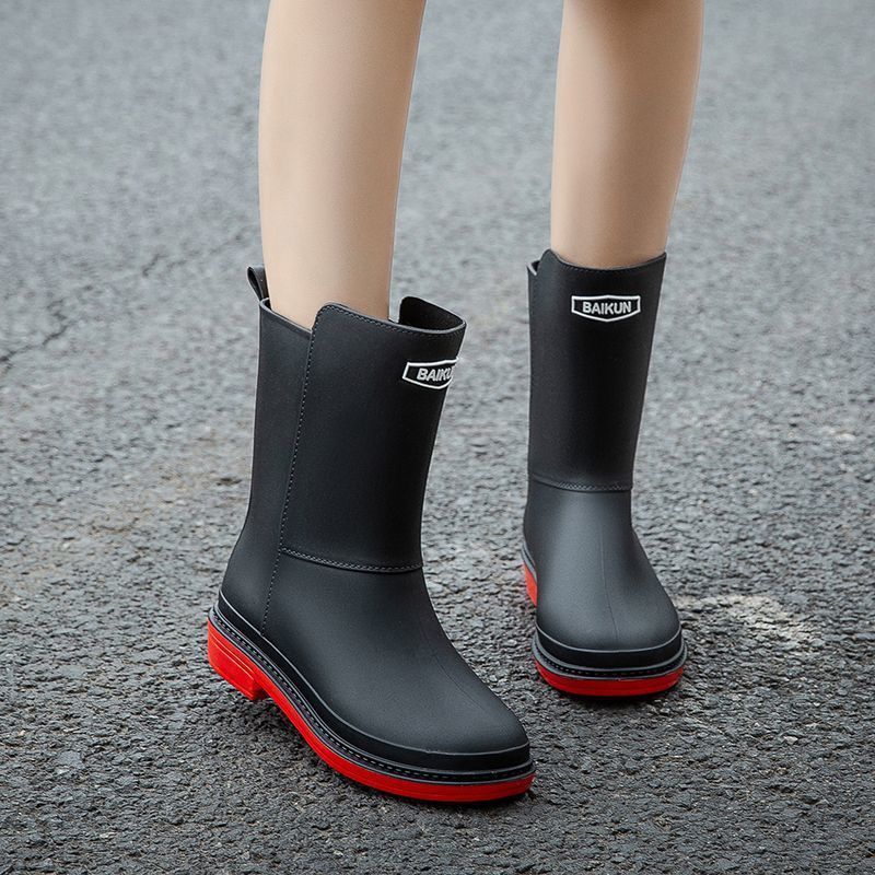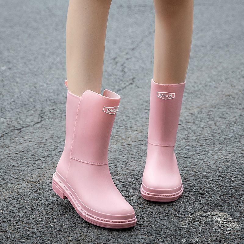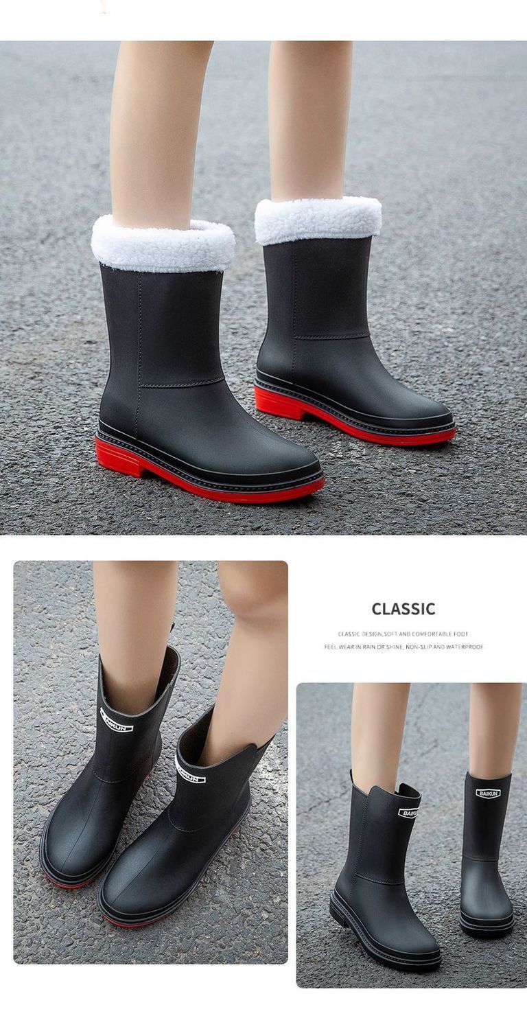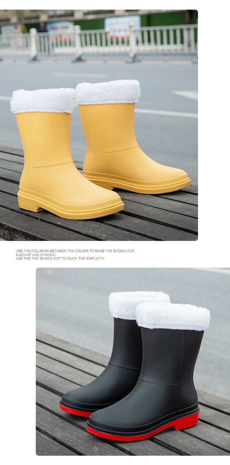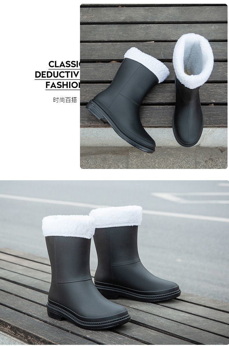 여성용 새 장화 여성용 스위트 미드 튜브 방수 미끄럼 방지 워터 부츠 장화 외부 착용 기모 여성용 따뜻한 작업 고무 신발