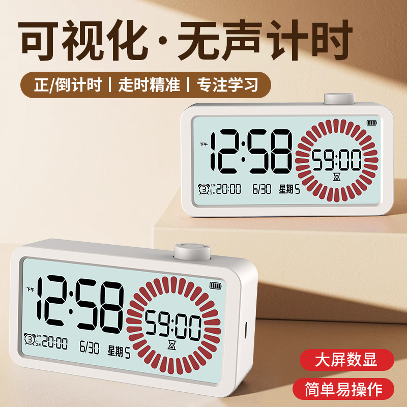 2025 새로운 시각 타이머 알람 시계 학생 자기 훈련 시계 스마트 알람 시계 손잡이 타이밍 알림 알람 시계