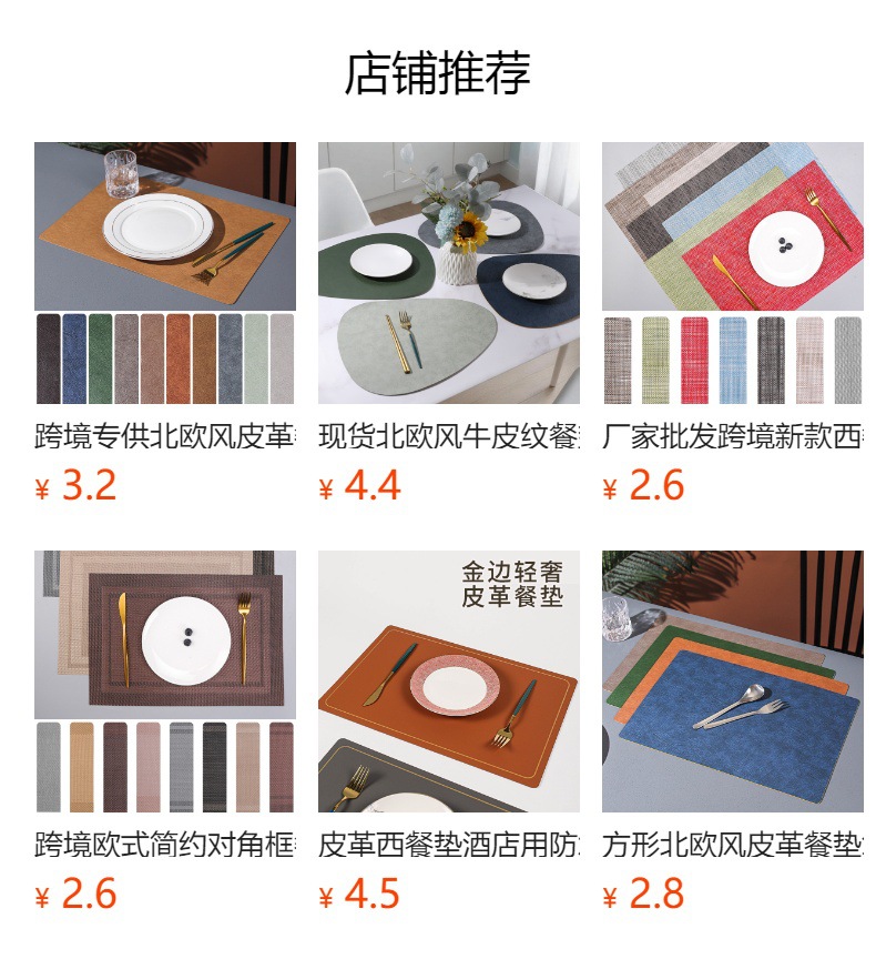 국경을 넘어 인기 있는 라이트 럭셔리 북유럽 스타일 미끄럼 방지 식탁 매트, 단열 매트, 고급 호텔 식탁 매트, 컵받침 도매, 화상 방지