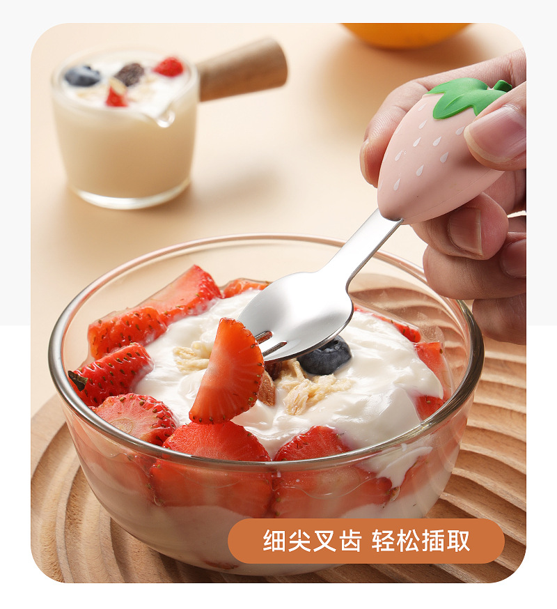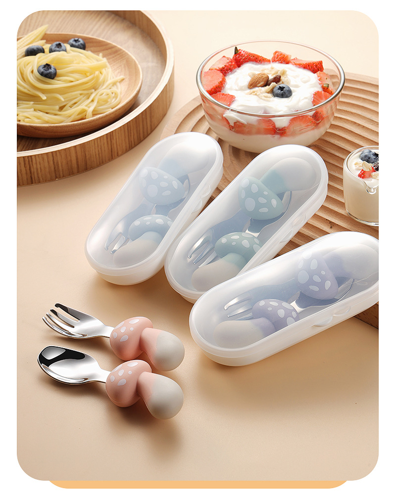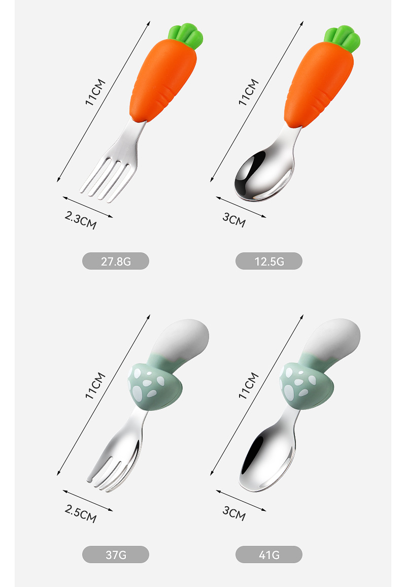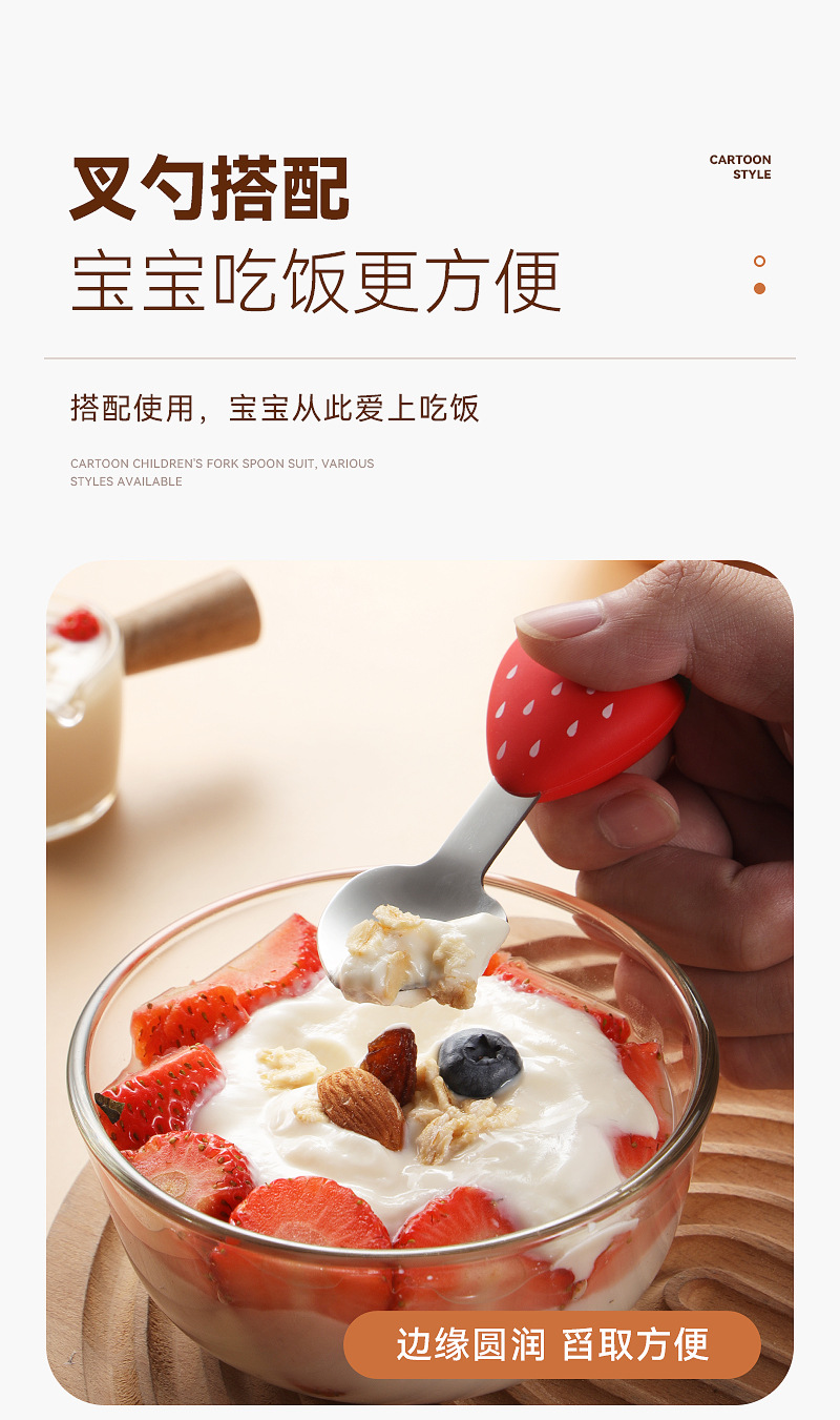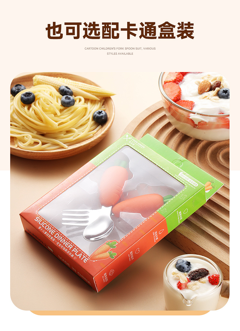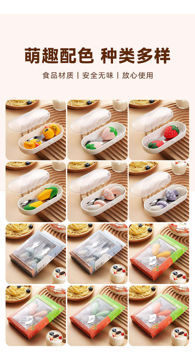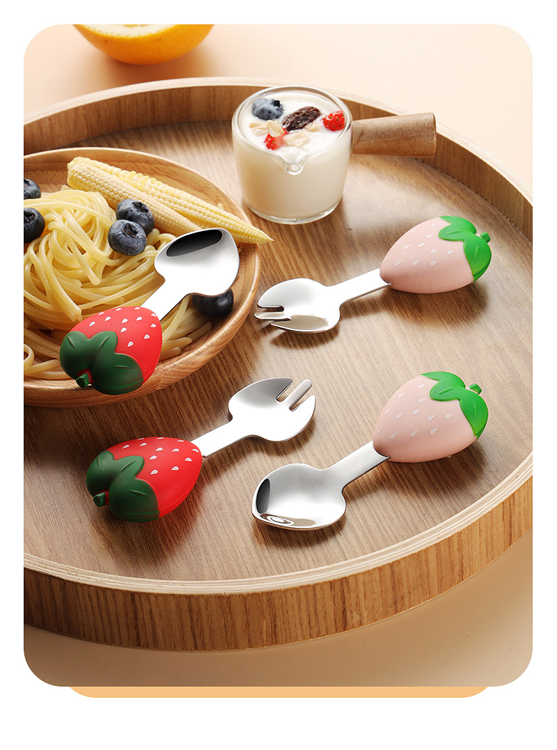 304 스테인레스 스틸 어린이 식기 세트 실리콘 스푼 포크 만화 당근 옥수수 딸기 아기 식기