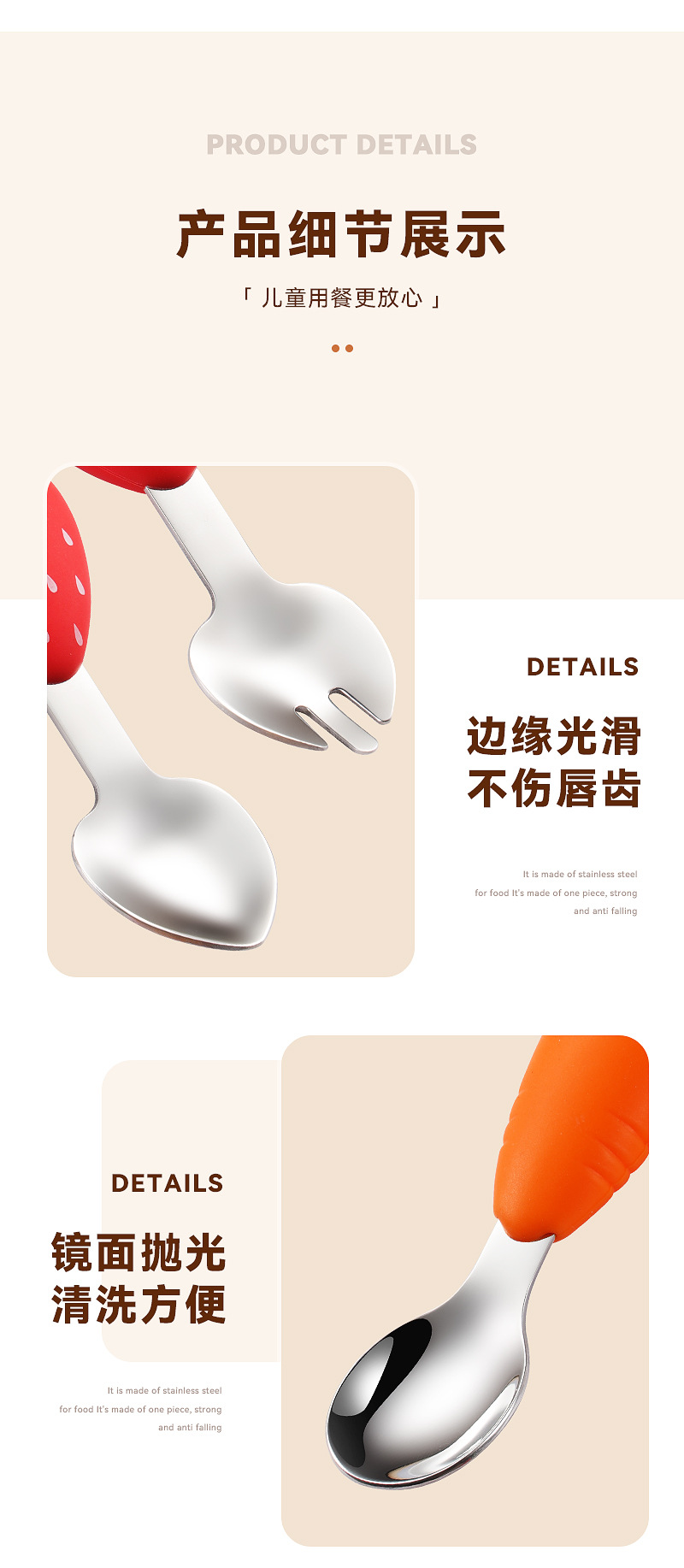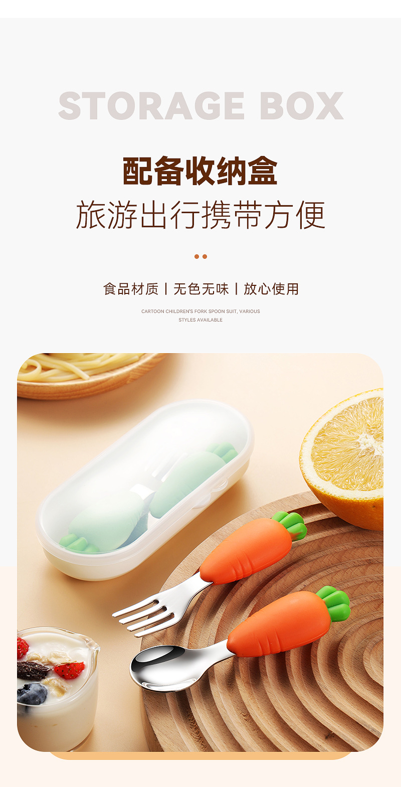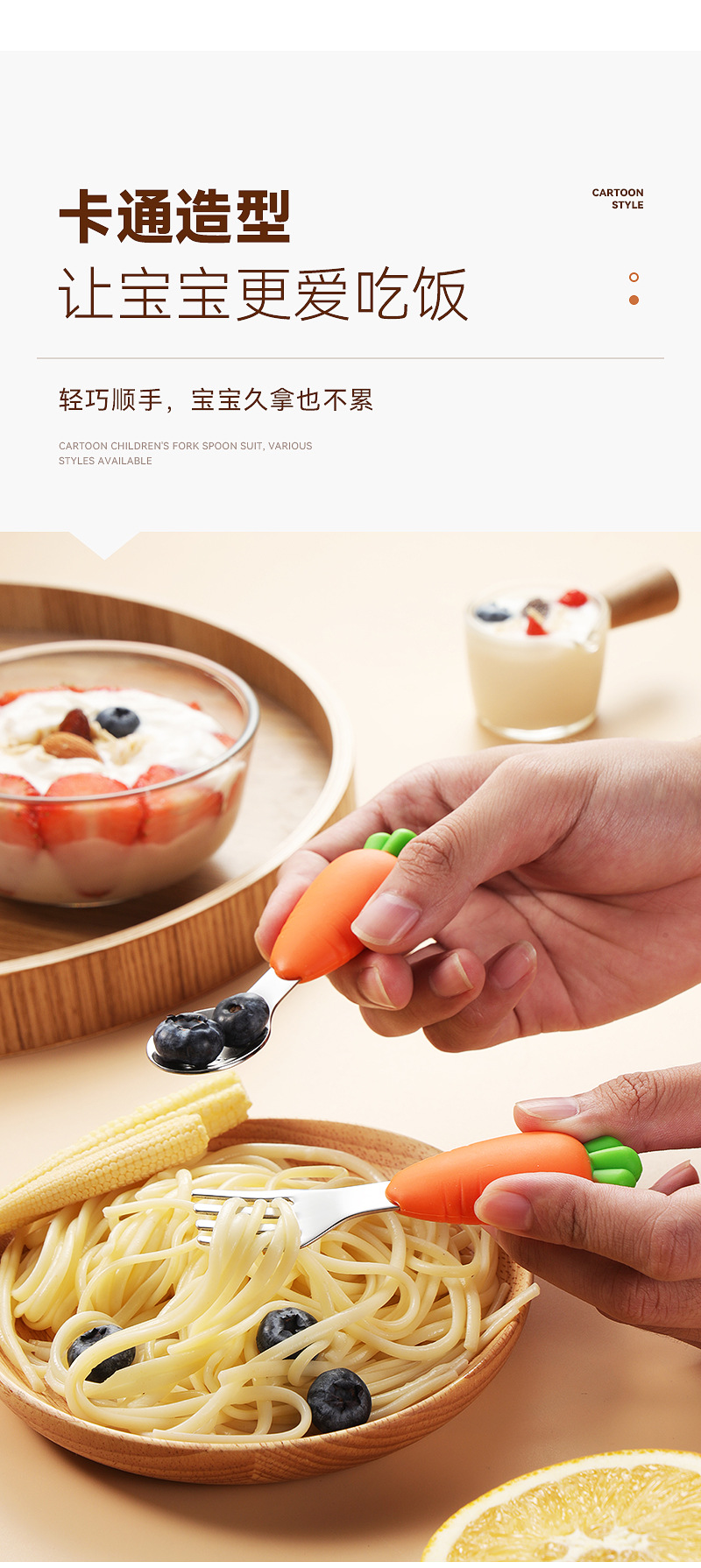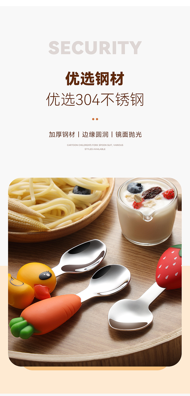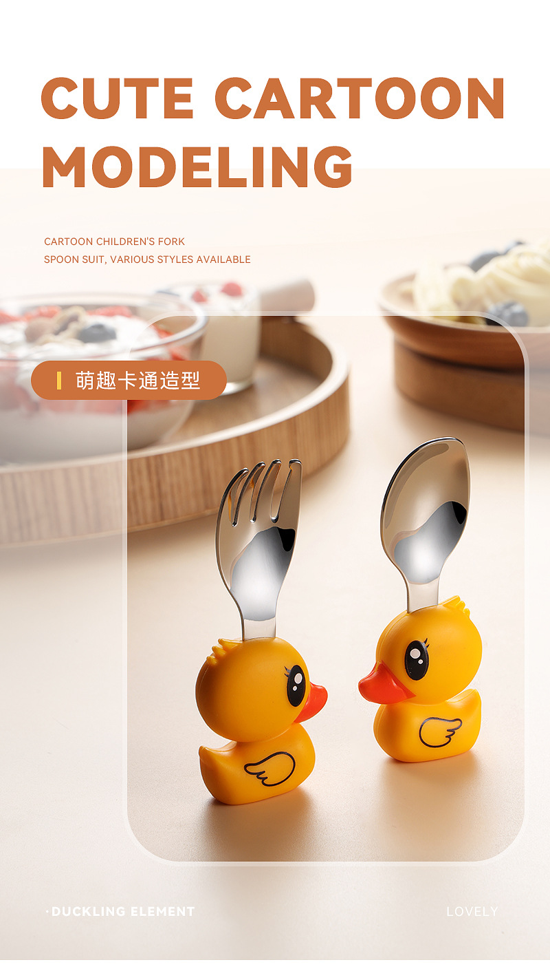 304 스테인레스 스틸 어린이 식기 세트 실리콘 스푼 포크 만화 당근 옥수수 딸기 아기 식기