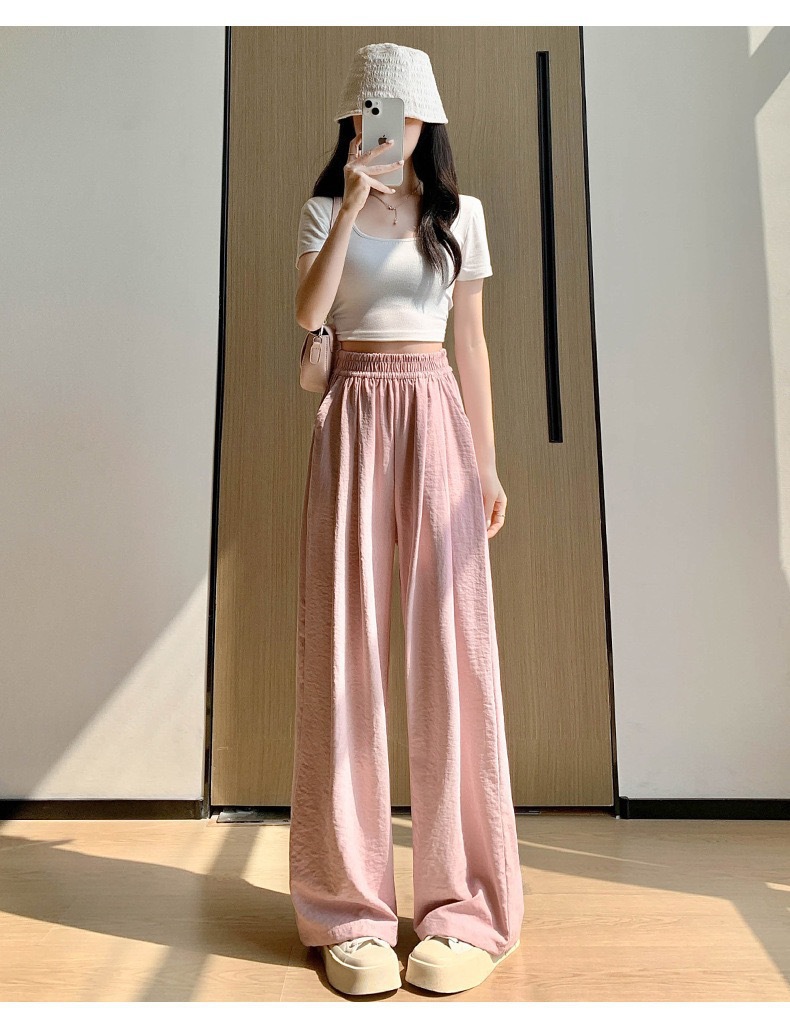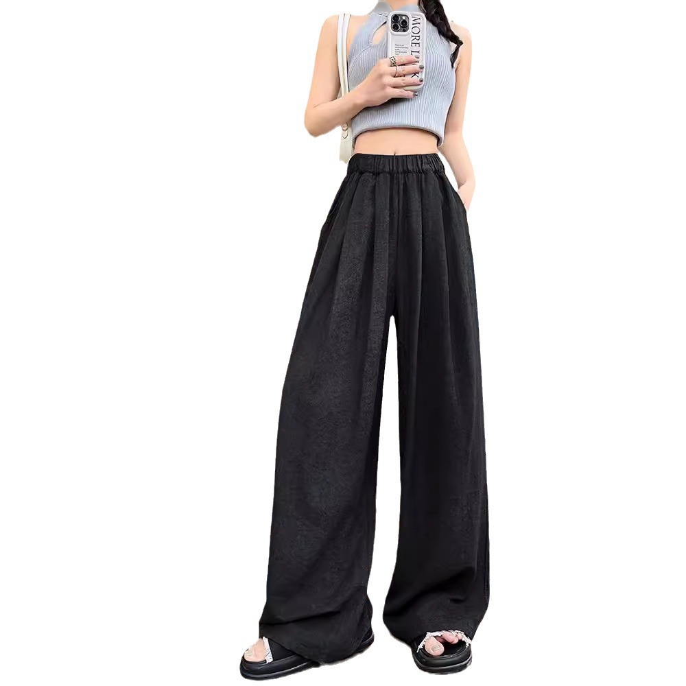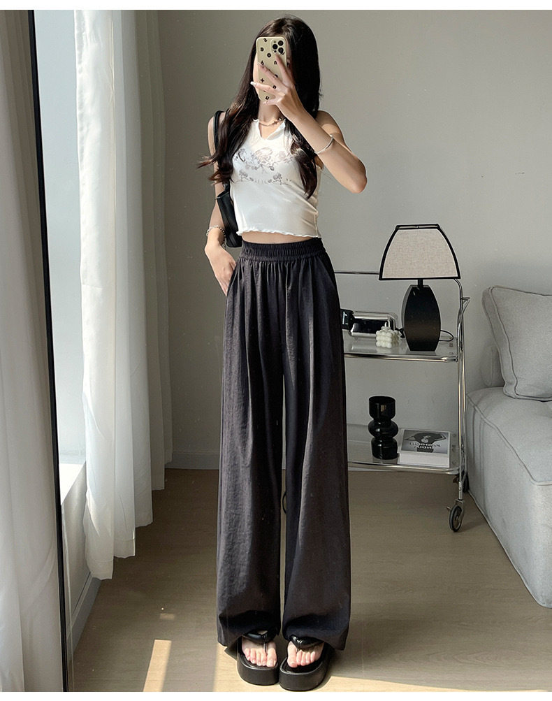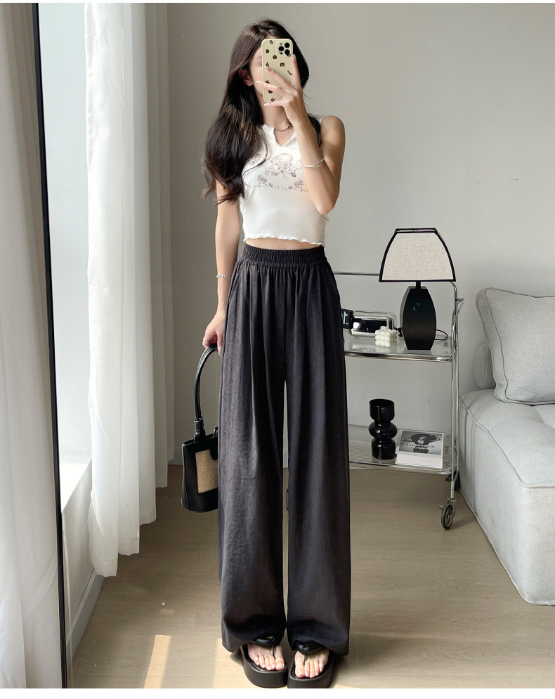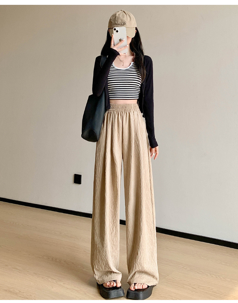 다리를 길어보이게 해주는 화이트 비니코마이트 팬츠 여성용 하이웨이스트 롱팬츠 레이지 스타일 일본풍 야마모토 캐주얼 와이드 팬츠 얇은 소재