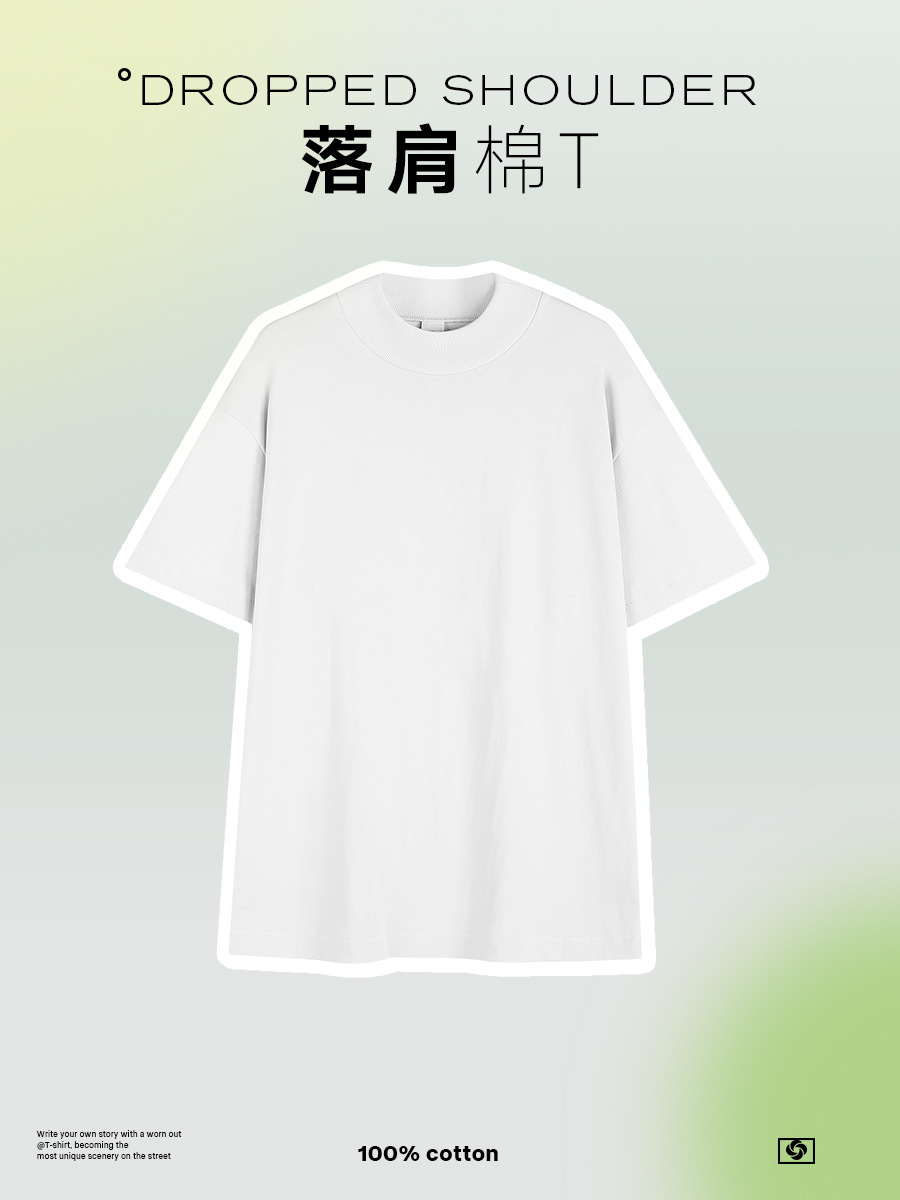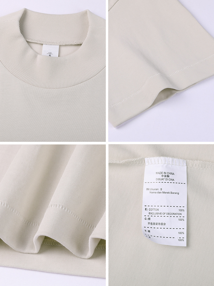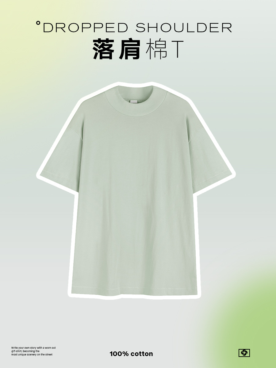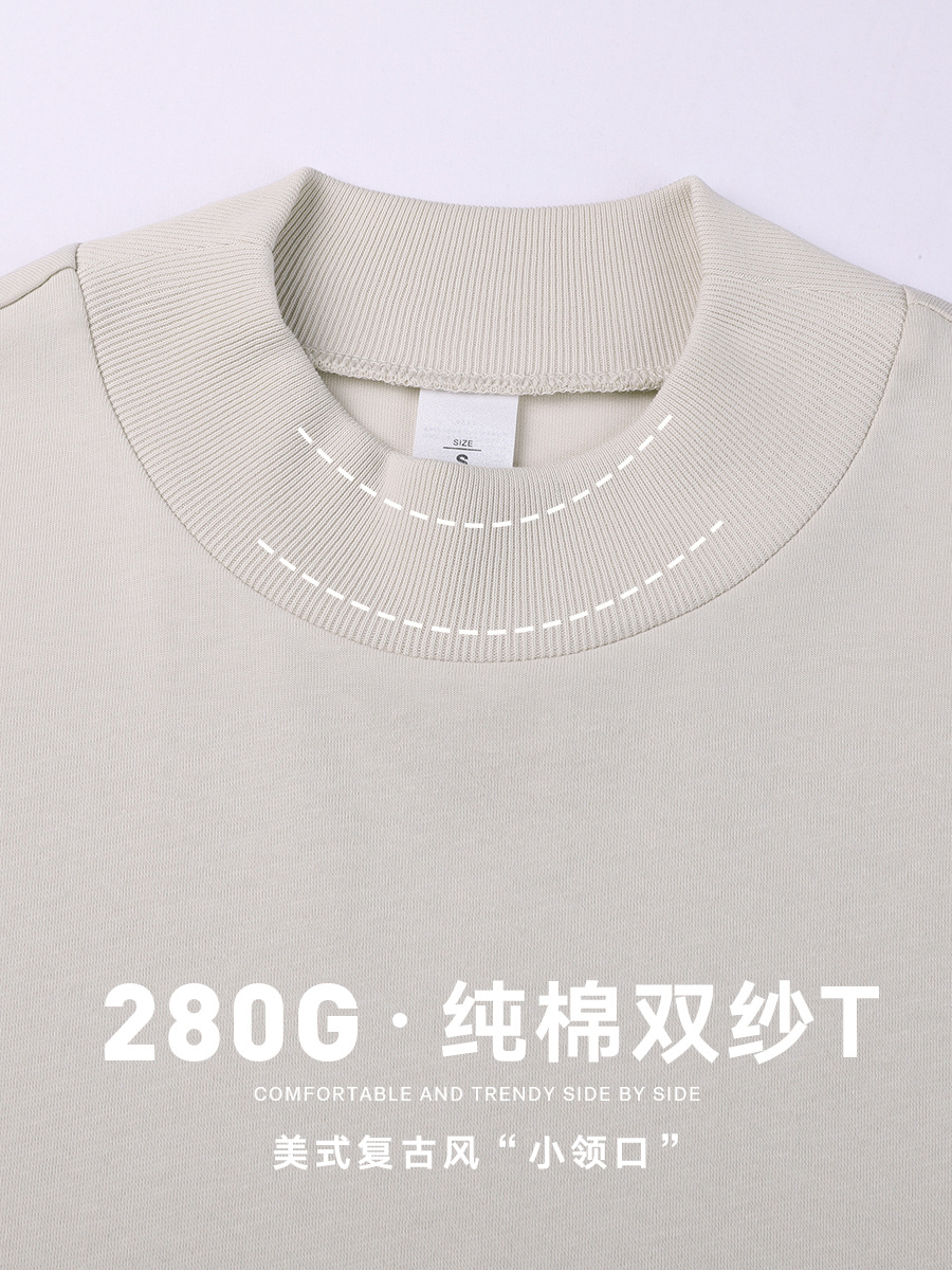 미국 280g 무거운 작은 목 높은 칼라 브랜드 더블 원사 퓨어 코튼 짧은 소매 티셔츠 남성용 루즈 레트로 솔리드 컬러 하프 슬리브