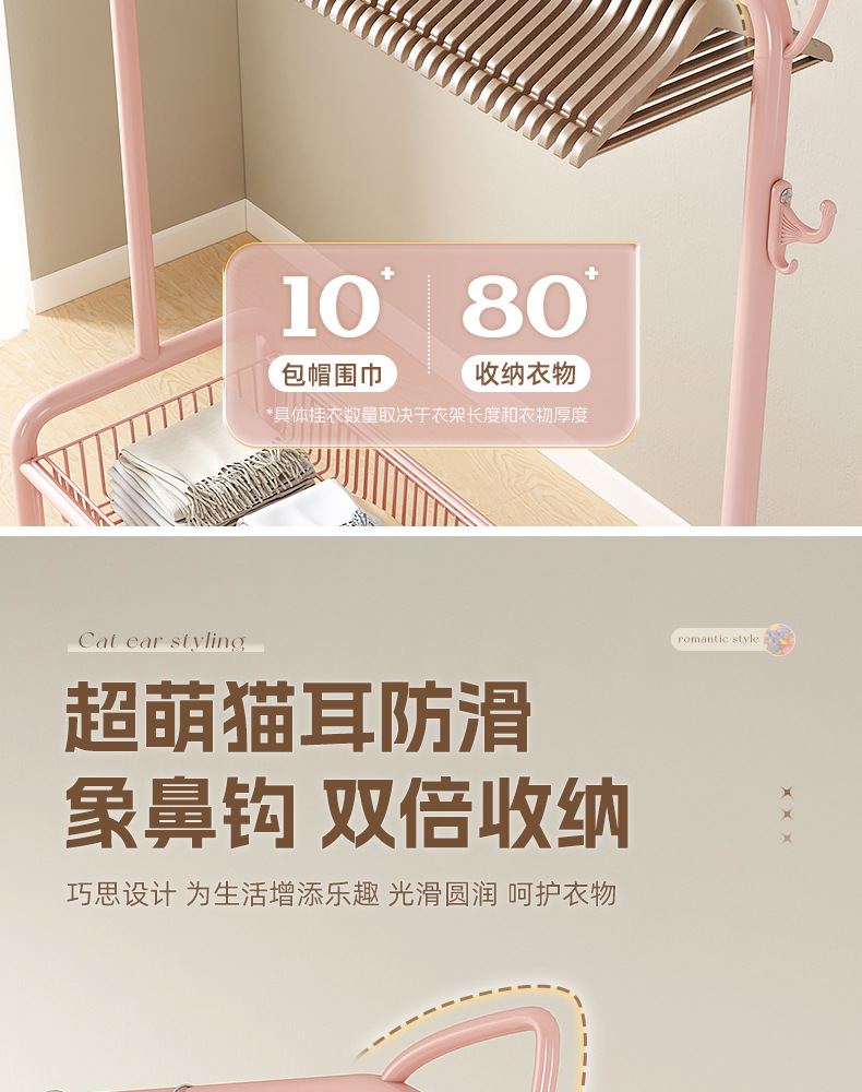 【고양이 귀 업그레이드 버전】 60cm 벚꽃 핑크 - 2단 수납 메시 바구니