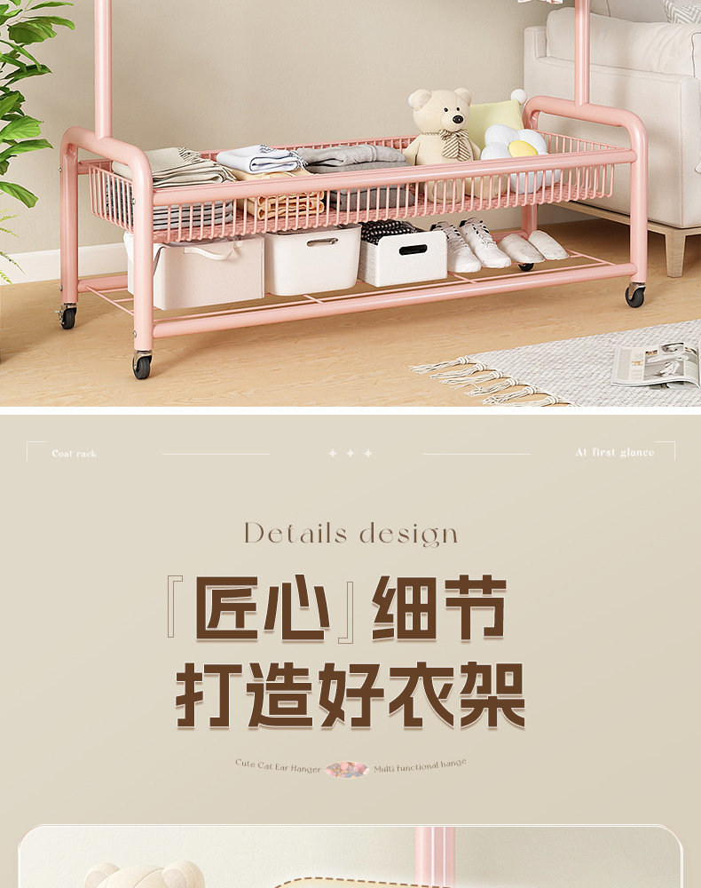 【고양이 귀 업그레이드 버전】 100cm 벚꽃 핑크 - 2단 수납 네트 바구니