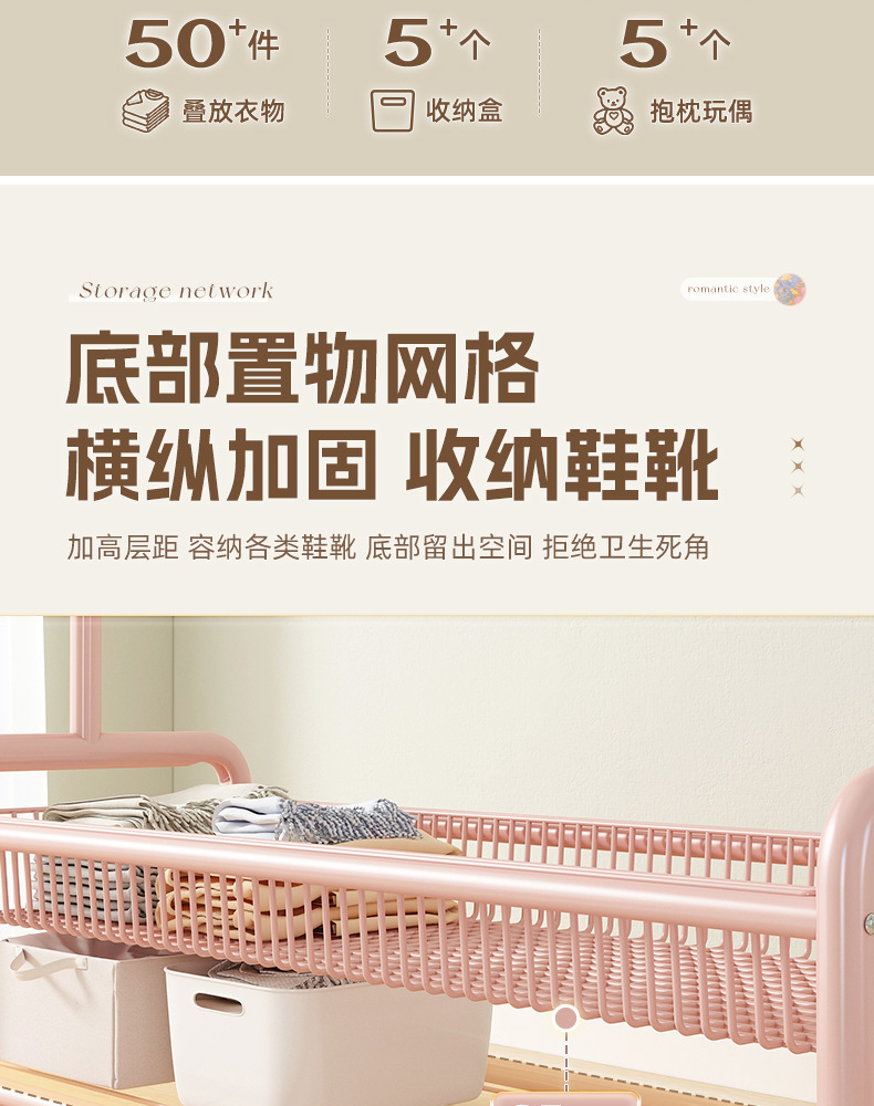 【고양이 귀 업그레이드 버전】 120cm 벚꽃 핑크 - 2단 수납 네트 바구니