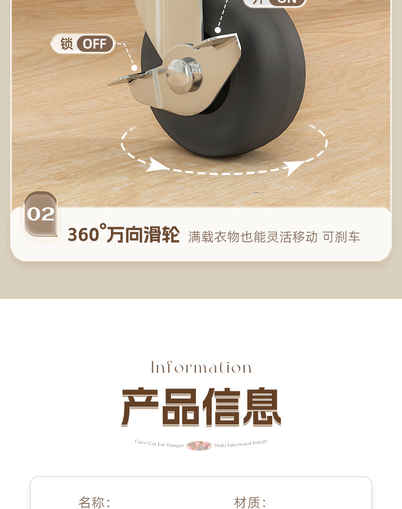 【고양이 귀 업그레이드 버전】 150cm 크림 화이트 - 2단 수납 메시 바구니