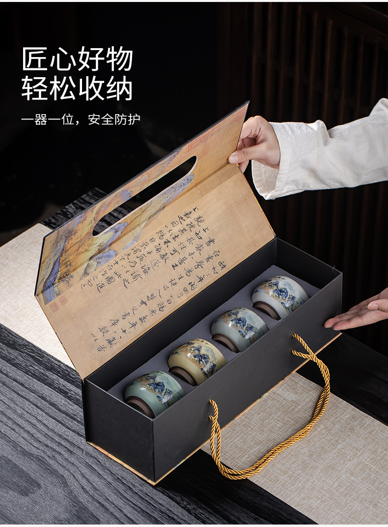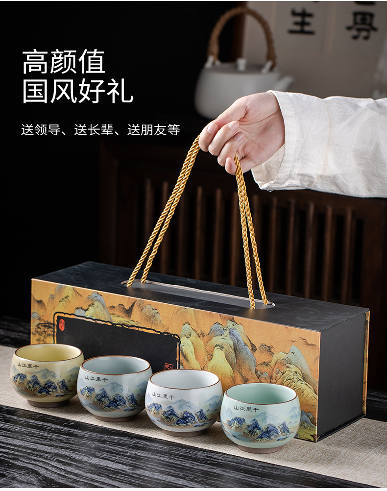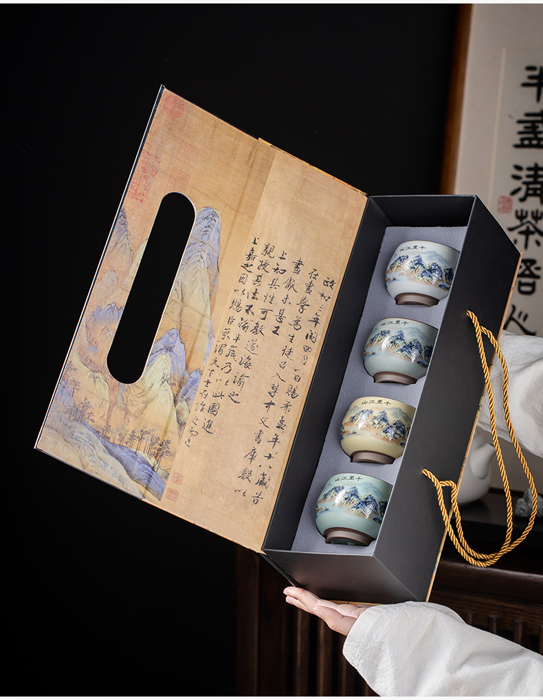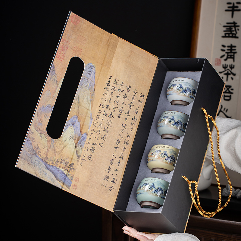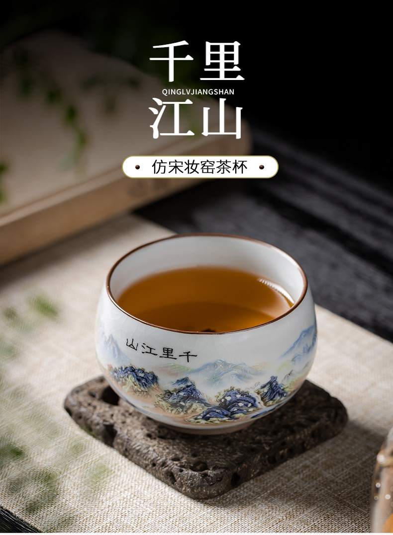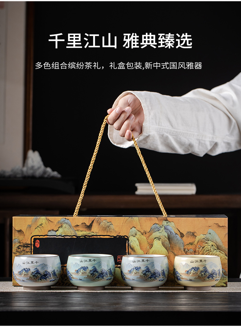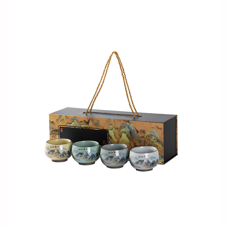 Qianli Jiangshan 모방 노래 Ruyao 티 컵 (4 색) 선물 상자