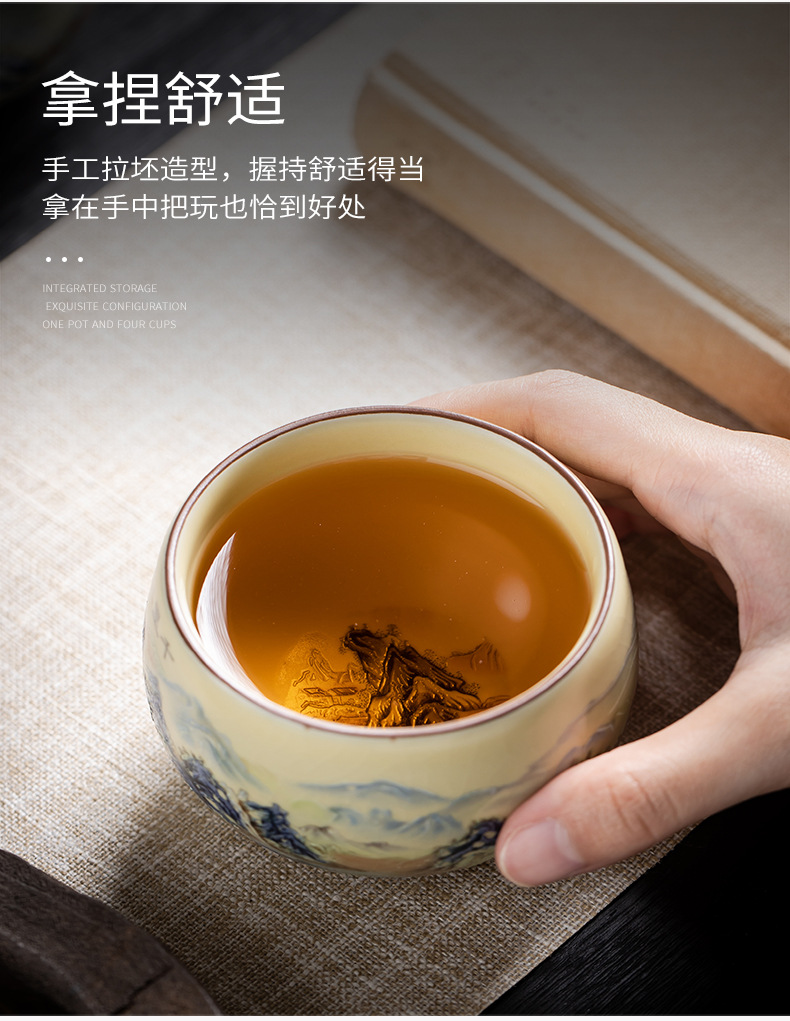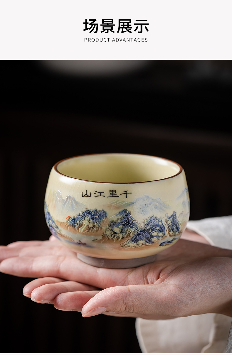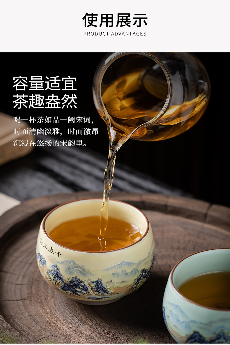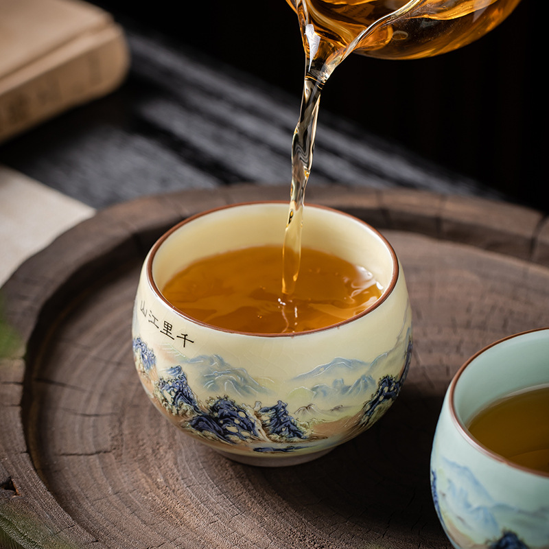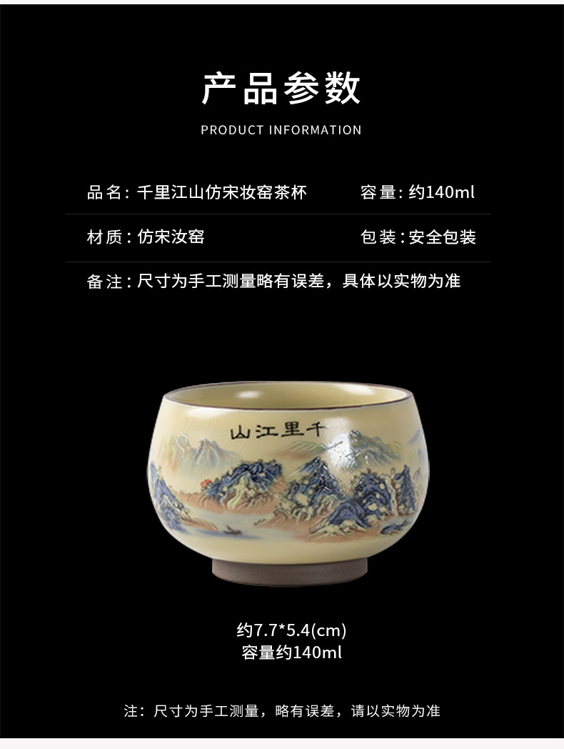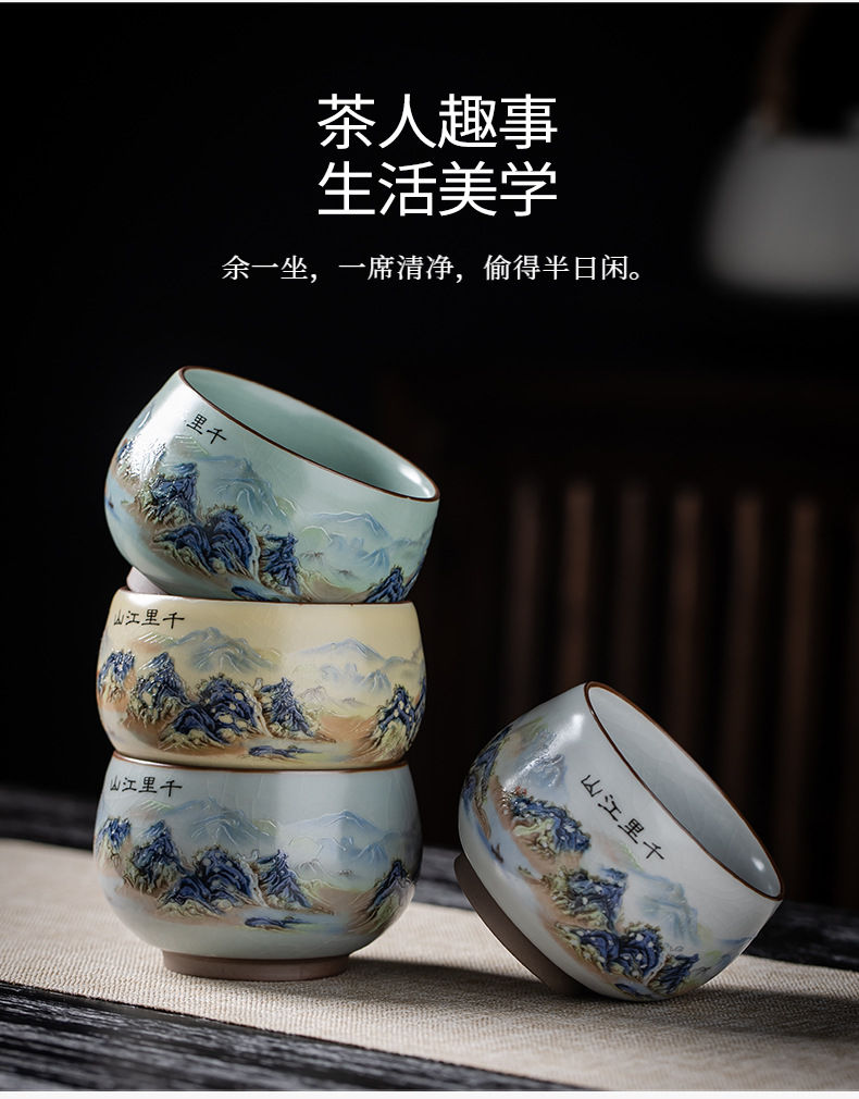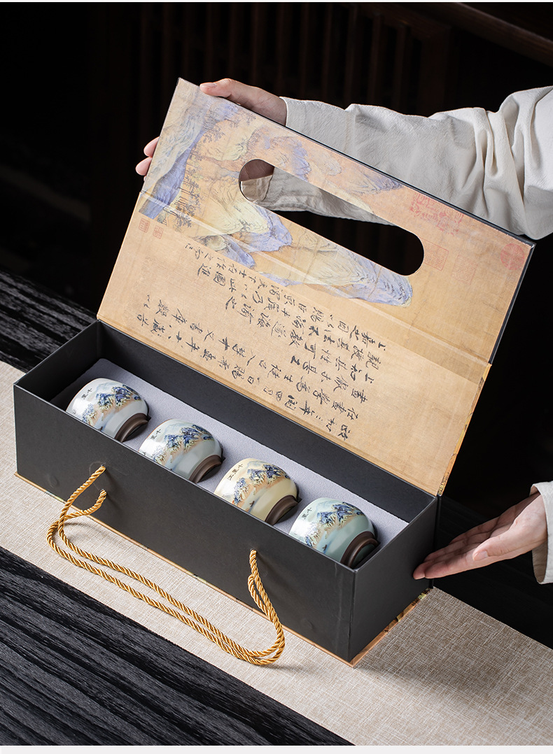 Qianli Jiangshan 모방 노래 Ruyao 티 컵 (4 색) 선물 상자