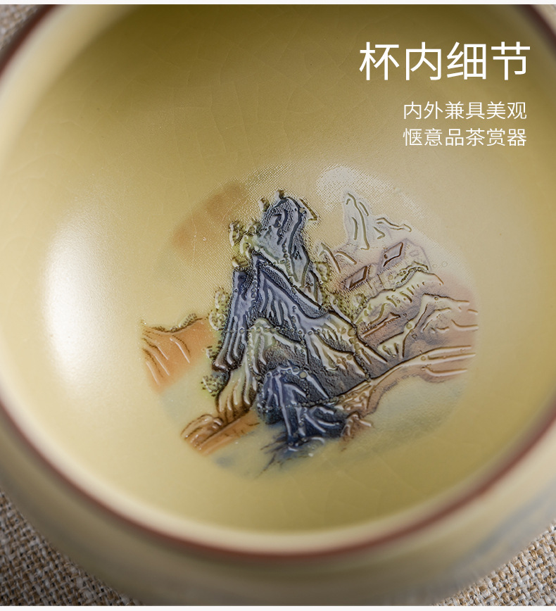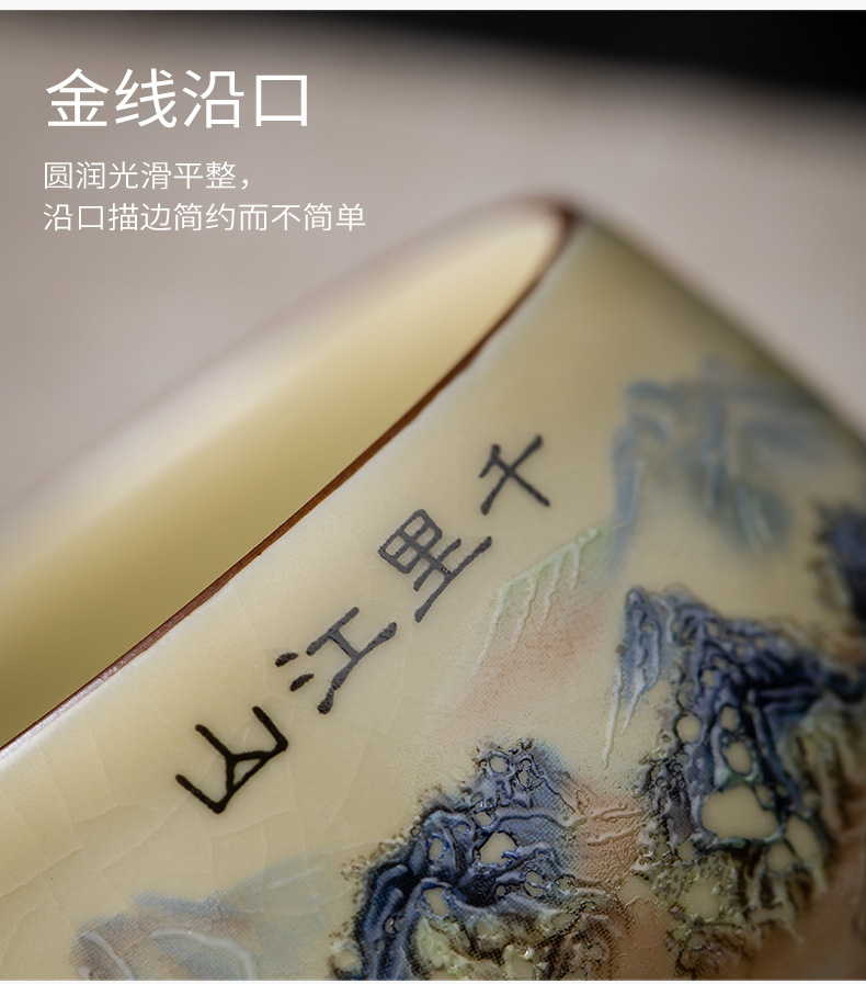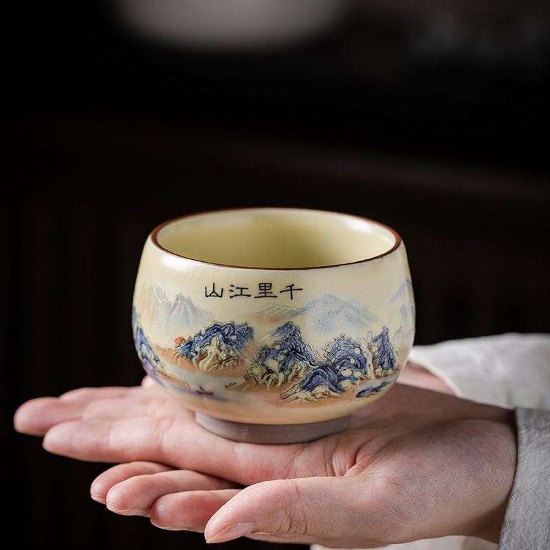 Qianli Jiangshan 모방 송 Ru Kiln 티 컵 (노란색)