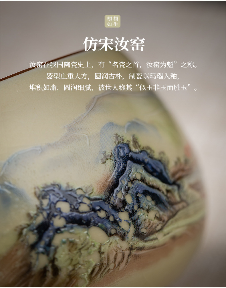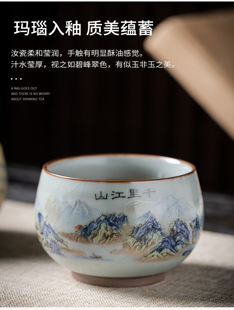 Qianli Jiangshan 모방 송 Ru Kiln 티 컵 (블루)