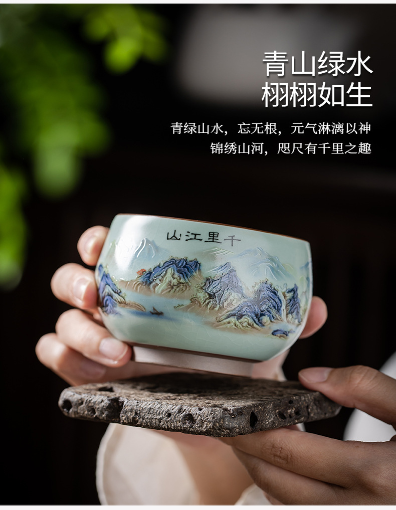 Qianli Jiangshan 모방 송 Ru Kiln 티 컵 (녹색)
