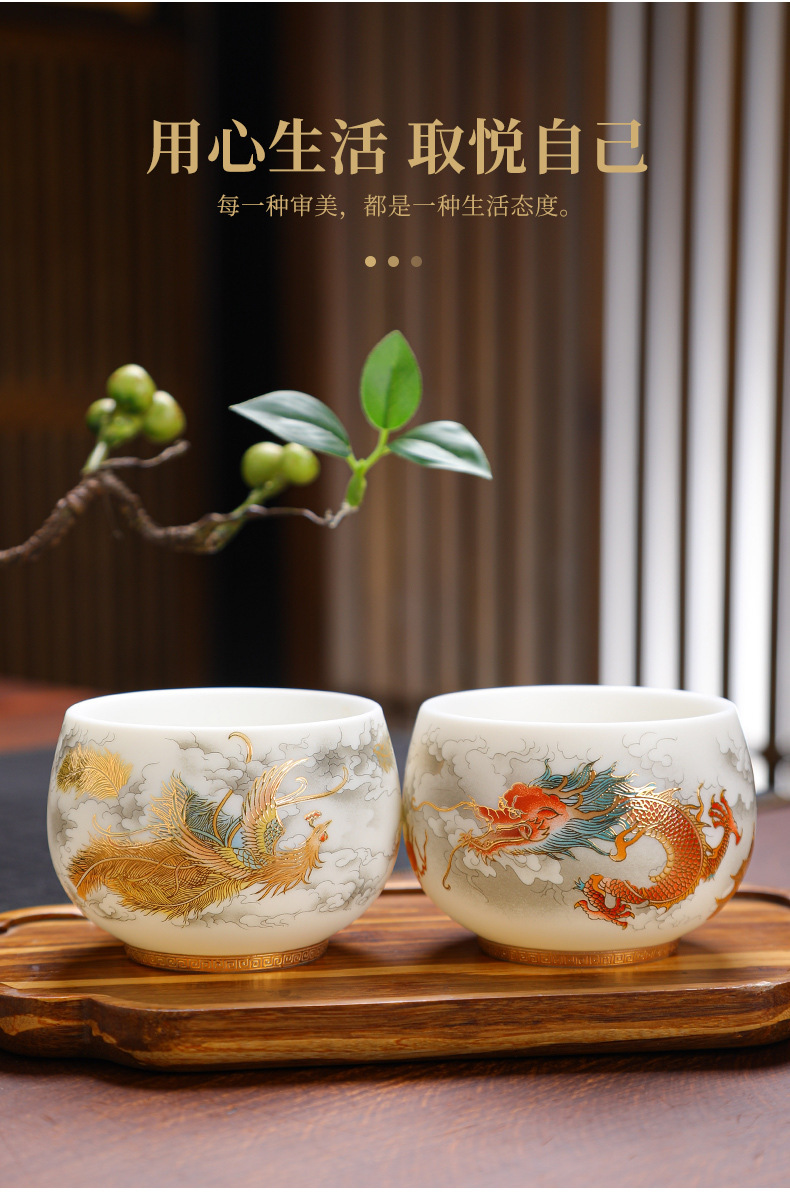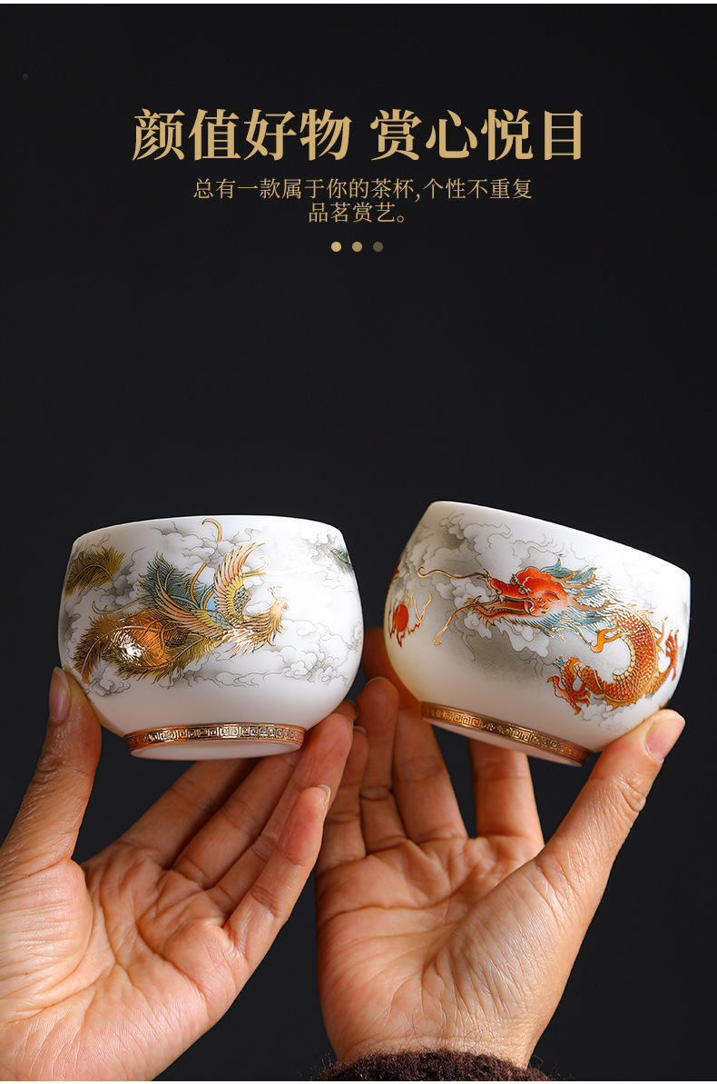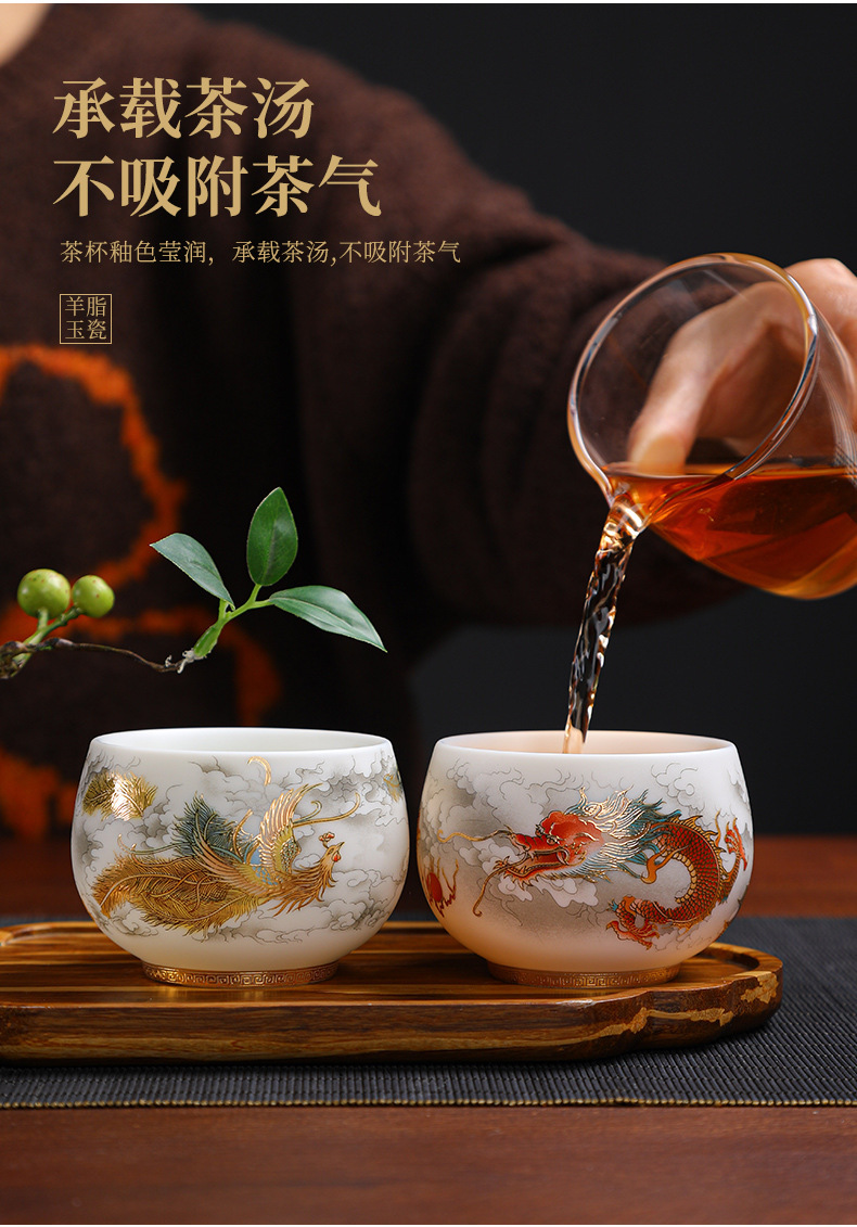 양 뚱뚱한 옥 세라믹 용과 피닉스 페어 컵 티 보울 티 컵 마스터 컵 티 컵 컵 연례 회의 티 컵 선물 로고