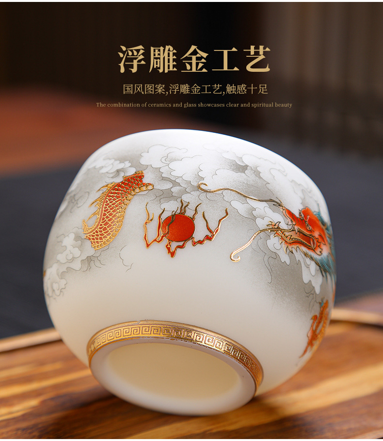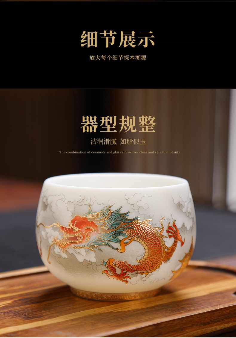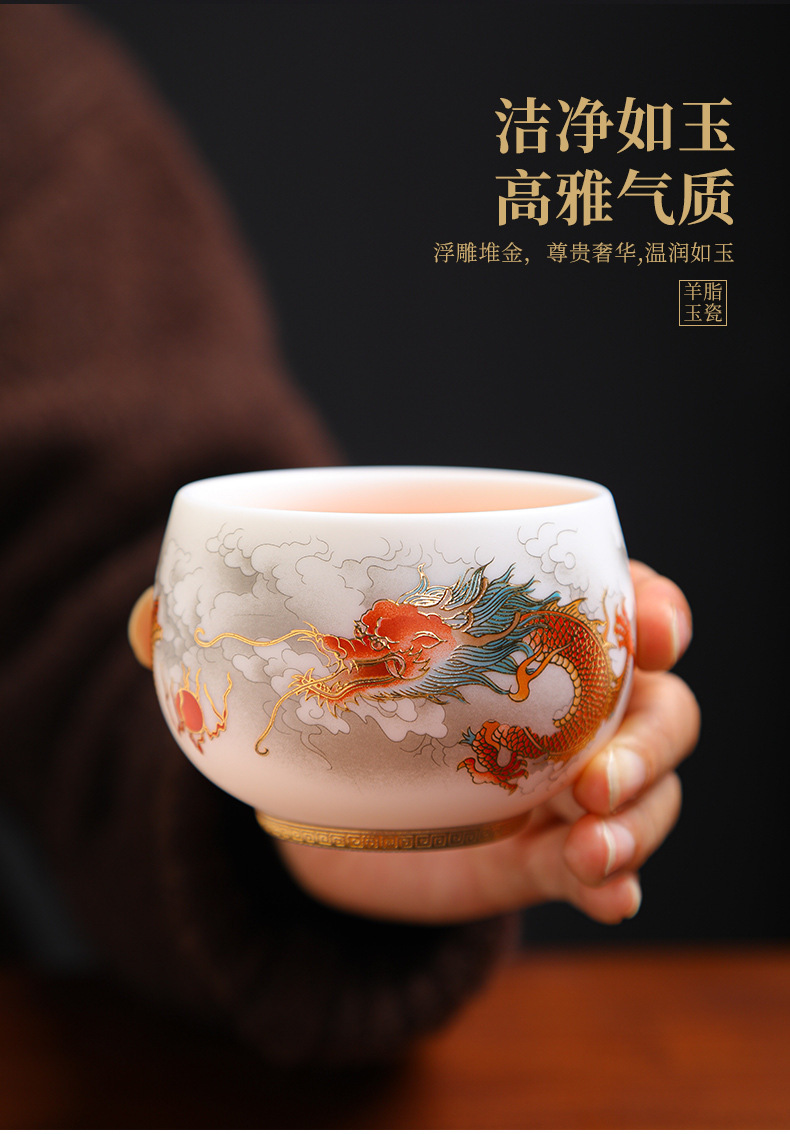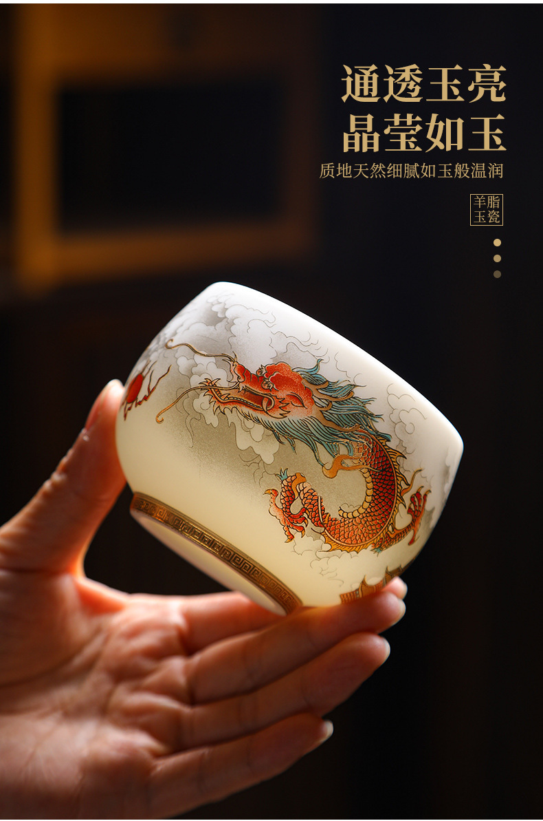 양 뚱뚱한 옥 세라믹 용과 피닉스 페어 컵 티 보울 티 컵 마스터 컵 티 컵 컵 연례 회의 티 컵 선물 로고