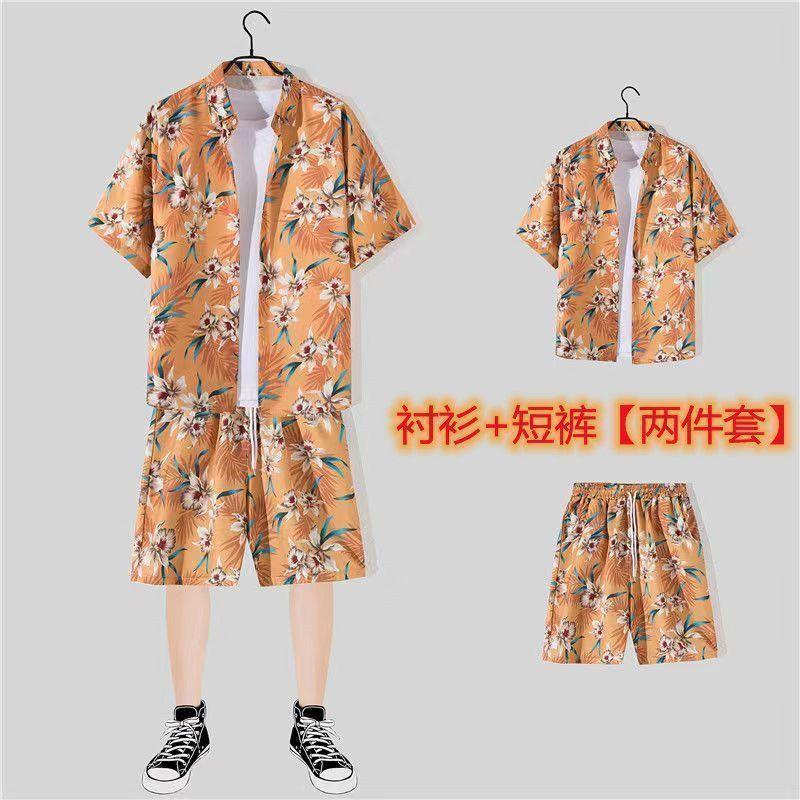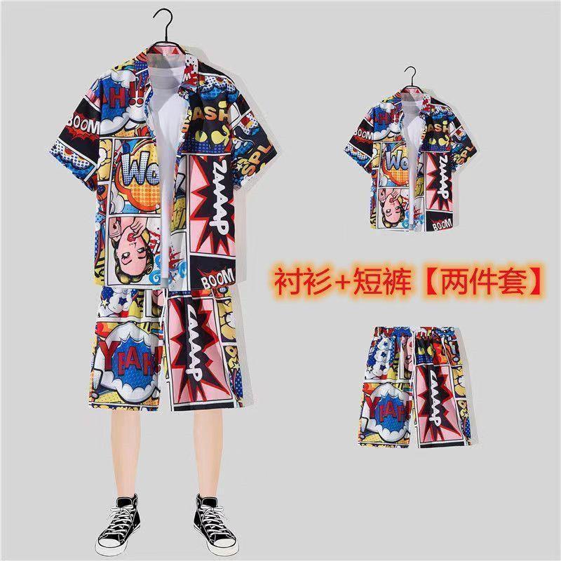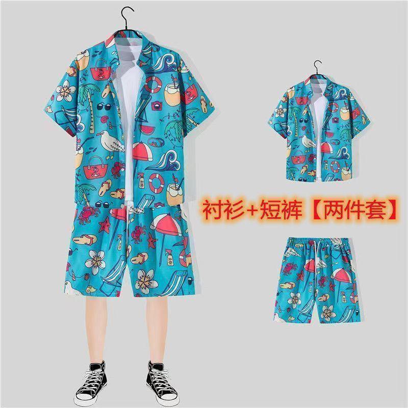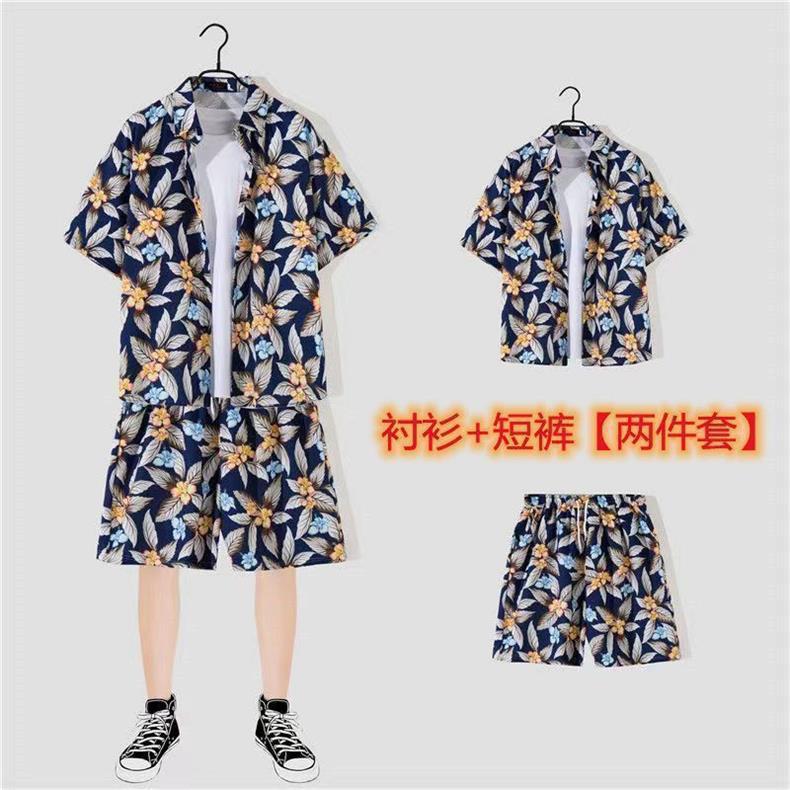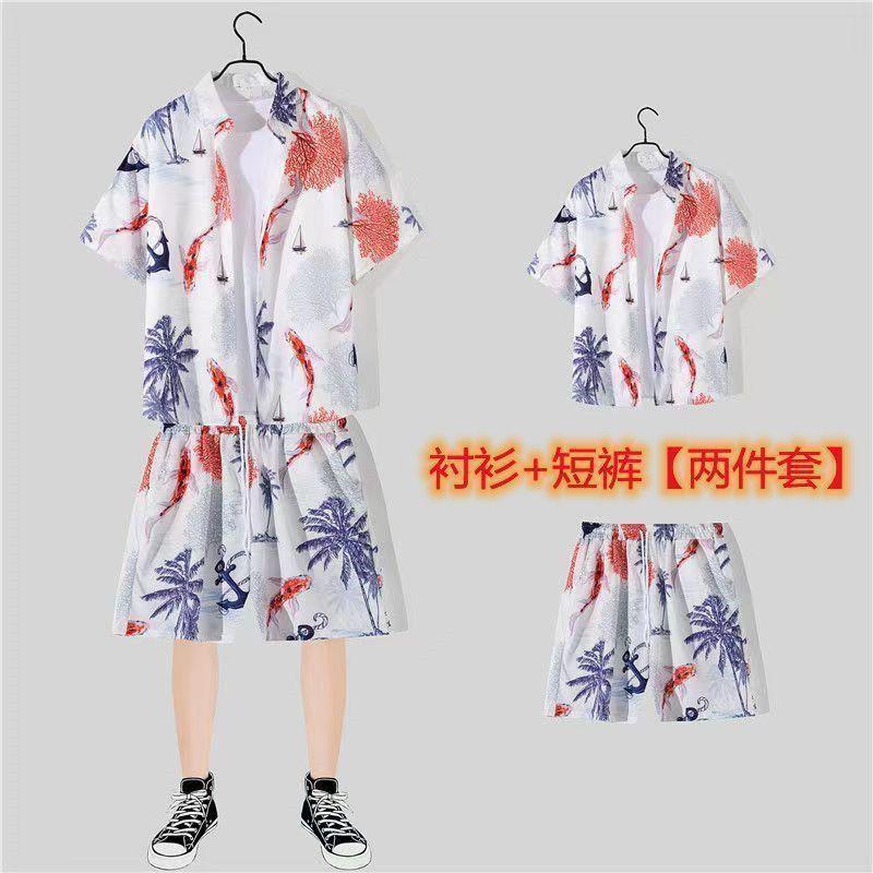 하와이 비치 슈트 남성 여름 반팔 셔츠 루즈 속건 캐주얼 반바지 남성 커플 슈트