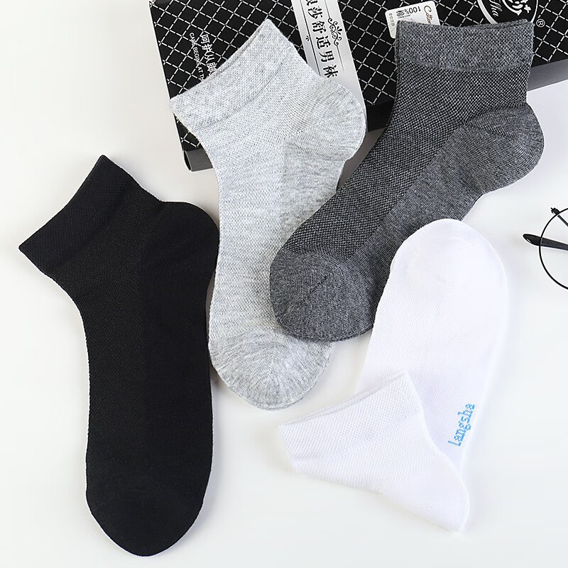 Longsha 남성용 면화 양말 봄과 여름 메쉬 짧은 튜브 양말 남성 탈취제 땀 흡수성 여름면 남성용 면화 양말