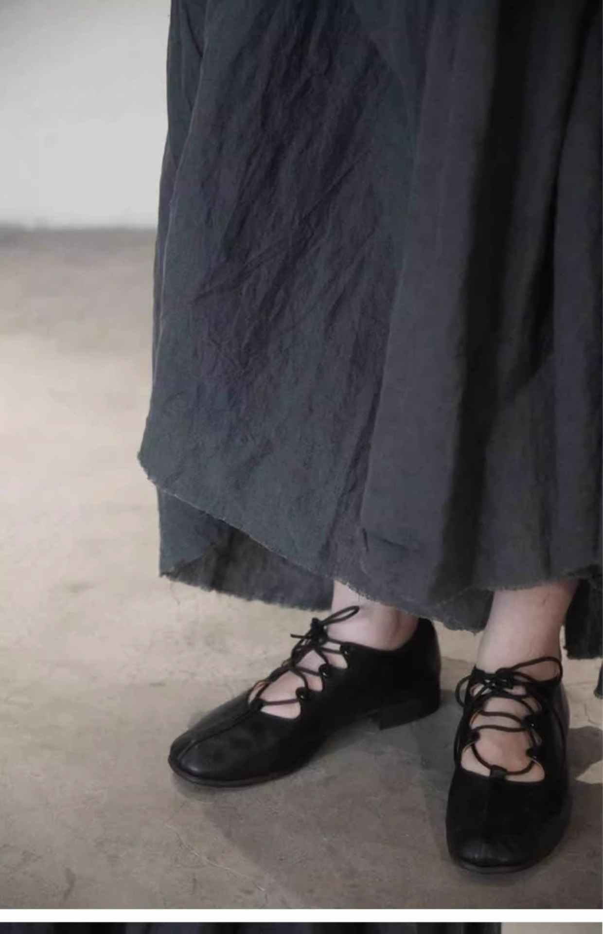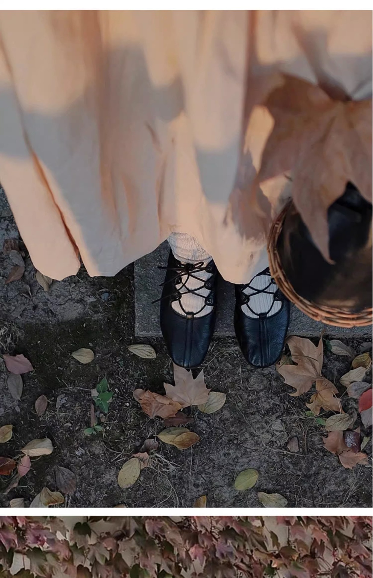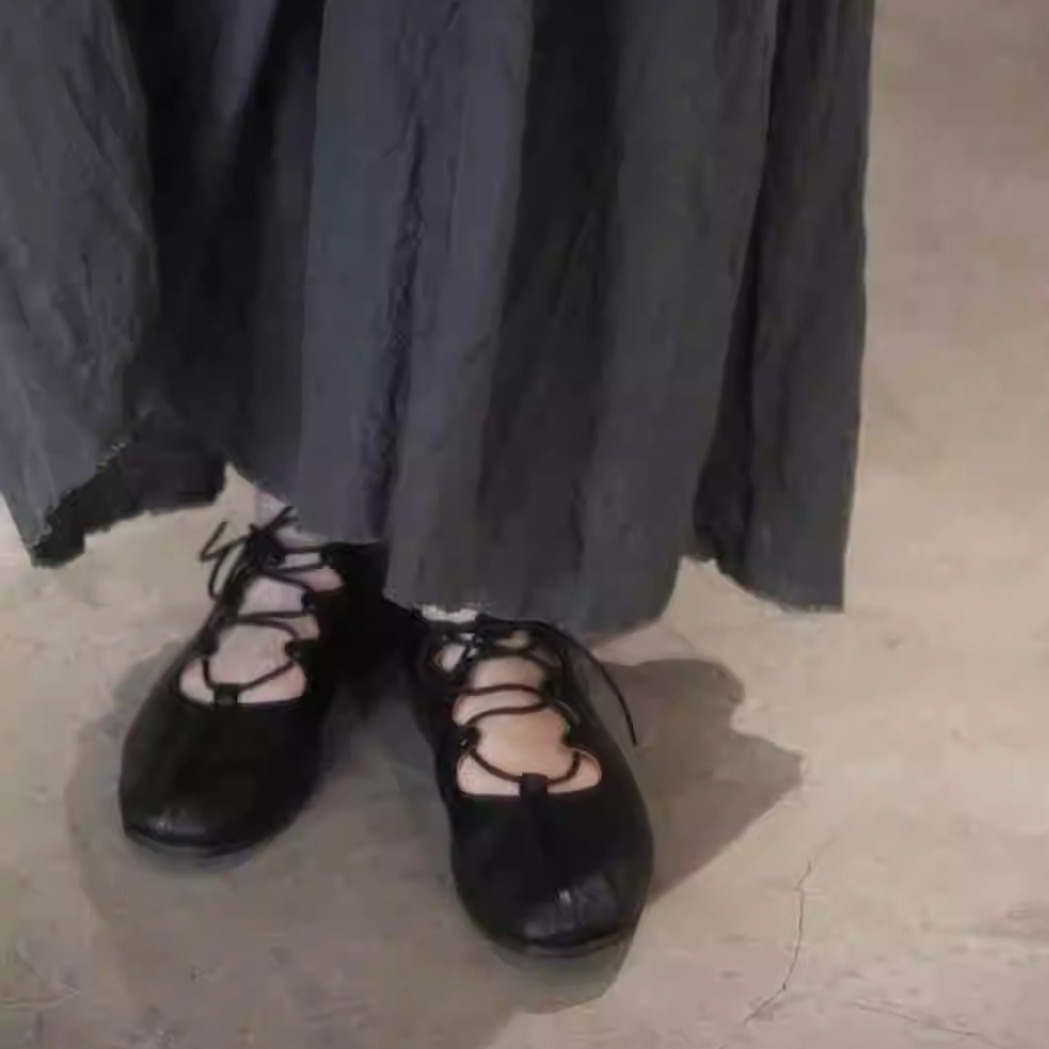 발레 슈즈 여성의 2023 봄과 가을 새로운 작은 가죽 신발 둥근 발가락 레이스 업 할로우 신발 얕은 입 플랫 메리 제인 신발