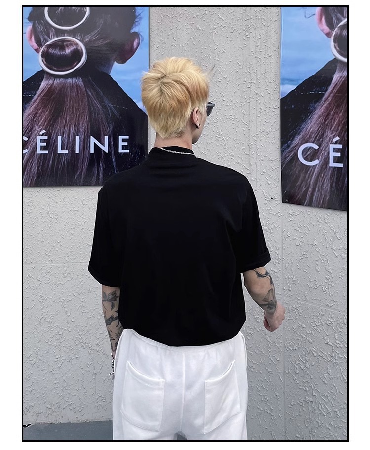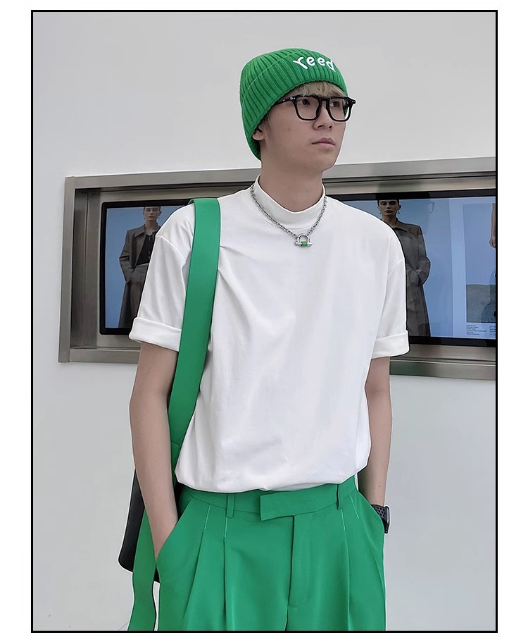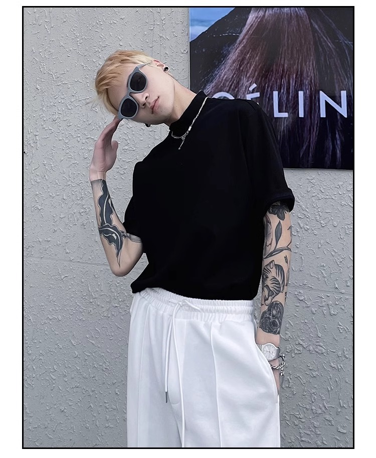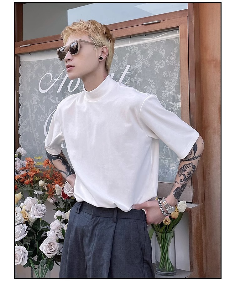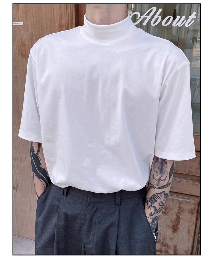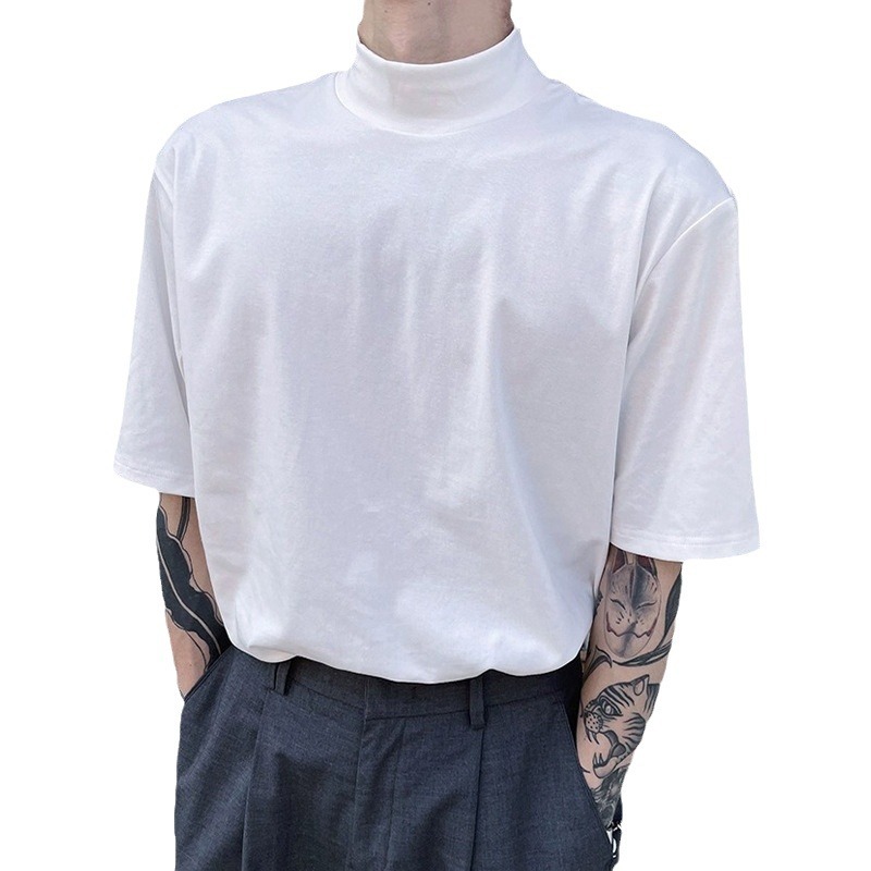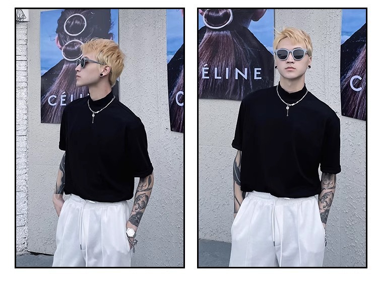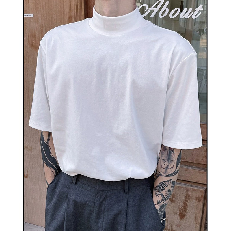 2024 년 여름 새로운 반팔 티셔츠 남성용 슈퍼 인기 느슨한 반 높이 칼라 아이스 느낌 반소매 기본층 셔츠 트렌디 탑
