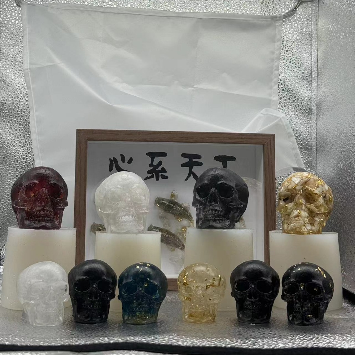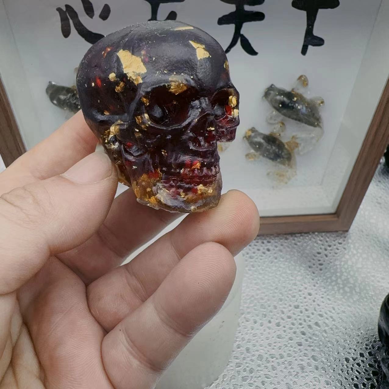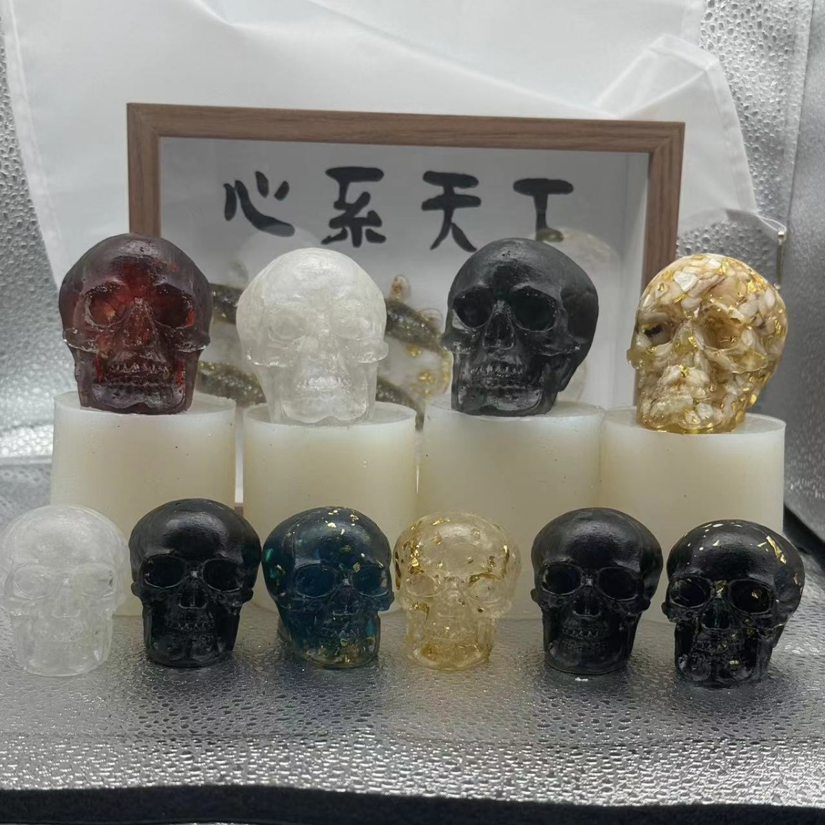 국경 간 전자 상거래 하이 엔드 크리스탈 자갈 접착제 두개골 유령 머리 유럽과 미국의 인기있는 연구 장식품 할로윈 선물
