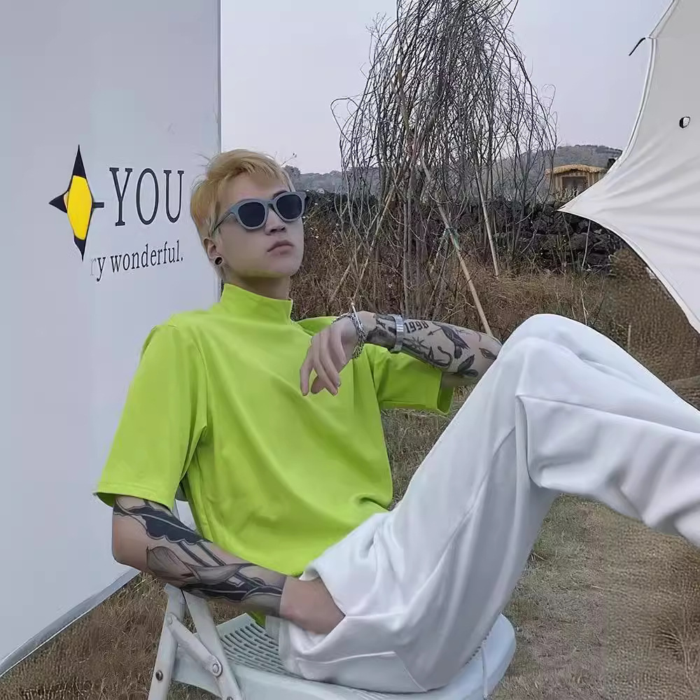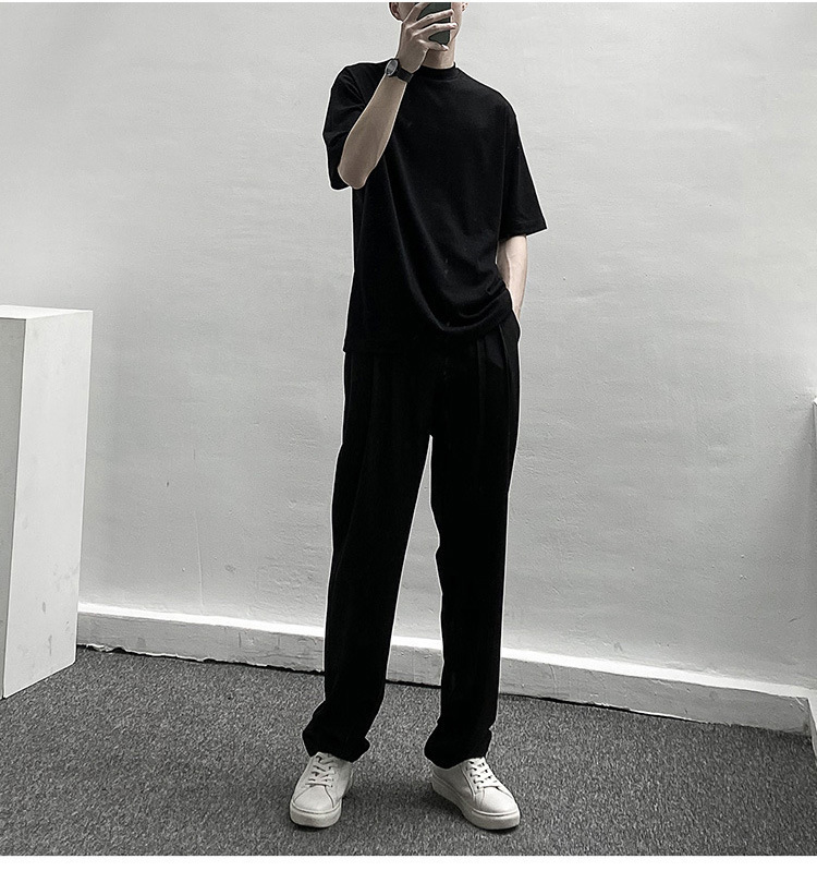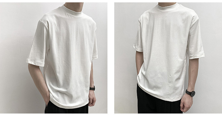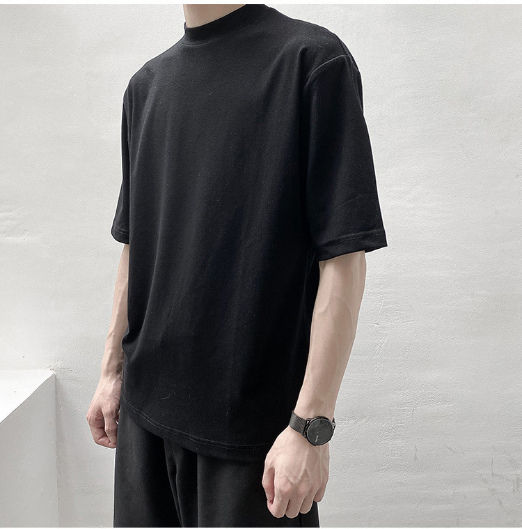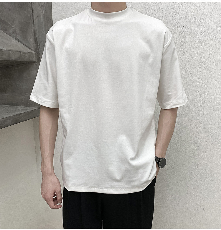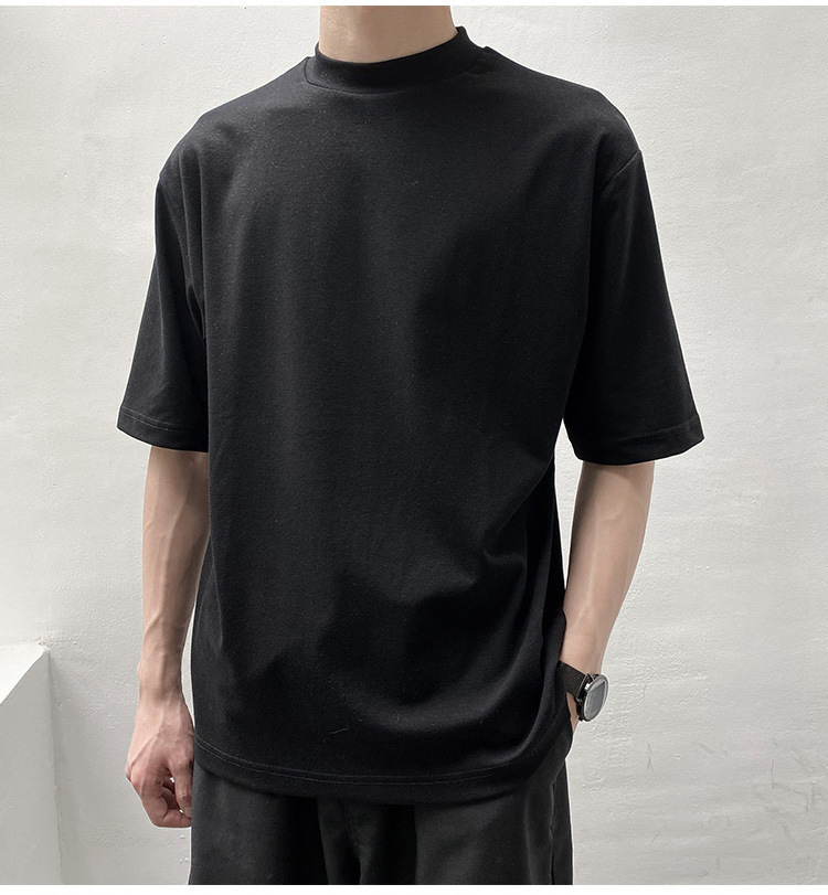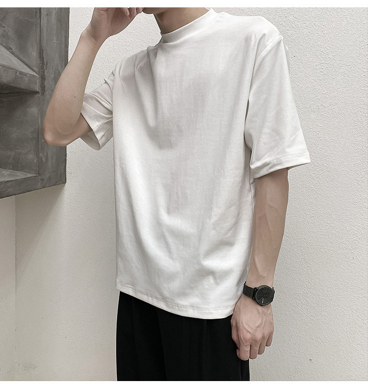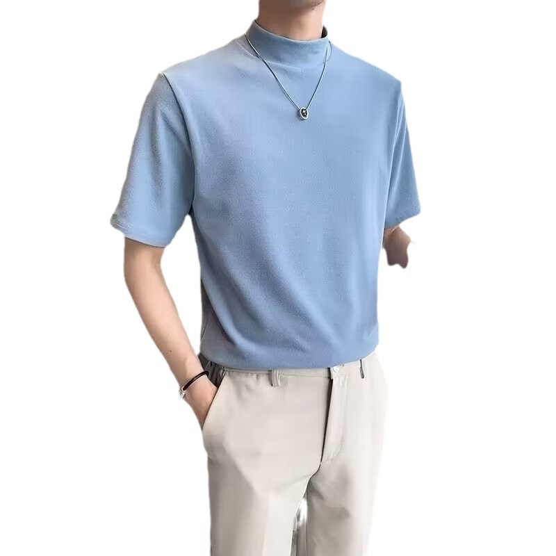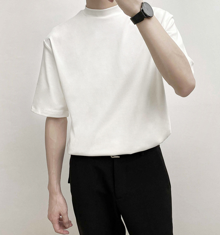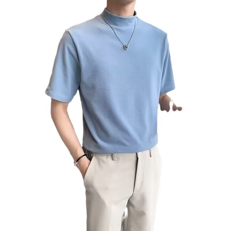 티셔츠 반팔 남성 여름 유행 브랜드 유행 라이트 성숙한 스타일 2024 새로운 솔리드 컬러 반 하이 칼라 베이스 탑 코튼