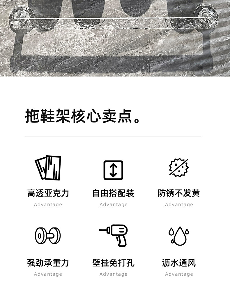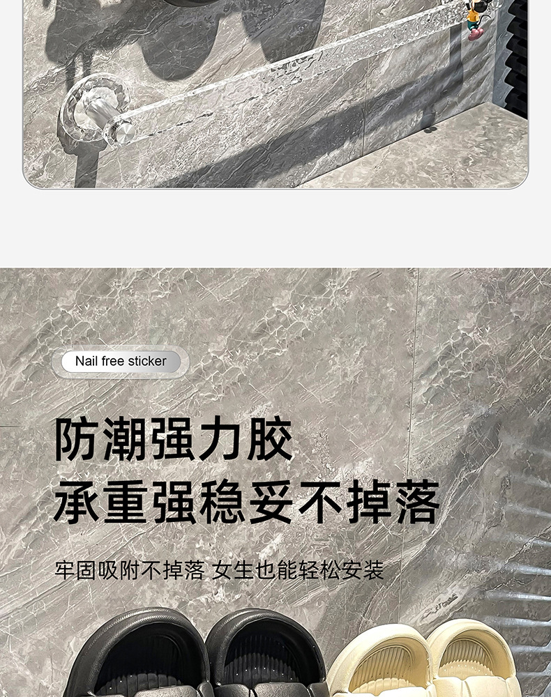 욕실 슬리퍼 타월 랙 펀치 프리 화장실 벽 걸이 신발 랙 아크릴 보관 랙 화장실 걸이