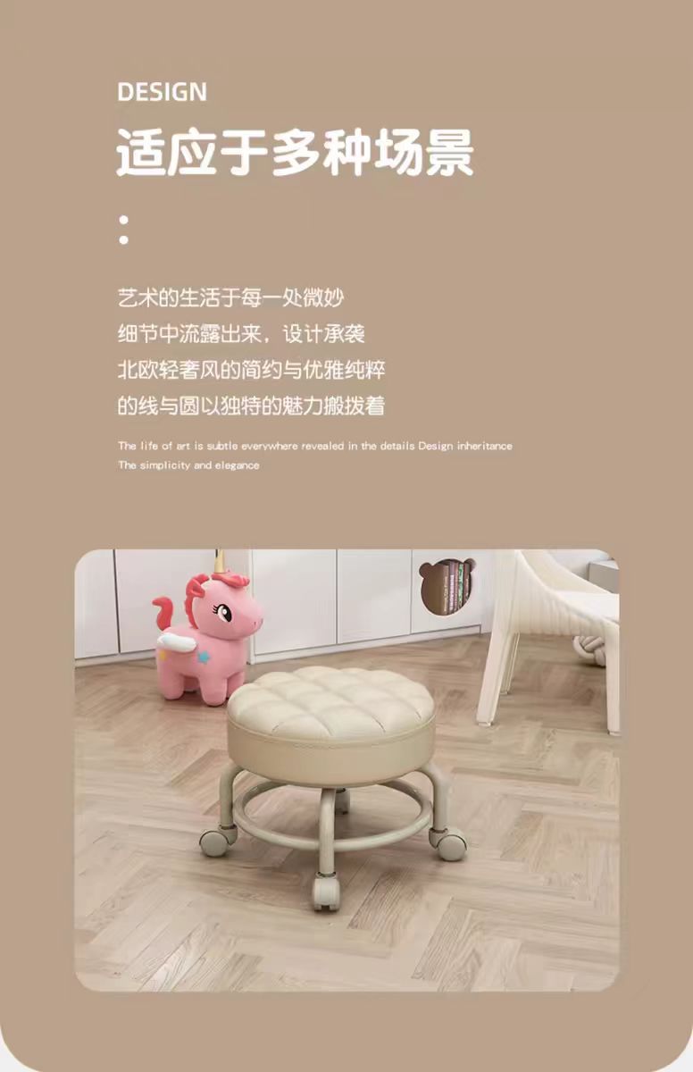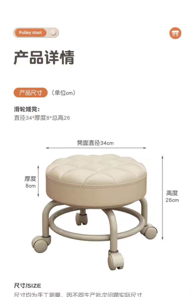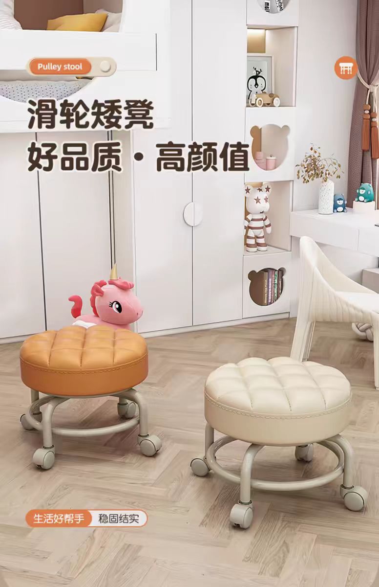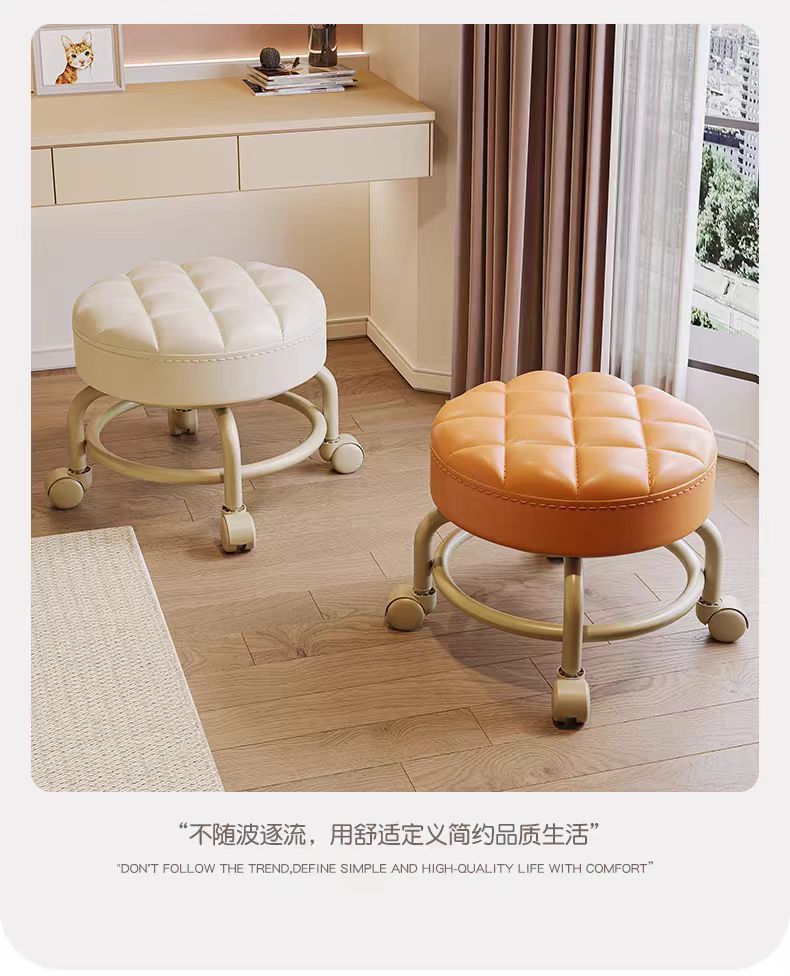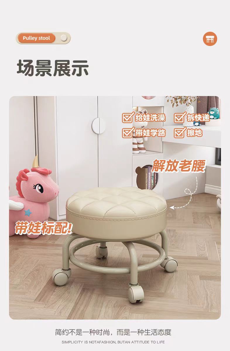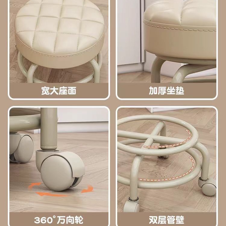 범용 휠 소형 스툴, 롤러 로우 스툴, 현관 신발 교환 스툴, 기숙사 신발 교환 스툴, 아기용 원형 스툴, 아름다운 바느질이 들어간 롤러 스케이트 의자