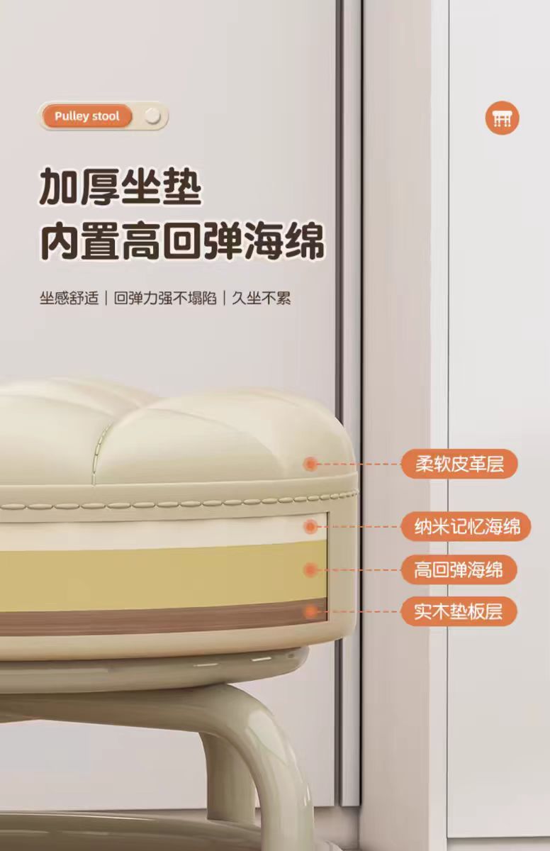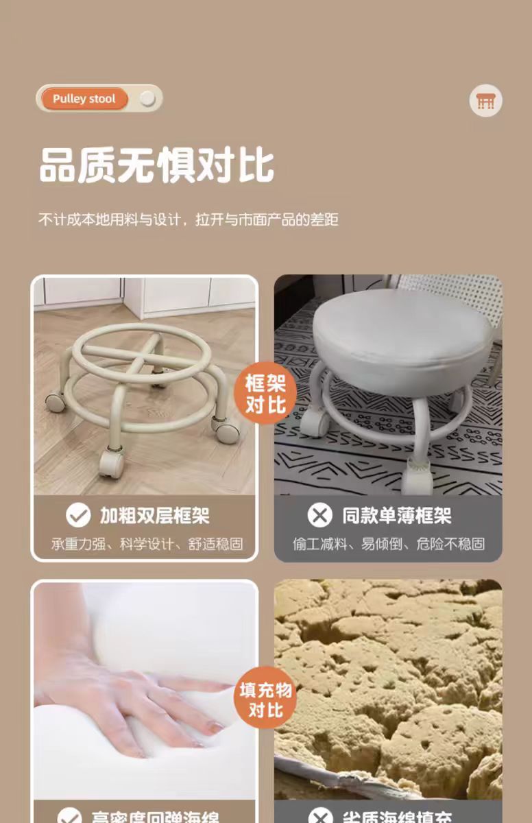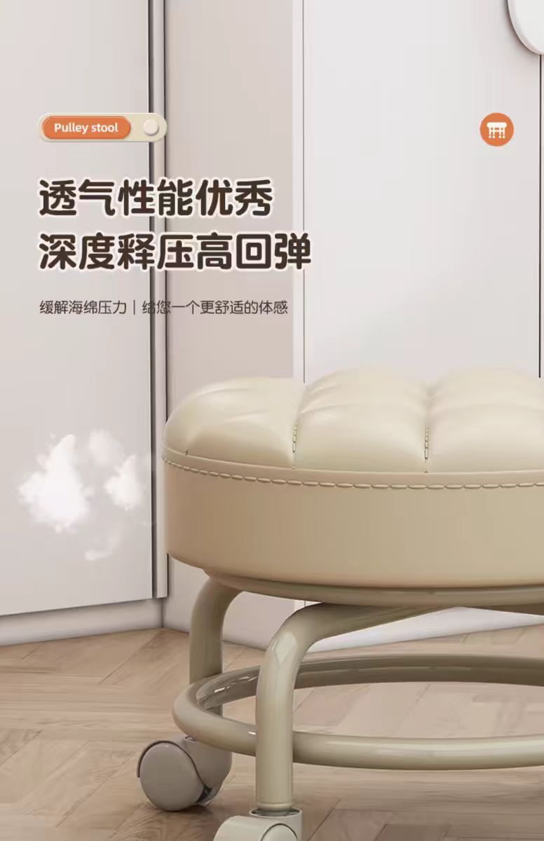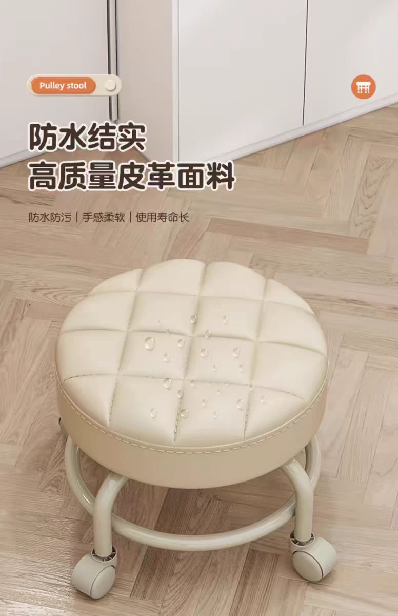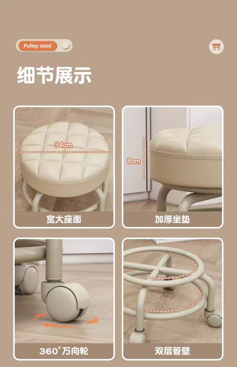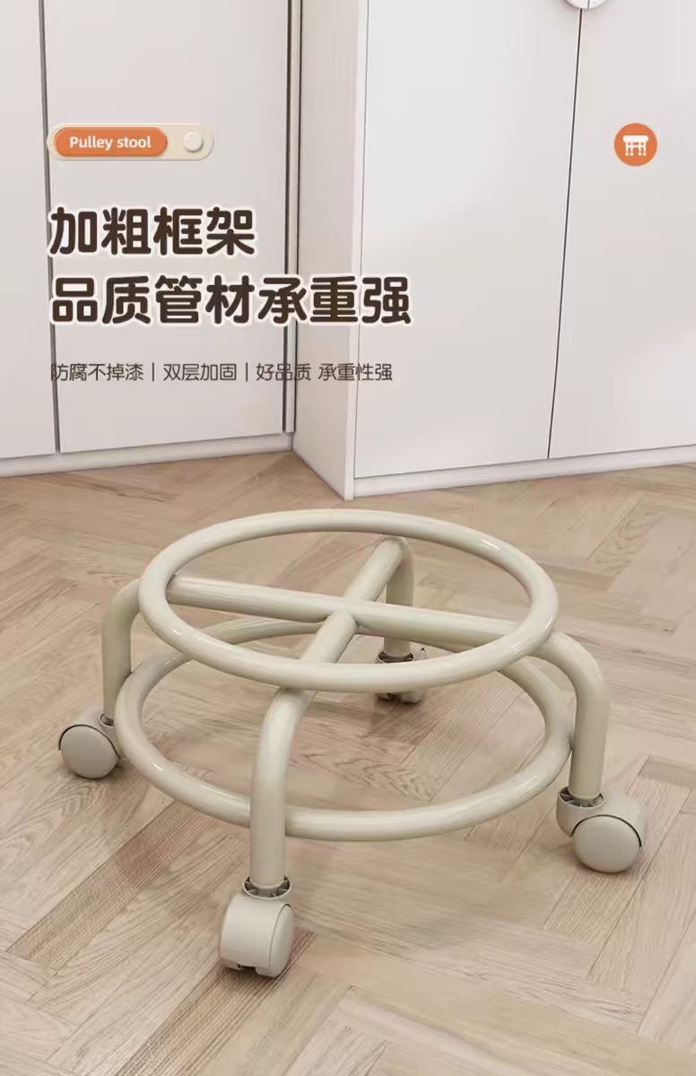 범용 휠 소형 스툴, 롤러 로우 스툴, 현관 신발 교환 스툴, 기숙사 신발 교환 스툴, 아기용 원형 스툴, 아름다운 바느질이 들어간 롤러 스케이트 의자