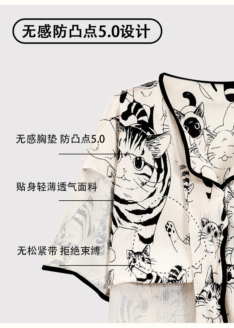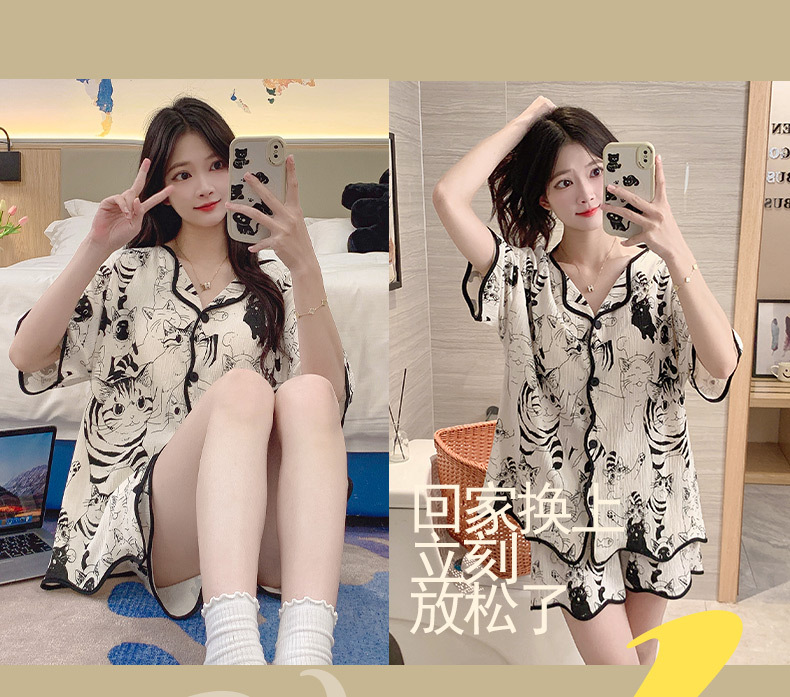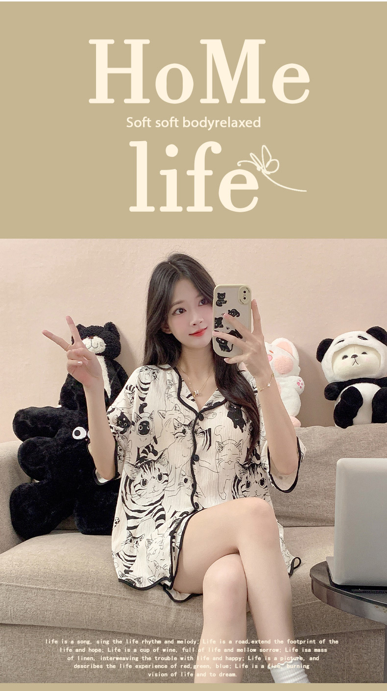 새로운 스타일 잠옷 여성용 여름 반팔 반바지, 가슴 패드 통합 여름 플러스 사이즈 카디건 세트 홈 의류