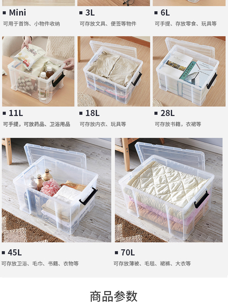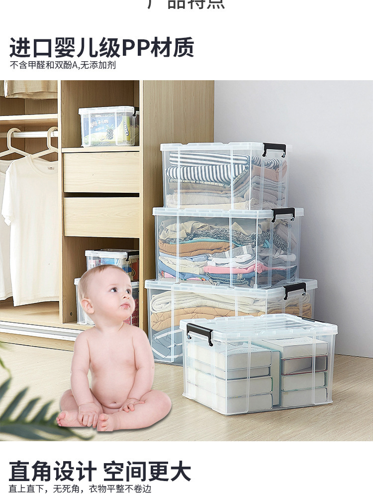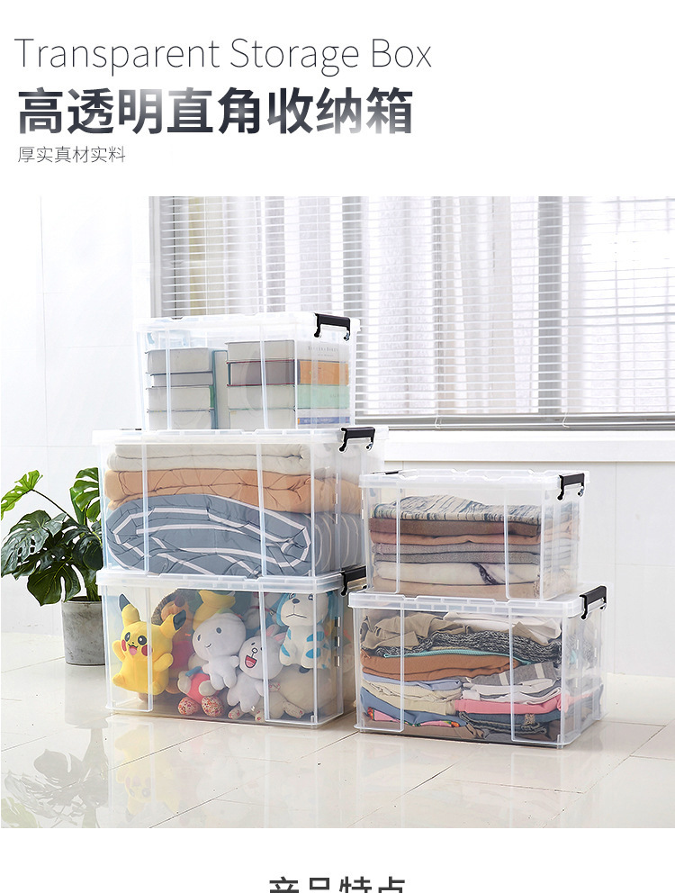 투명한 직각 플라스틱 대형 저장 상자 도매 장난감 보관 상자 옷 이불 마무리 상자 옷 보관 상자