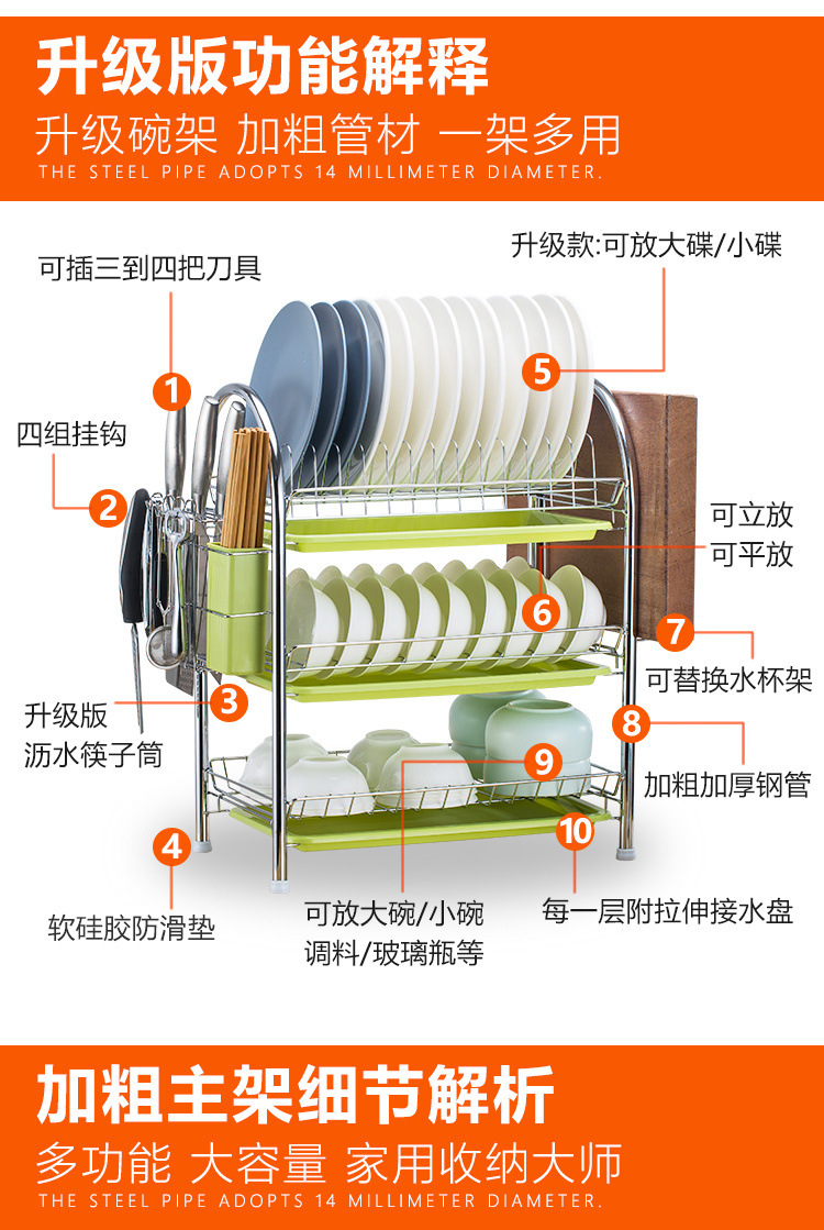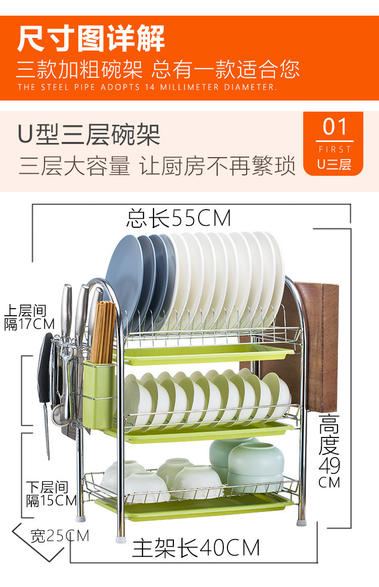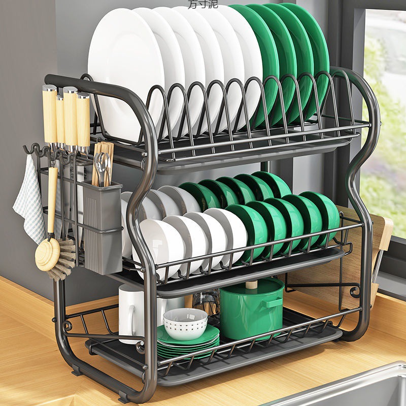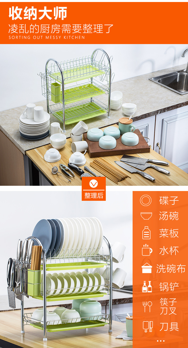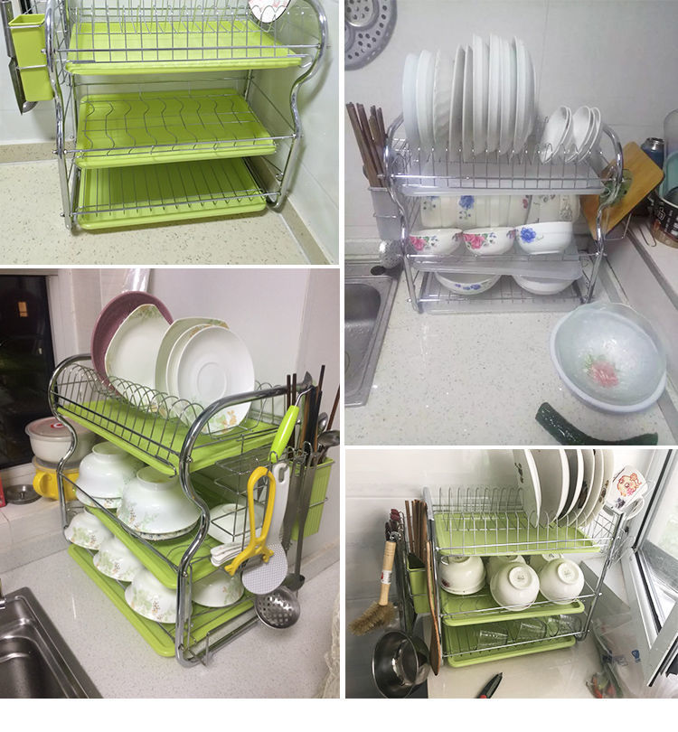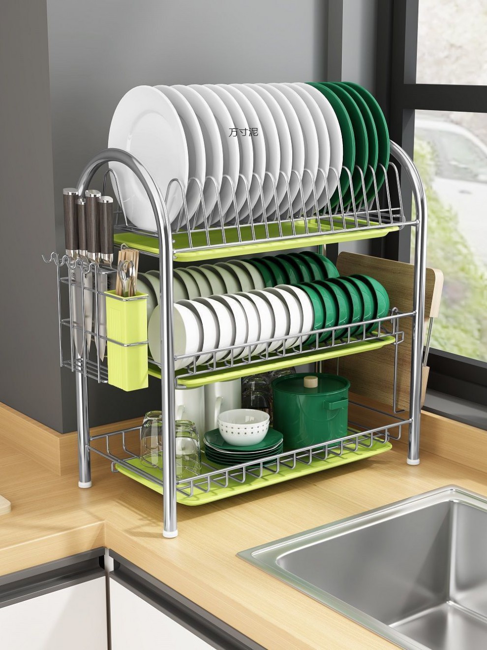 3단 U자형 식기건조대 + 컵걸이 + 수저통 + 칼꽂이 + 녹색 접시 --- 시즌 특가