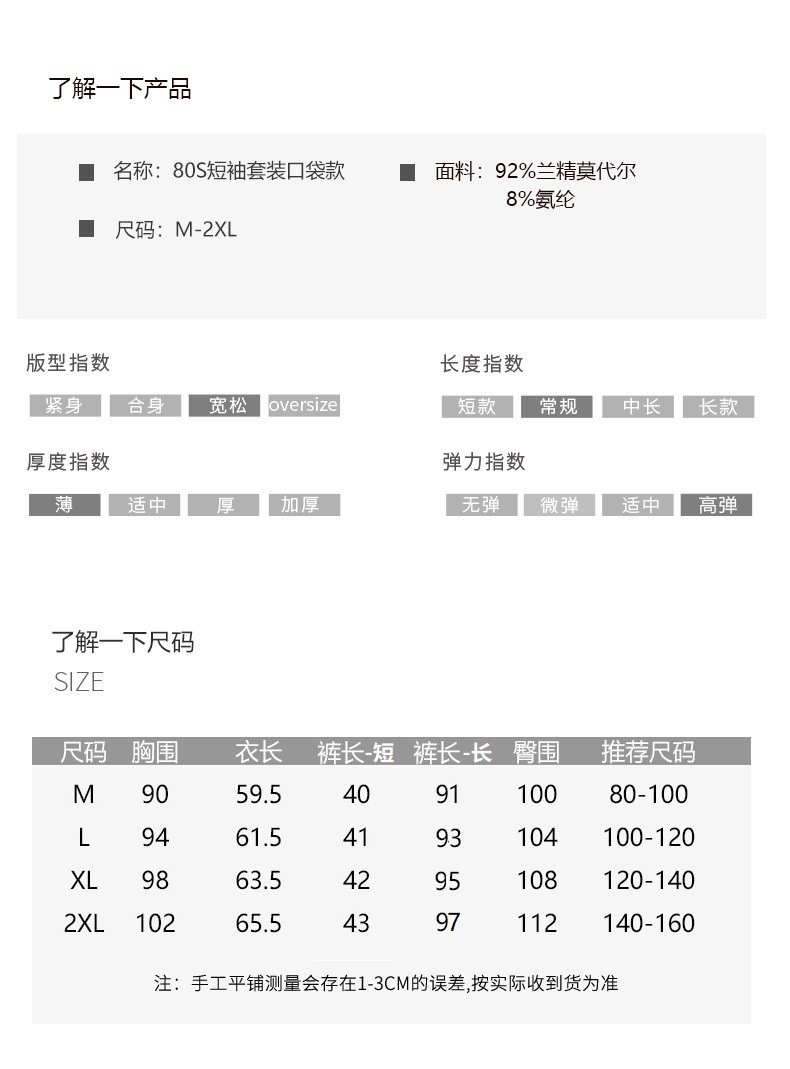 여름 얇은 여성 80년대 렌징 모달 홈웨어 라운드 넥 느슨한 반팔 반바지 항균 슈트