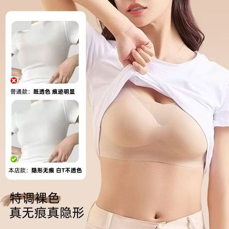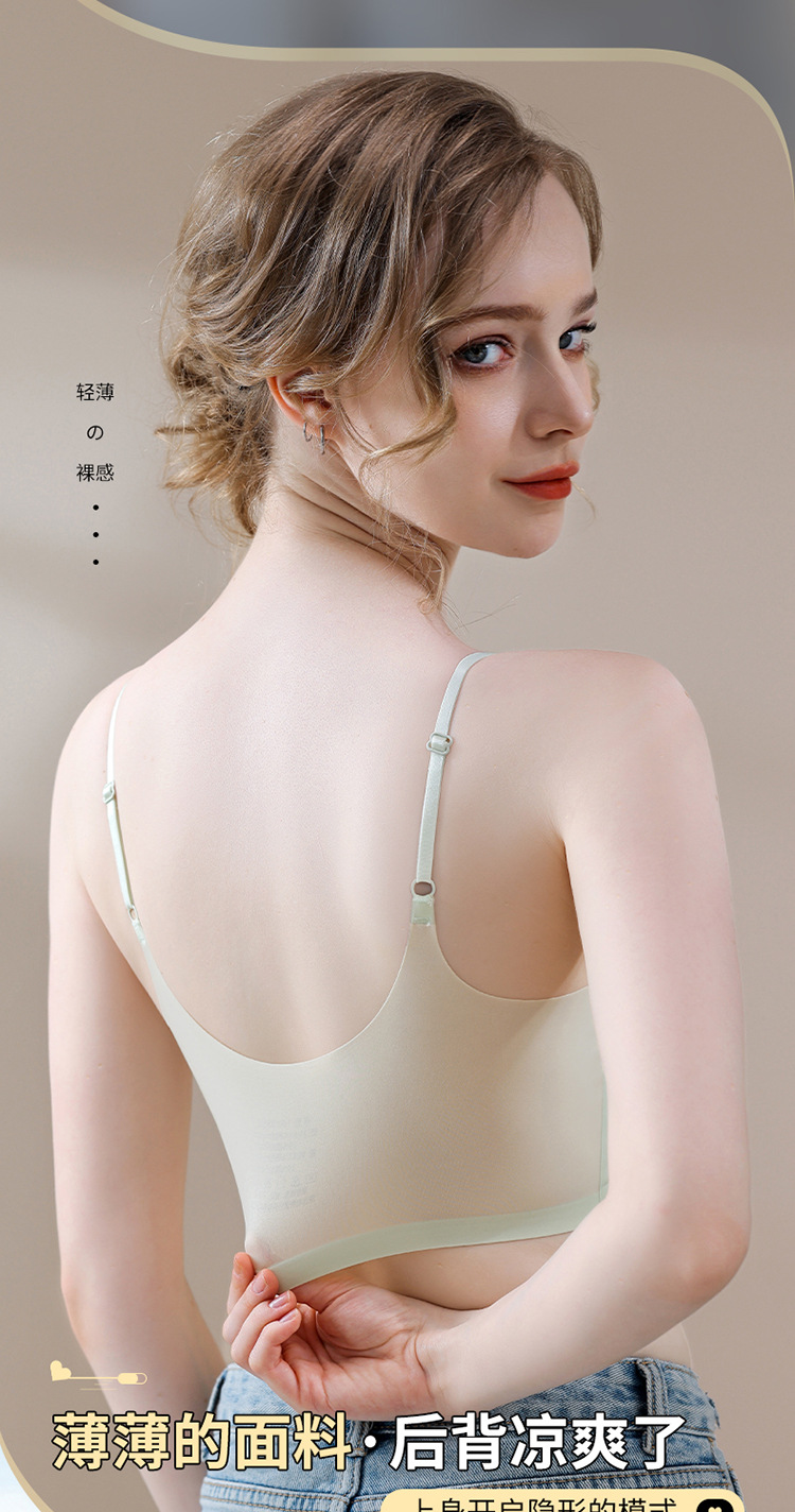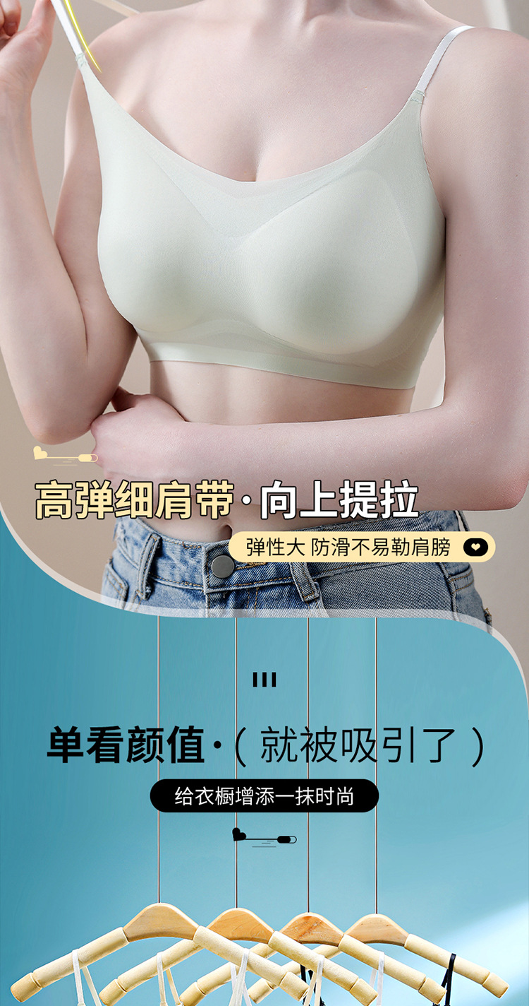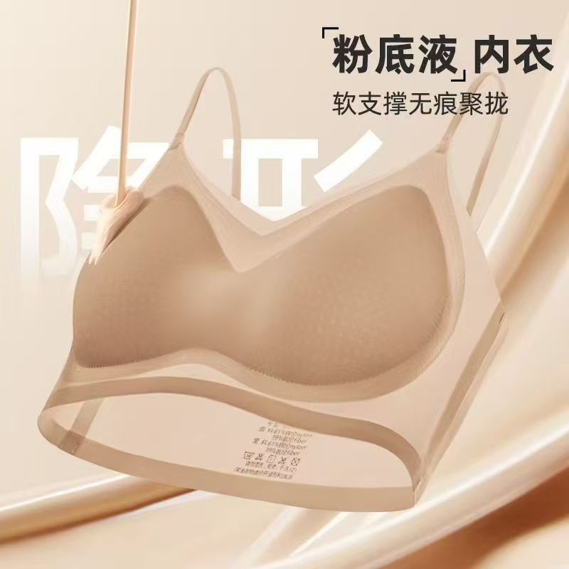 여성용 리퀴드 파운데이션 아이스 실크 무봉제 속옷, 초박형 통기성 고정 컵, 큰 가슴, 작은 슬링, 아름다운 등 브라