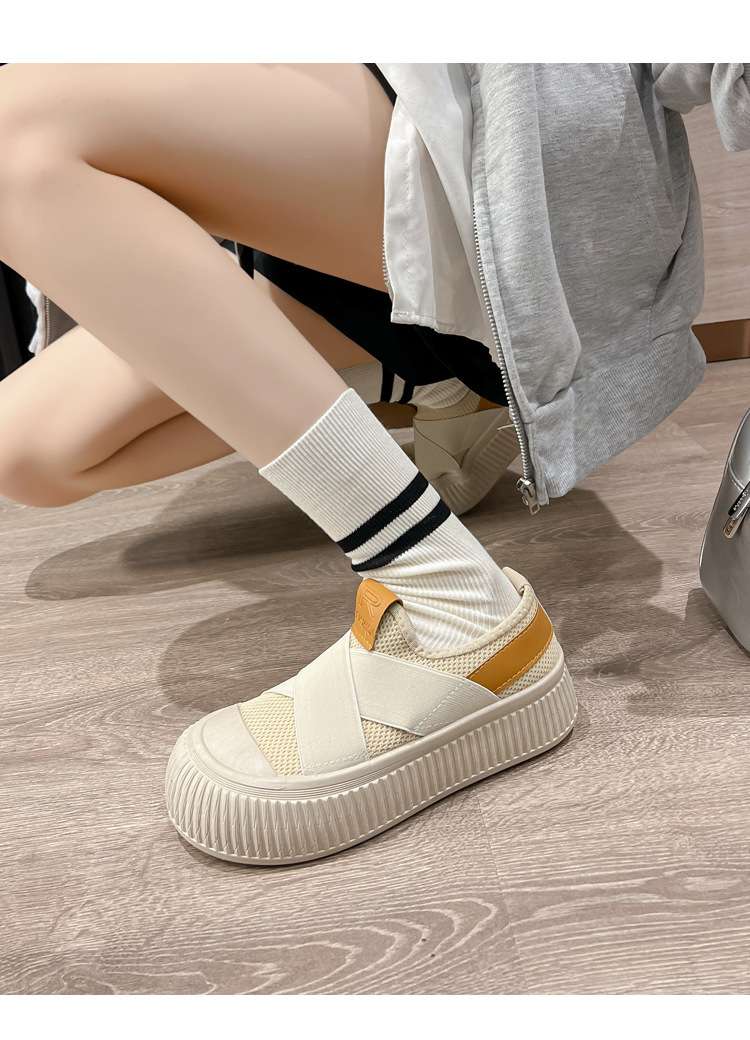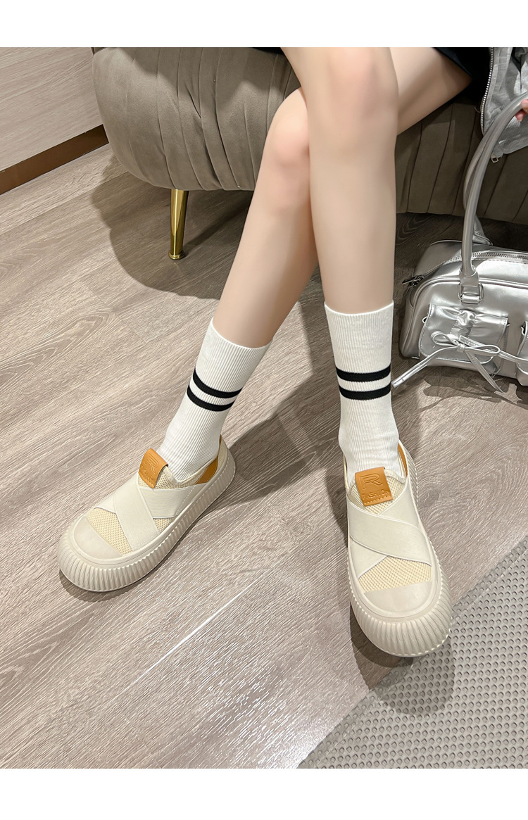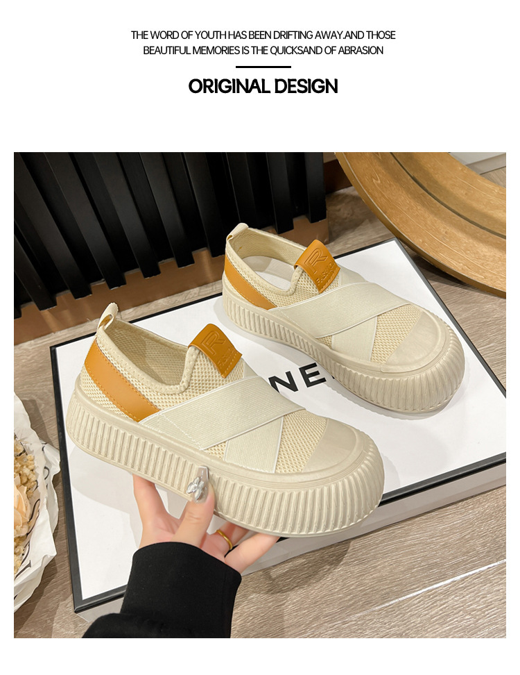 대외 무역 여성 신발 봄과 가을 새로운 통기성 메쉬 비스킷 캔버스 신발 두꺼운 밑창 높은 슬립 온 유행 캐주얼 스니커즈