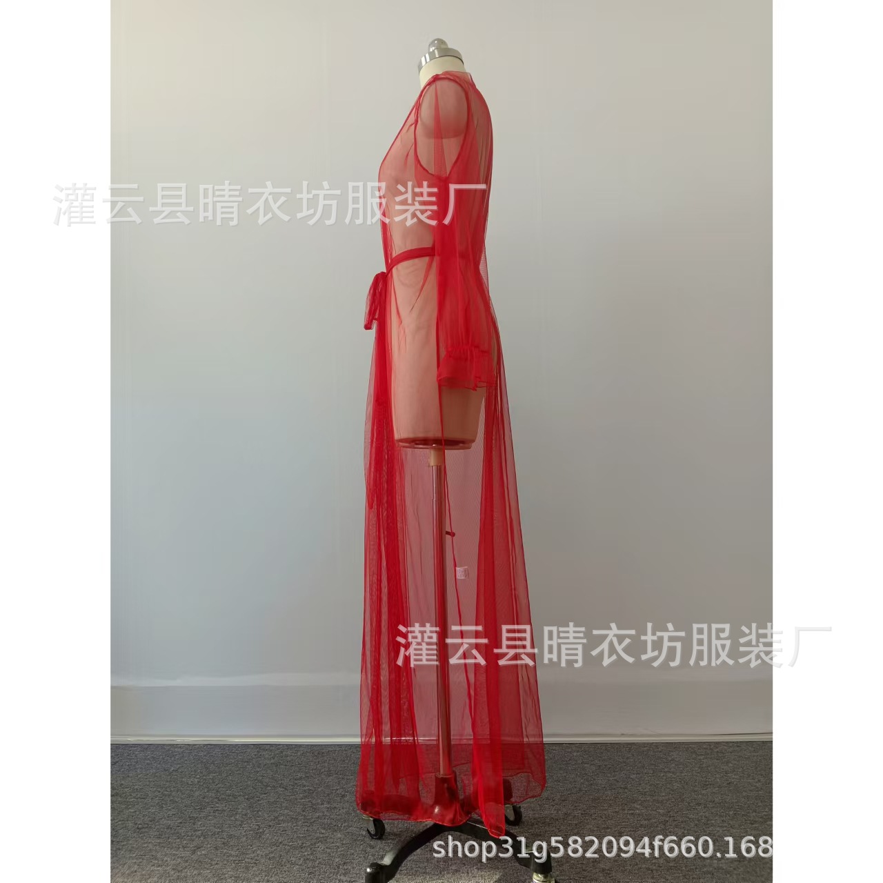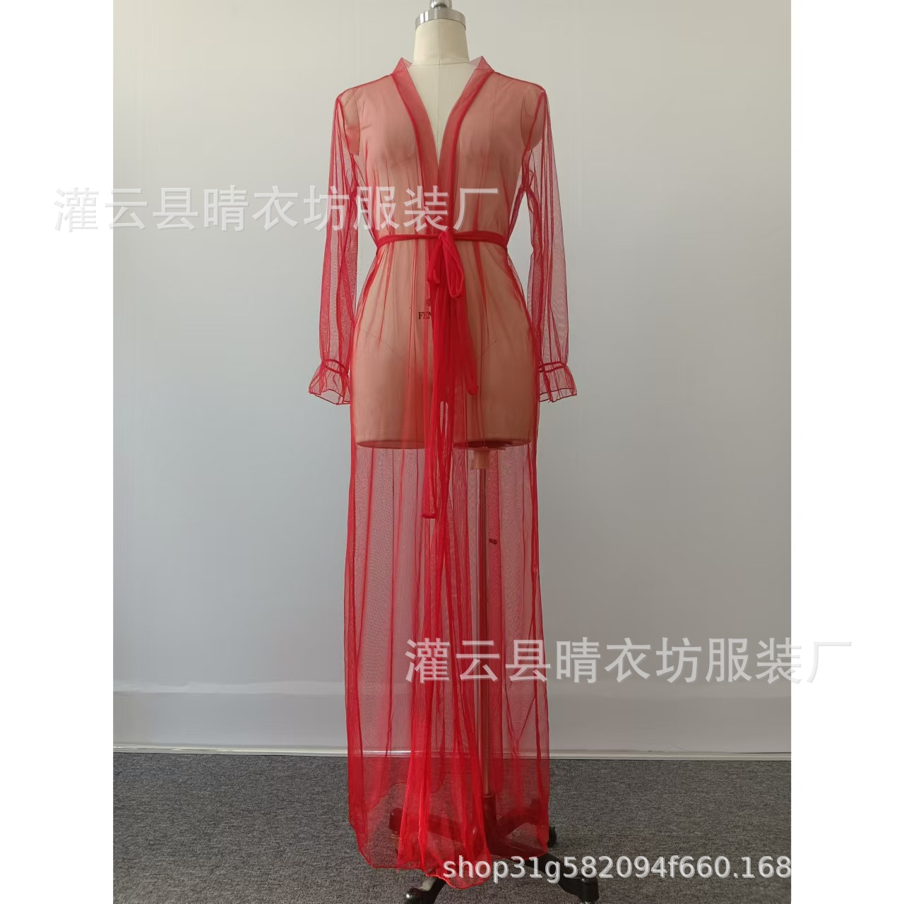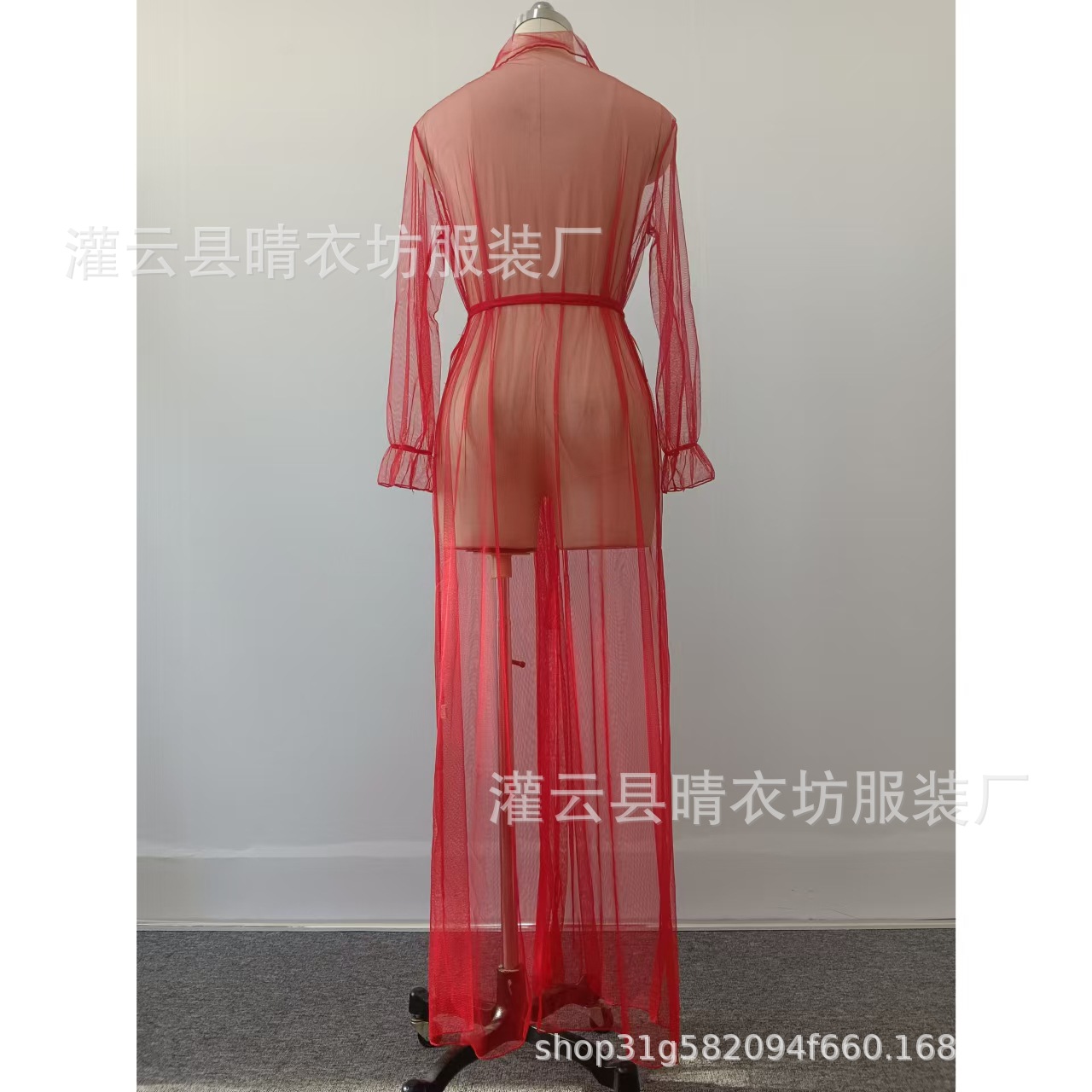 국경 간 무역 섹시 시스루 메쉬 잠옷 열정적인 유혹 홈웨어 롱 레이스업 목욕가운 잠옷 A2565