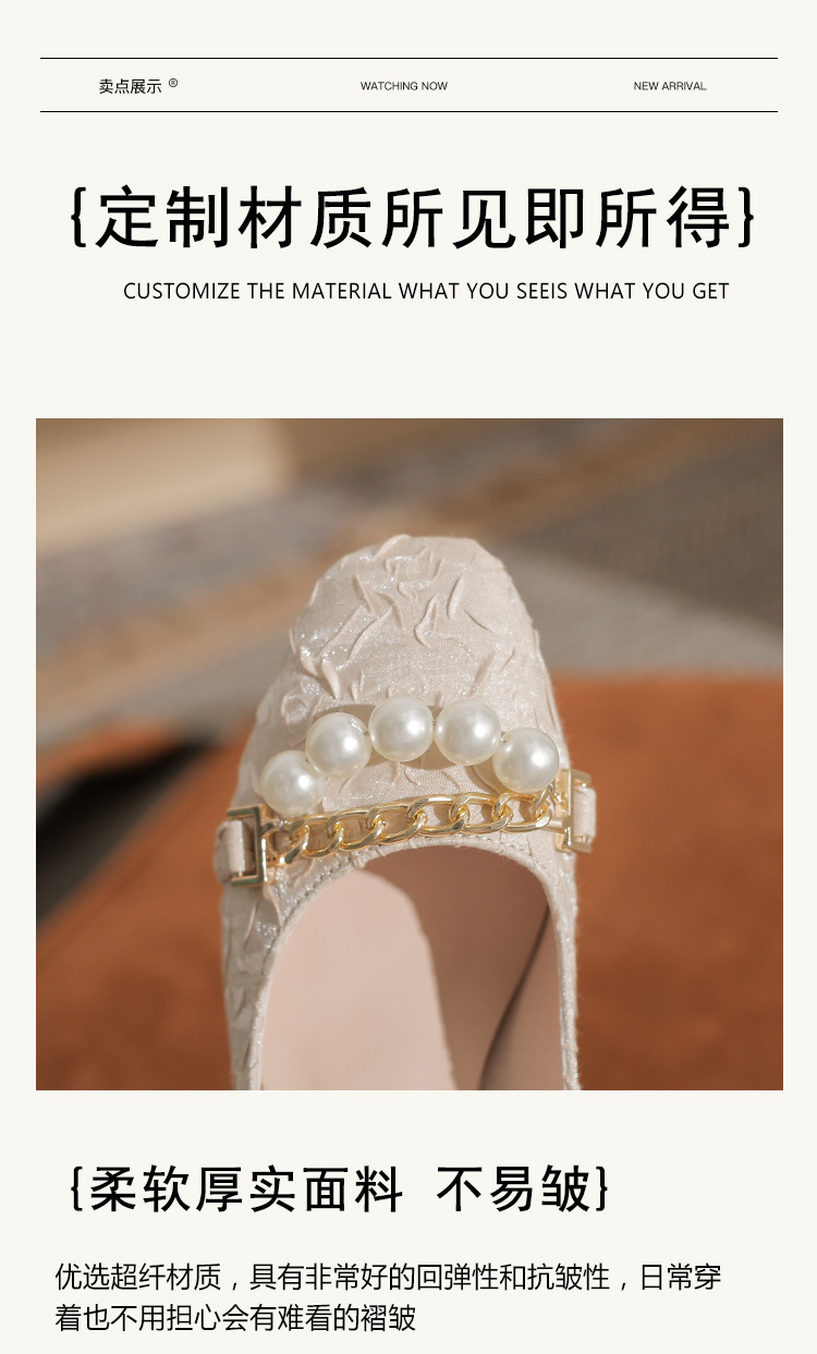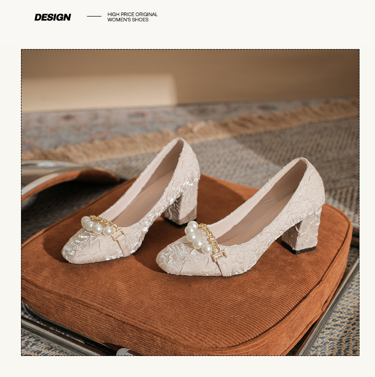 2024년 신상 스퀘어토 두꺼운 굽 하이힐, 큰 사이즈, 넓은 굽, 다용도, 진주 장식, 얕은 입구, 패셔너블한 여성용 싱글 슈즈, 편안함