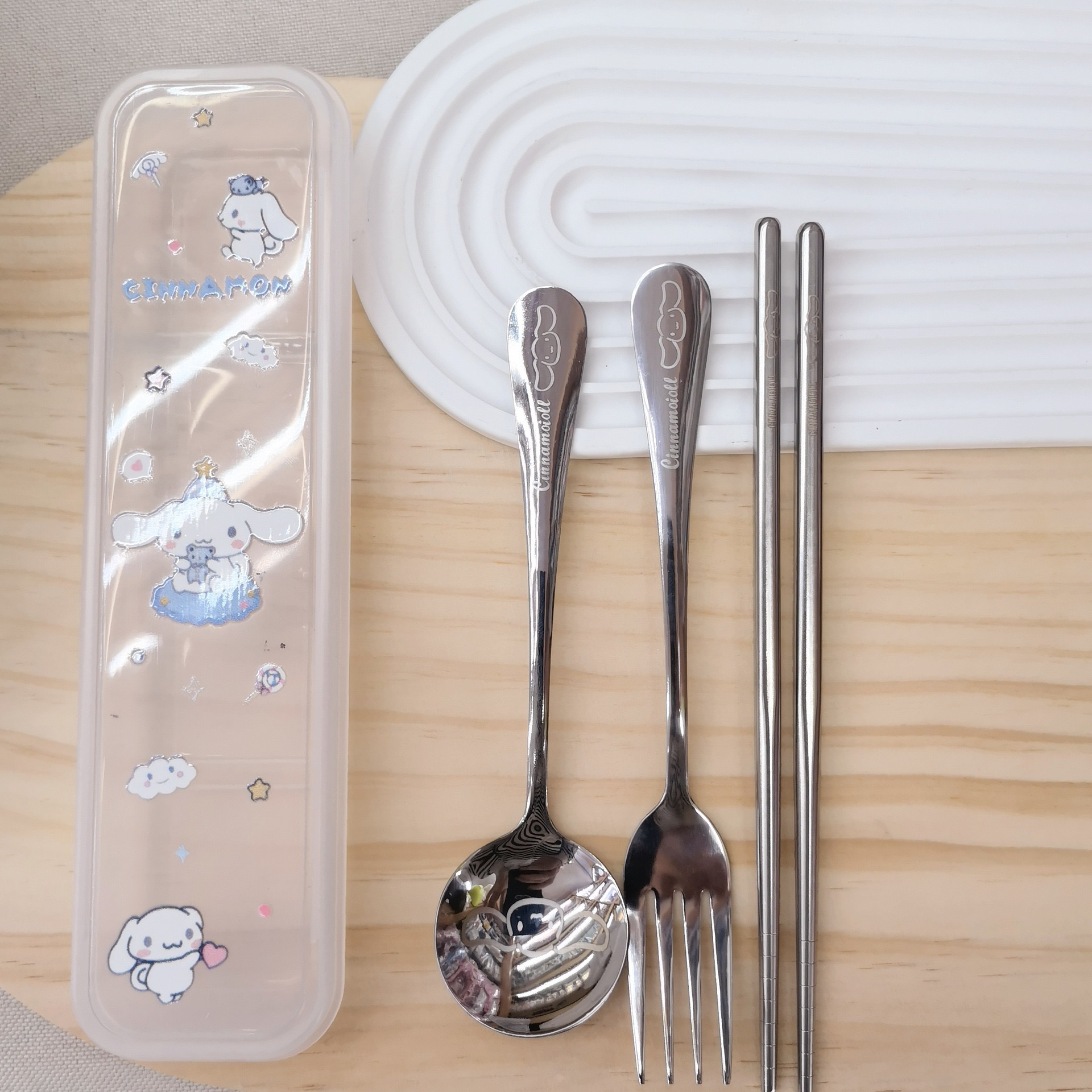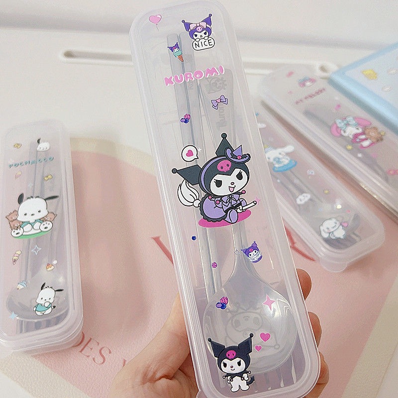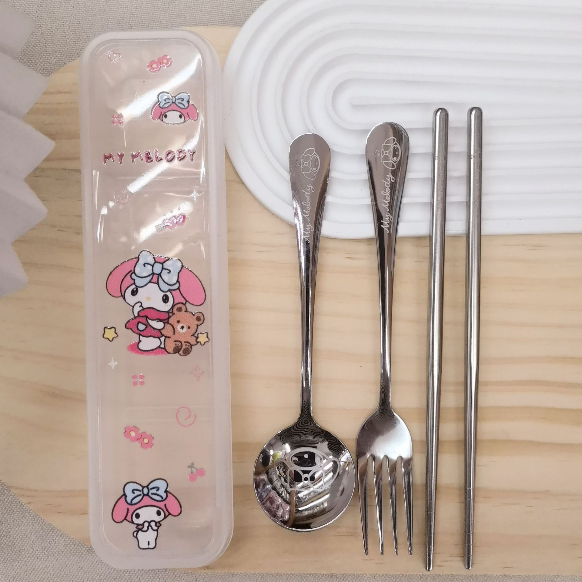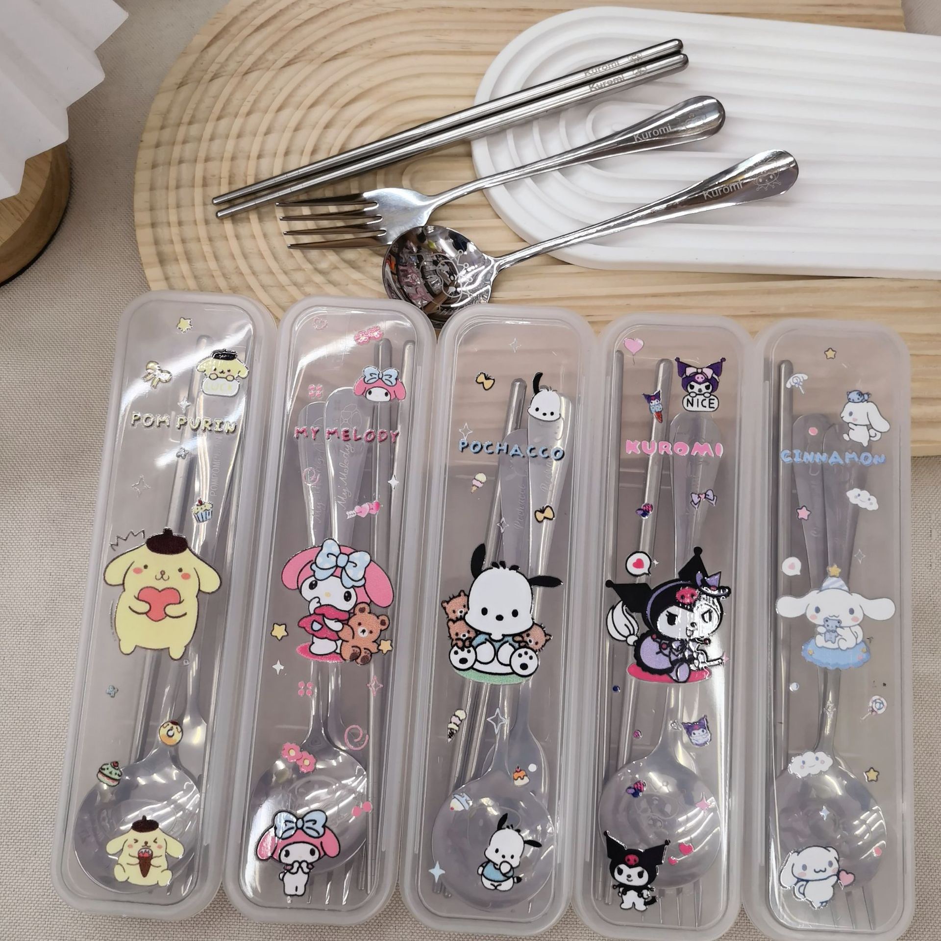 可爱卡通库洛米不锈钢三件套便携餐具 三丽欧高颜值图案带饭叉勺