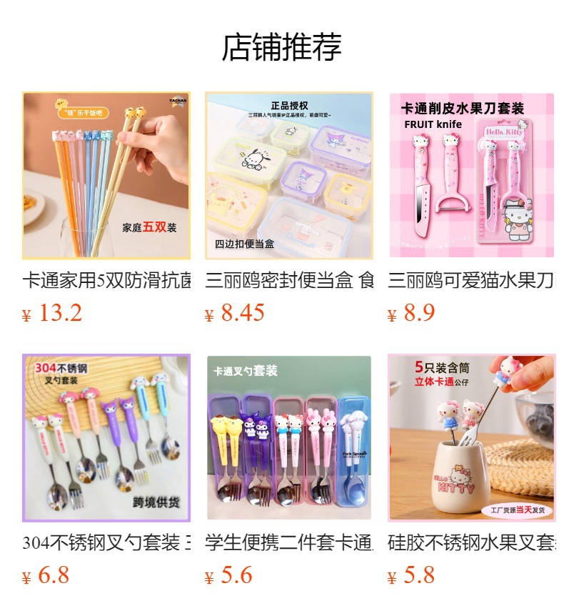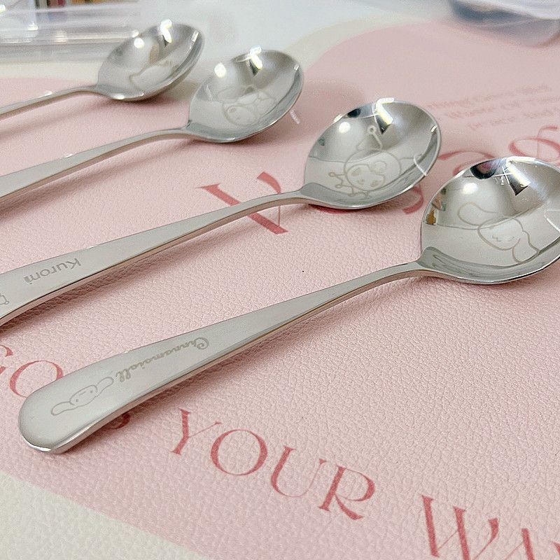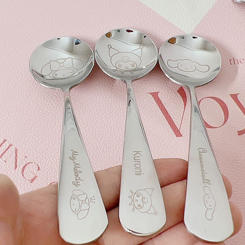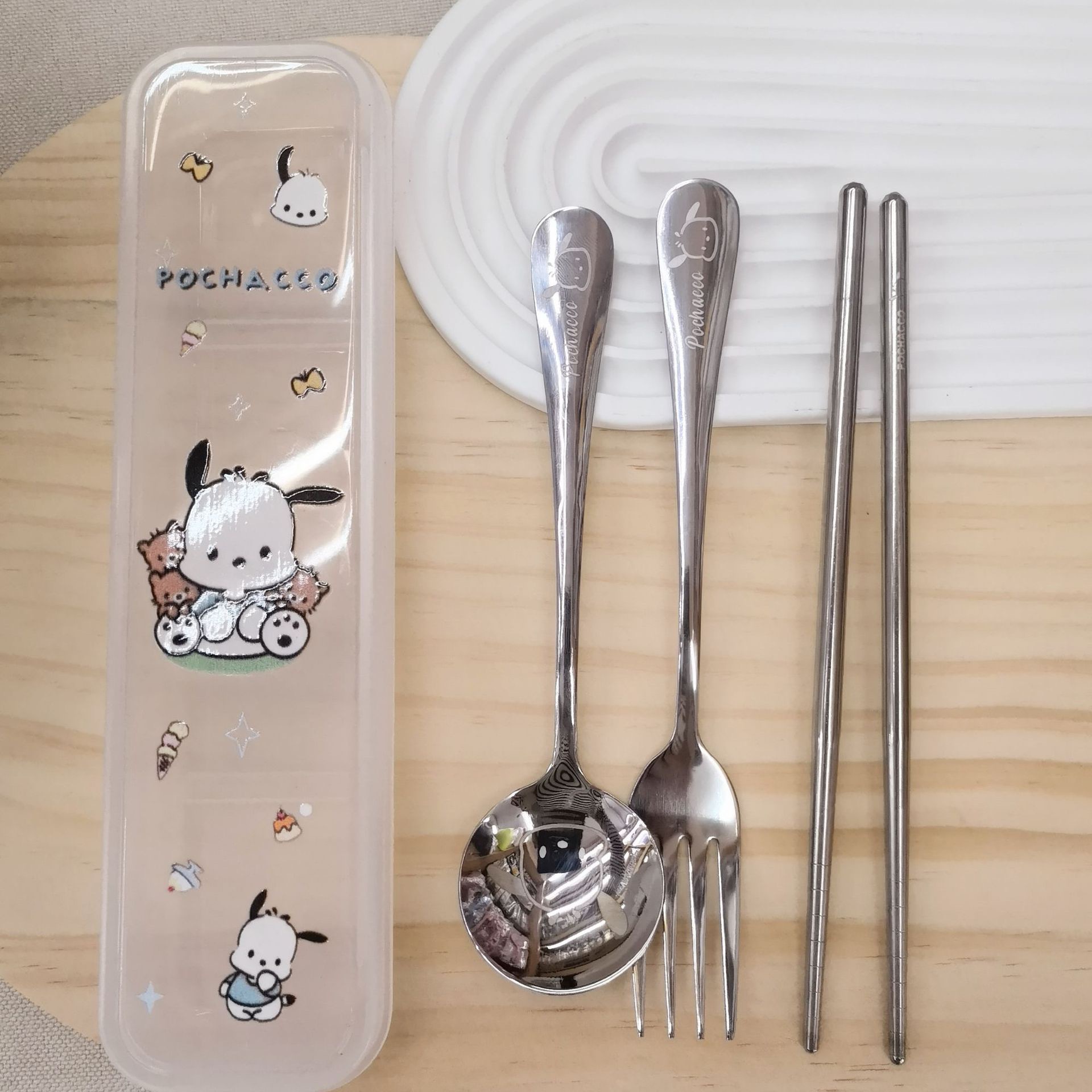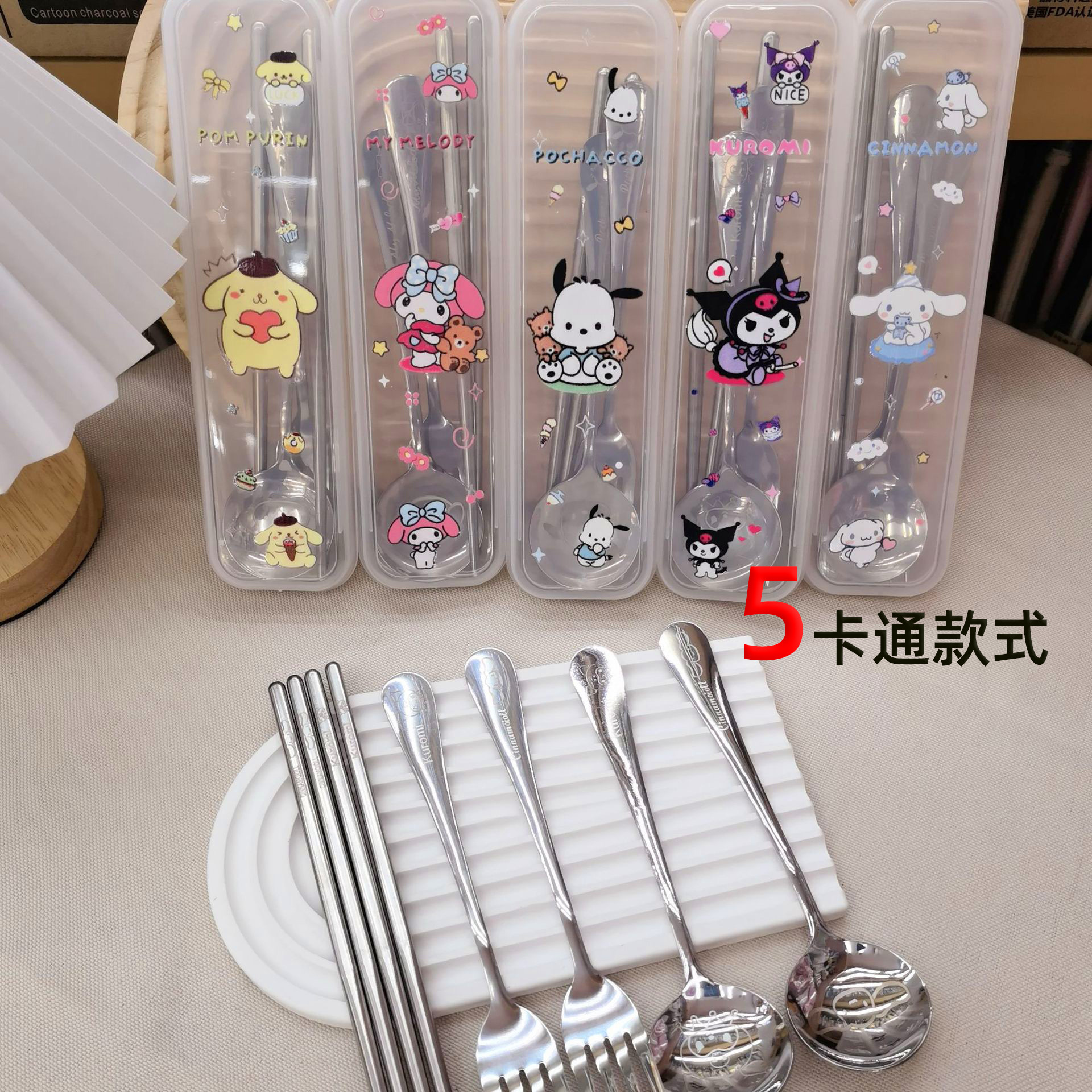 可爱卡通库洛米不锈钢三件套便携餐具 三丽欧高颜值图案带饭叉勺