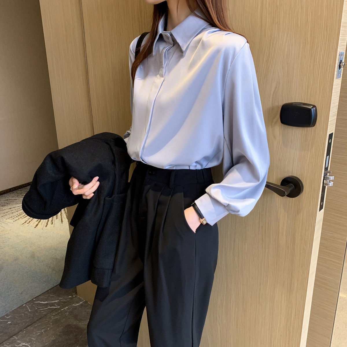 검은 긴 소매 [얇은 숨겨진 버클]]