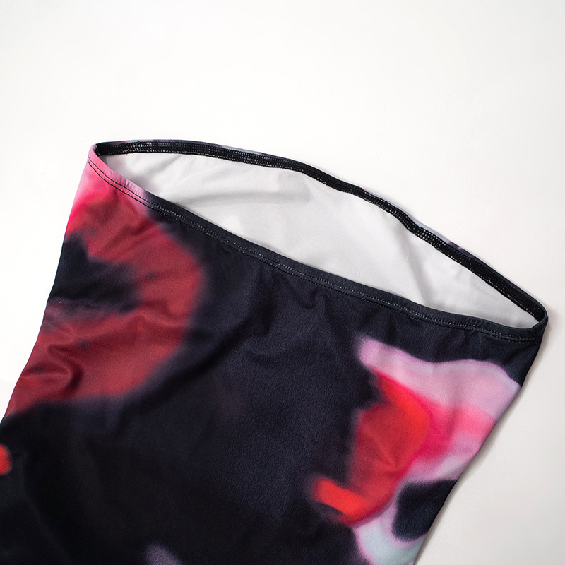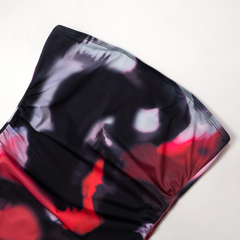 R23DS233 유럽과 미국 여성의 봄 새로운 패션 스트랩리스 인쇄 플리츠 풀오버 힙합 랩 짧은 원피스