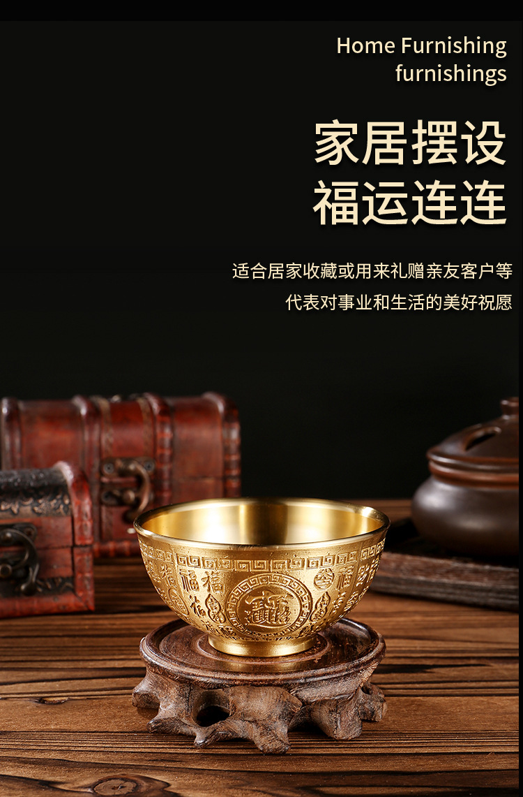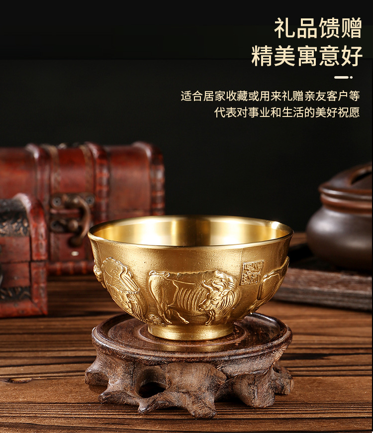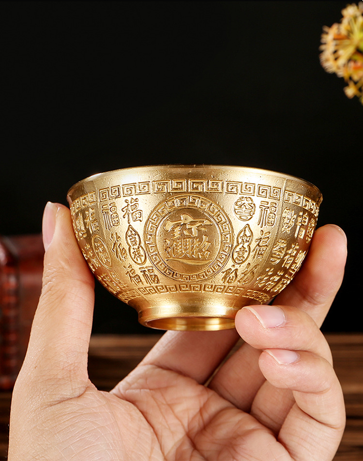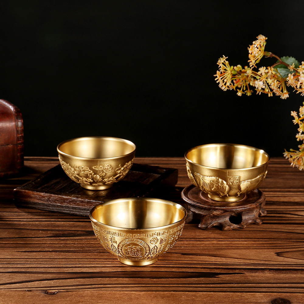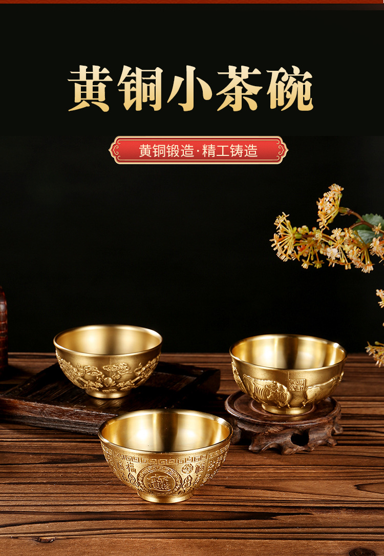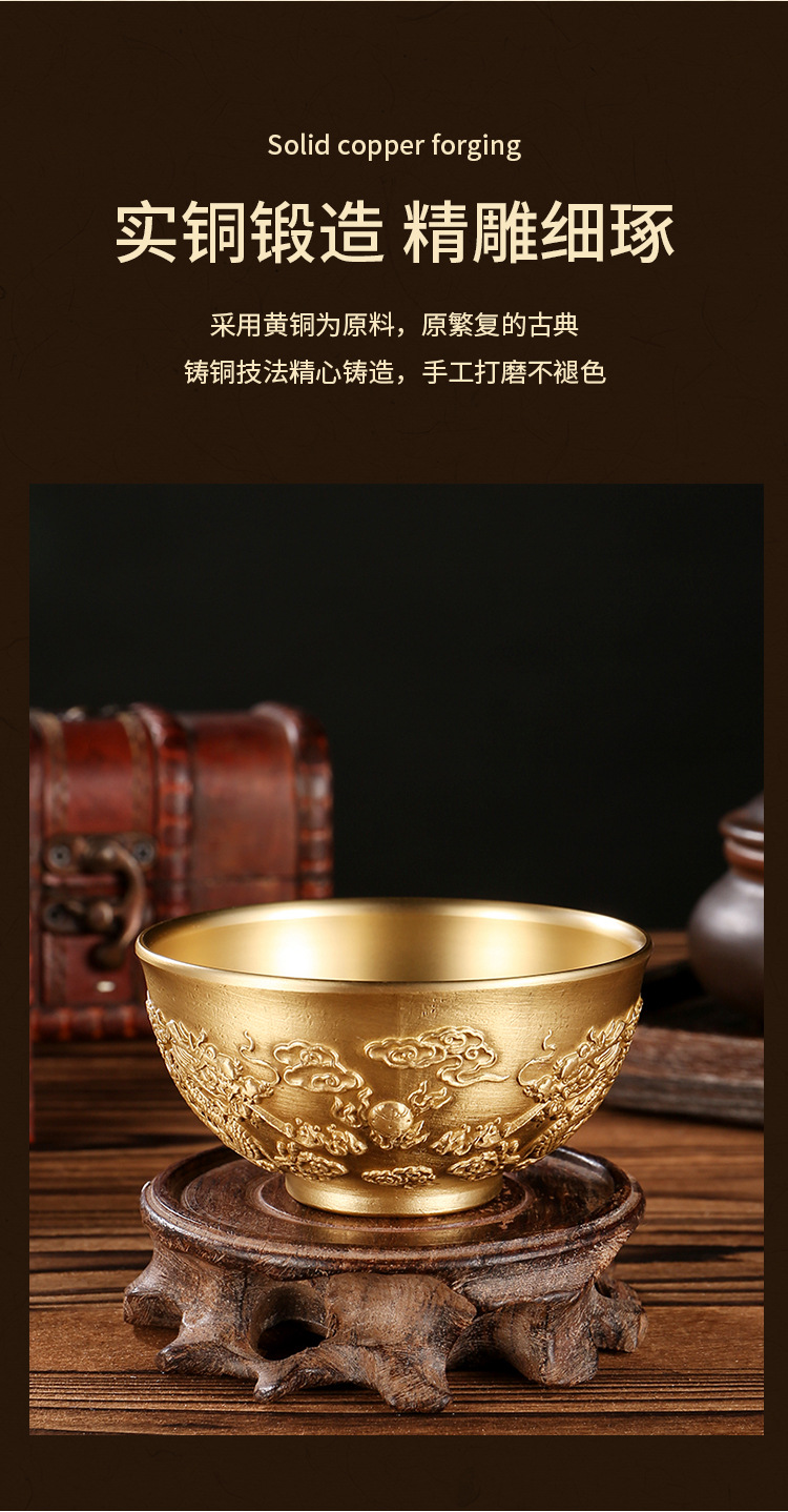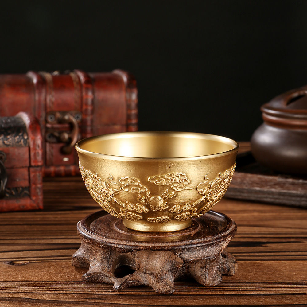 황동 8cm 구호 Shuanglong 차 그릇 레스토랑 테이블 탑 쌀 바이푸 물 공급 그릇 모집